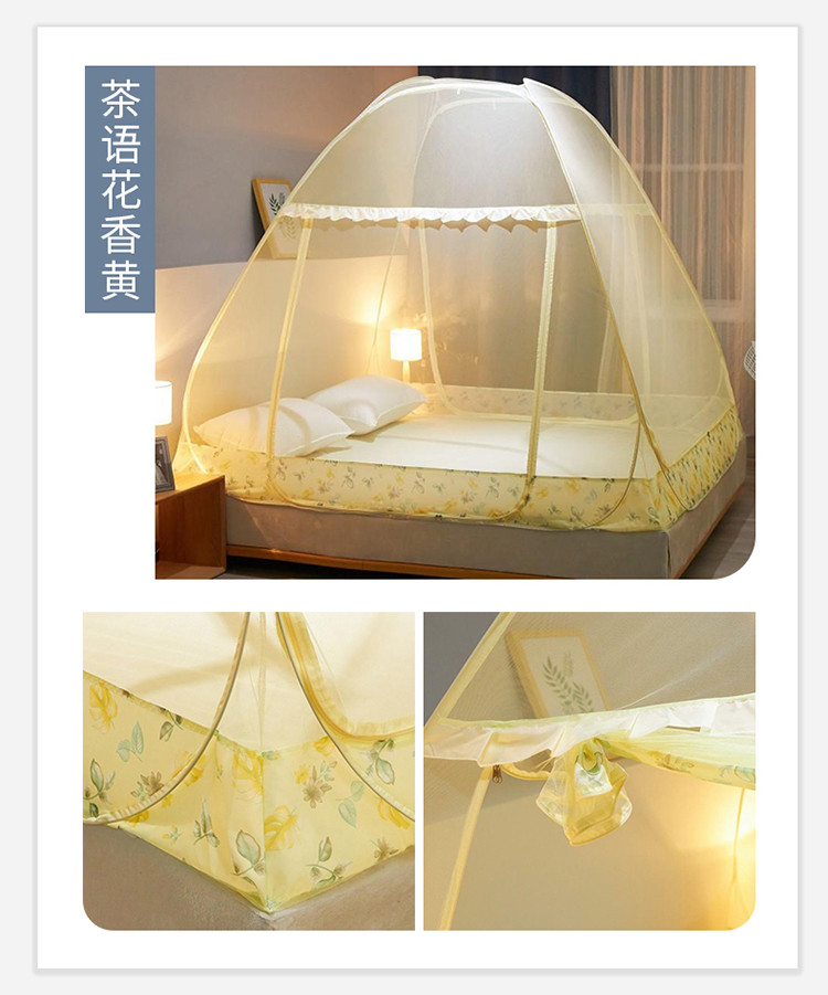 梦尔佳蚊帐2020新款钢丝蚊帐 茶语花香黄