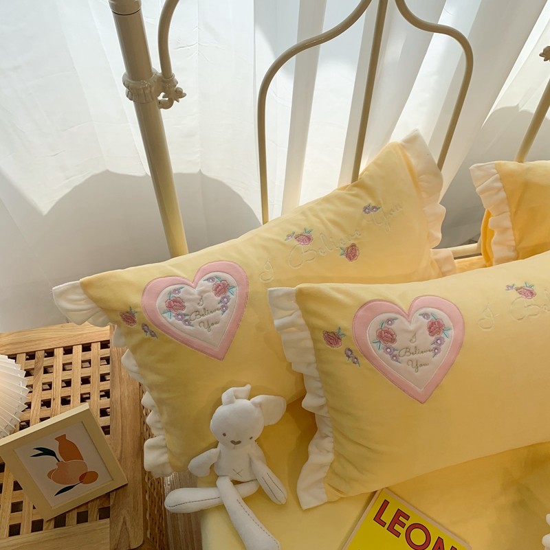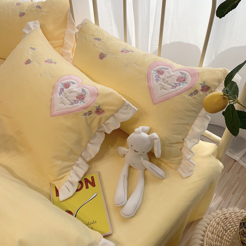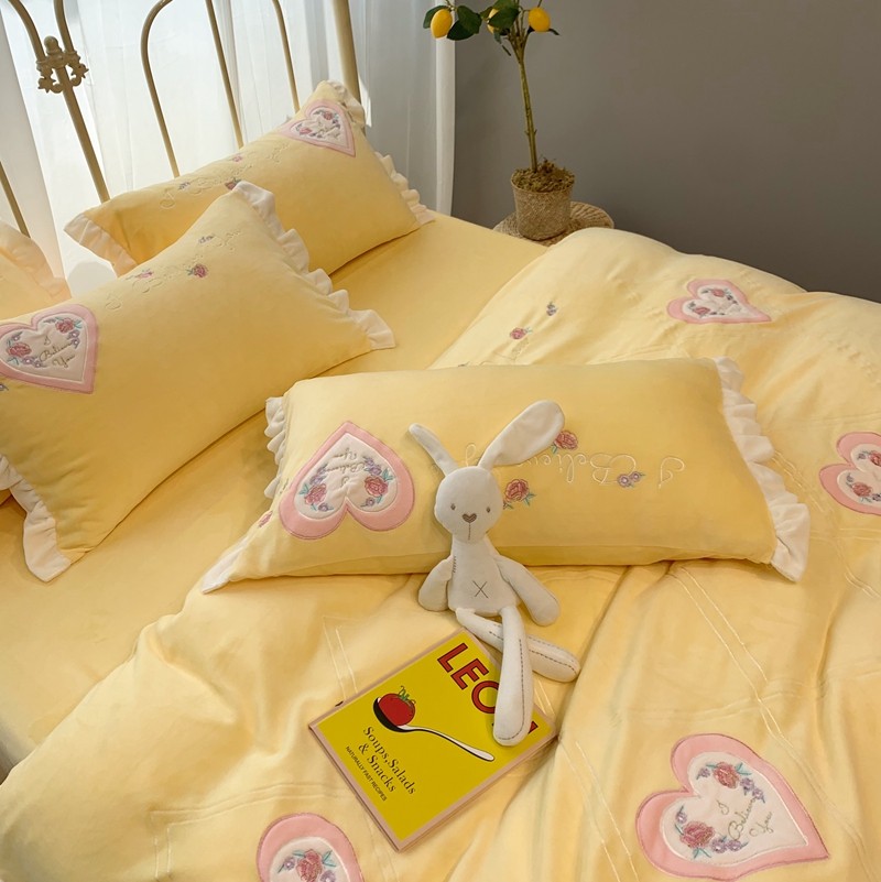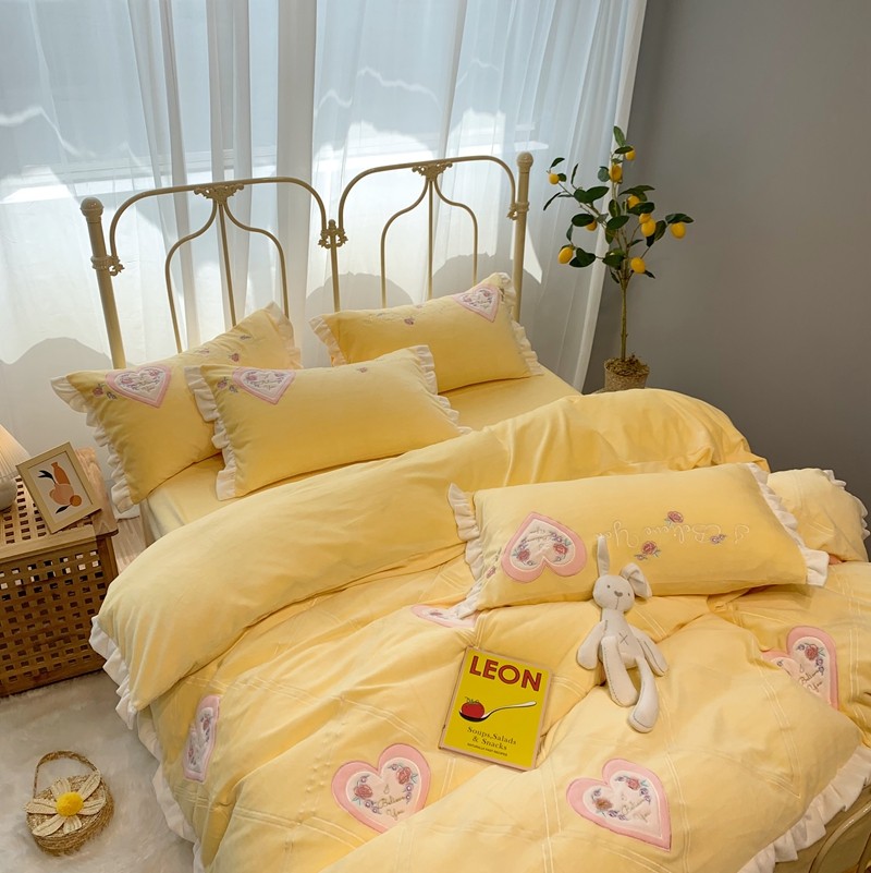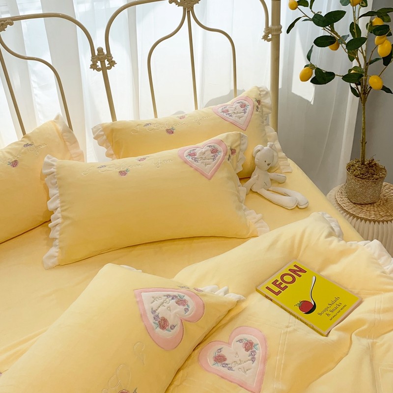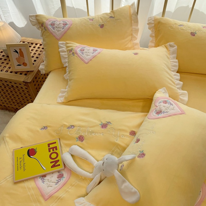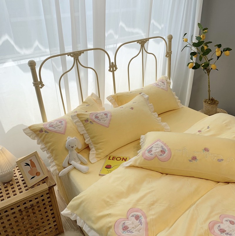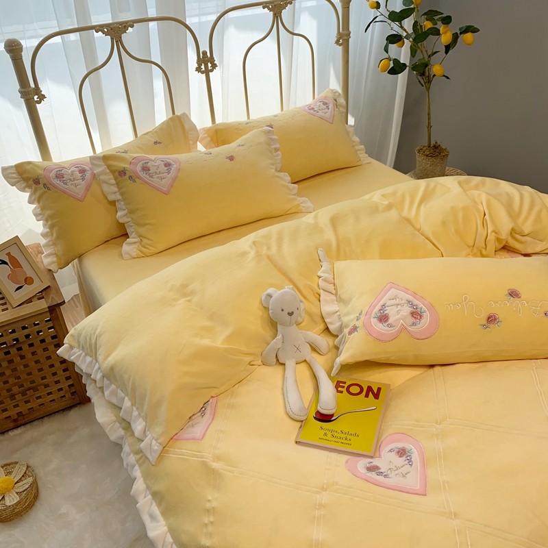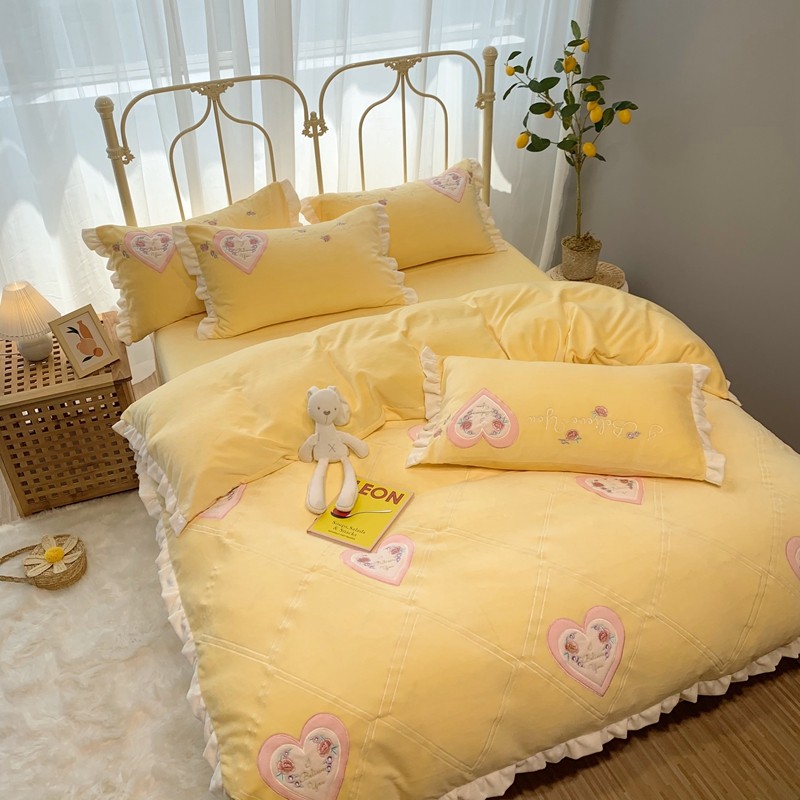 馨蕊家居 2021新款秋冬轻奢煦暖绒四件套 心心相印-柠檬黄