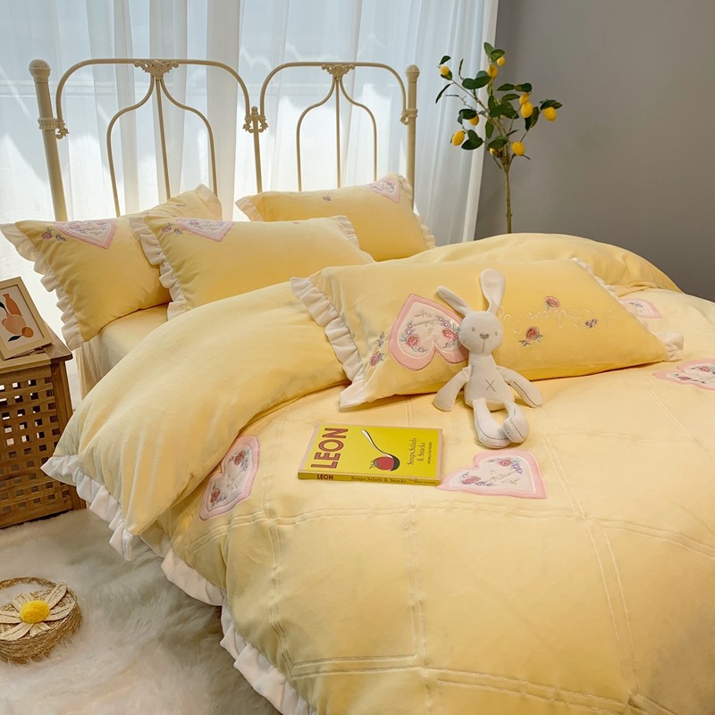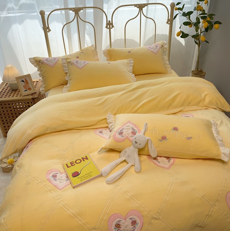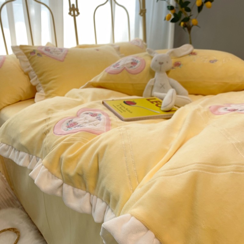 商品名称:馨蕊家居 2021新款秋冬轻奢煦暖绒四件套 心心相印-柠檬黄