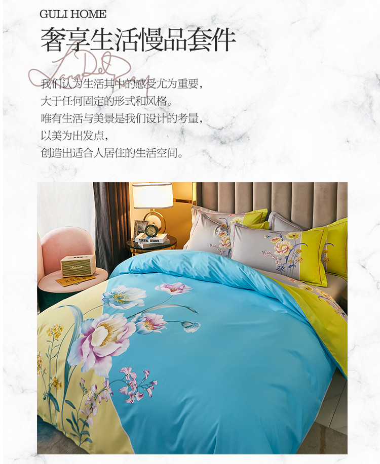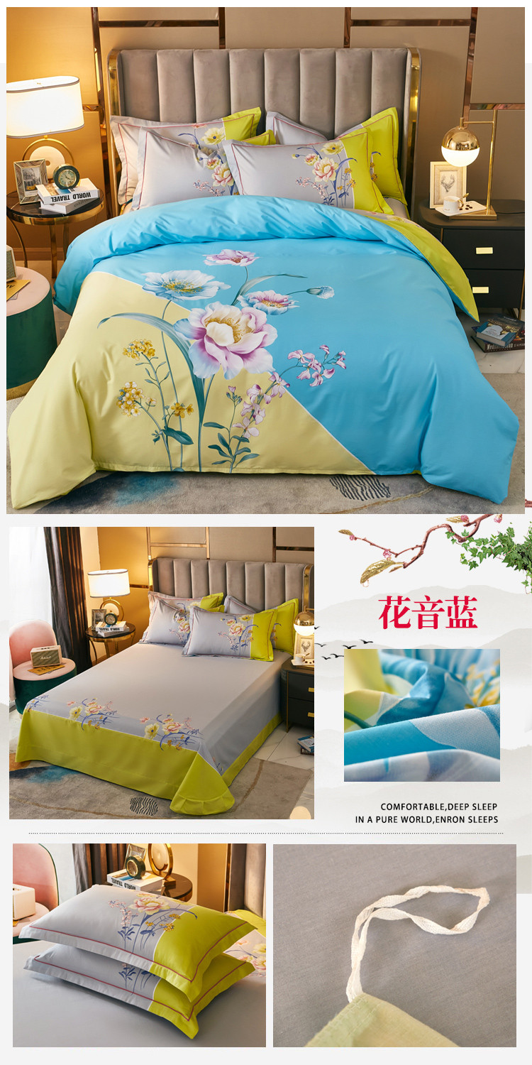 雲归梦 2021全棉大版四件套中国风花卉 花音蓝