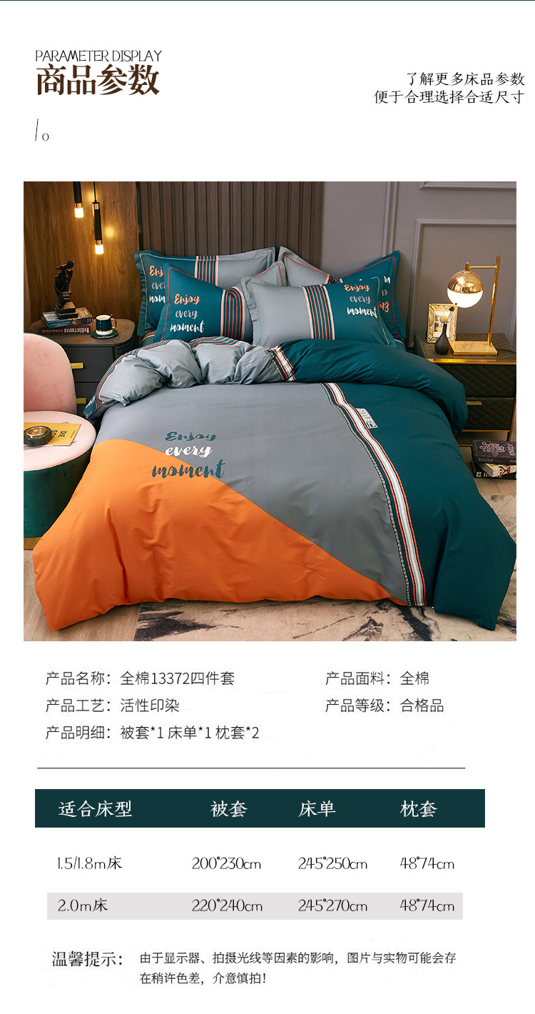 (总)雲归梦 2021新款全棉生态磨毛刺绣四件套,慕思-橙色,慕思-粉紫,慕思-灰,慕思-米黄,慕思-青绿,慕思-天蓝