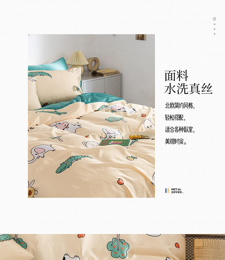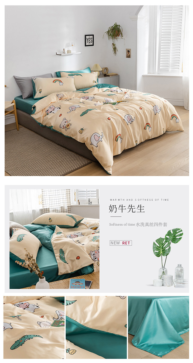 商品名称:琪格格纺织 2022新款水洗真丝印花四件套 奶牛先生