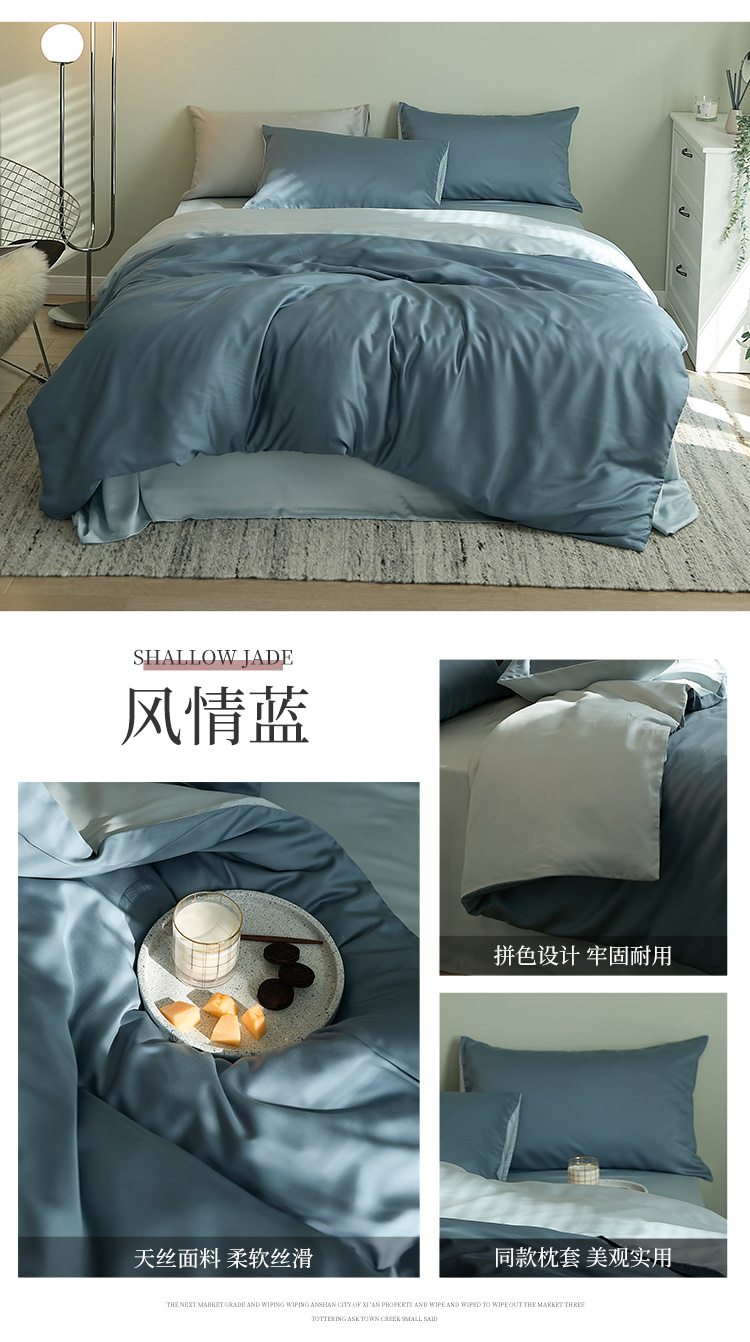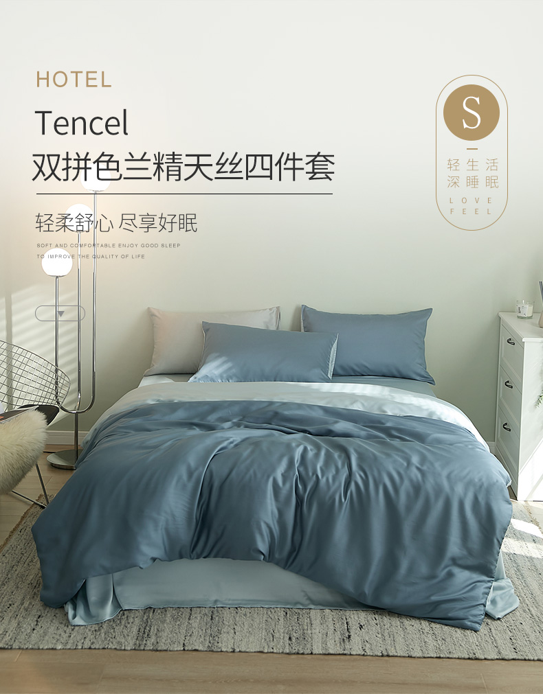 当前位置: 91家纺网 > 商品网购 > 床品套件 > 四件套 > 莱赛尔四件套 > 新款天丝双拼色四件套 风情蓝