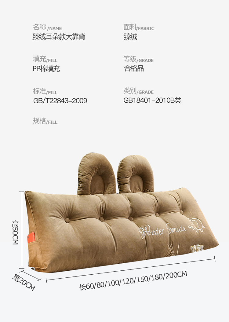 商品名称:一兰家纺 2021新款臻绒大耳朵靠垫大靠背 浅咖