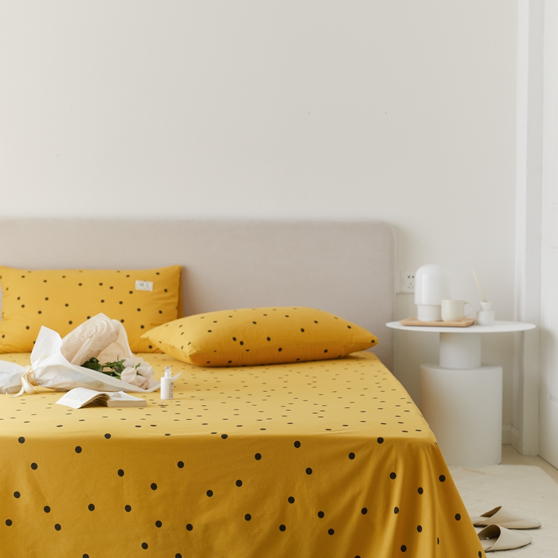 • 91家纺网 家纺一手货源 找家纺 8小时2021新款无印风印花槿色水洗棉单床单 繁星点点-黄