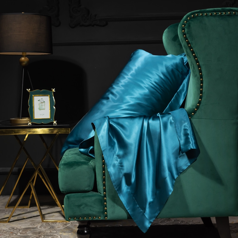 商品名称:雅韵诗 2023新款真丝四边枕套(不退换) 孔雀蓝48*74cm一只