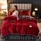 牵梦萦纯色加厚牛奶绒法莱绒四件套秋冬季加绒床裙款 酒红+深灰