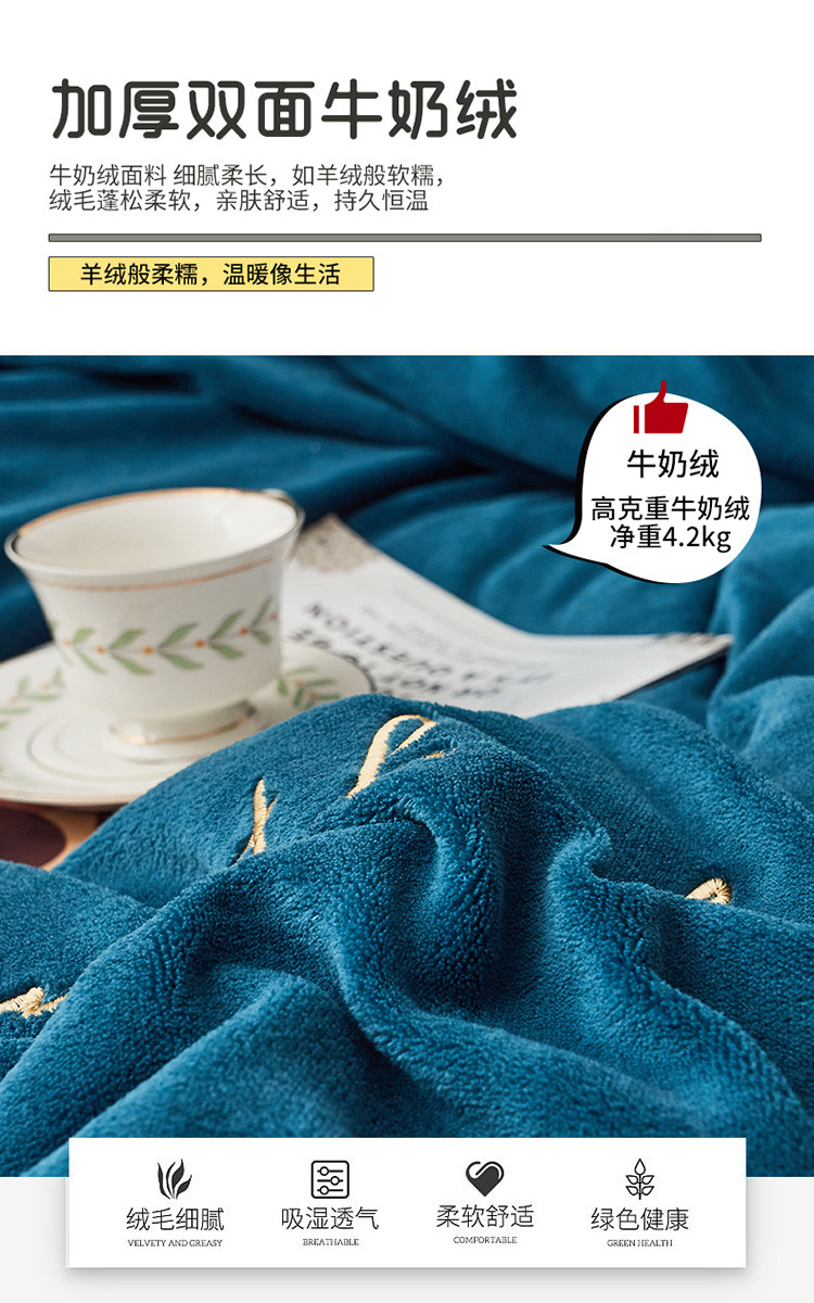22新款保暖加厚牛奶绒四件套宝宝绒欧尚刺绣四件套欧典宾利蓝