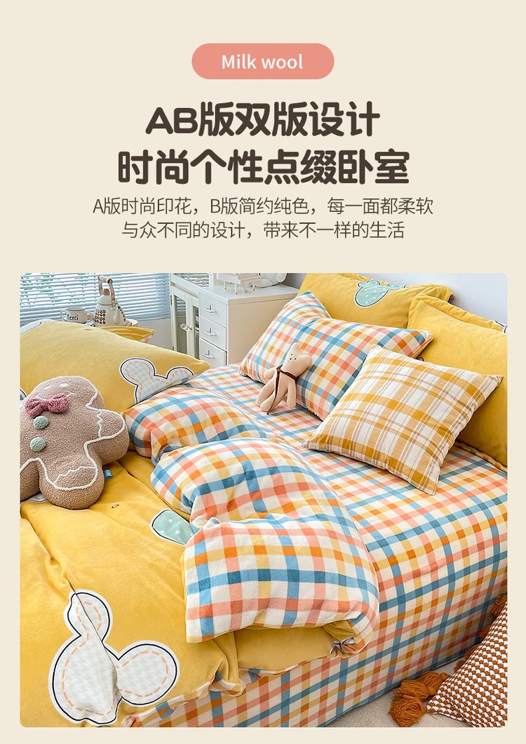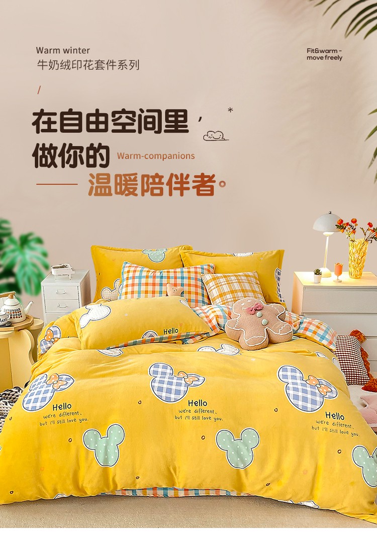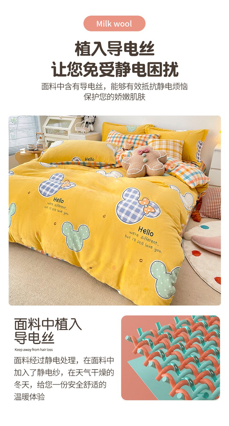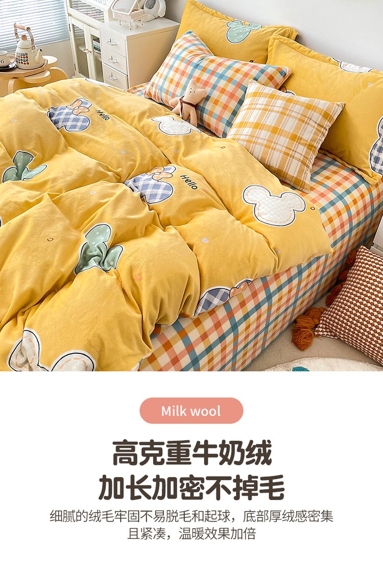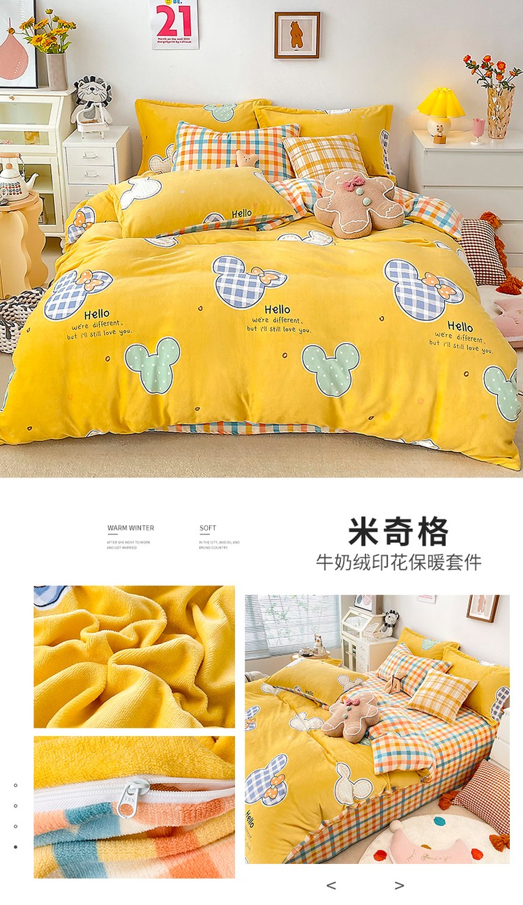 优彩 2021新款200克高克重印花牛奶绒四件套 米奇格