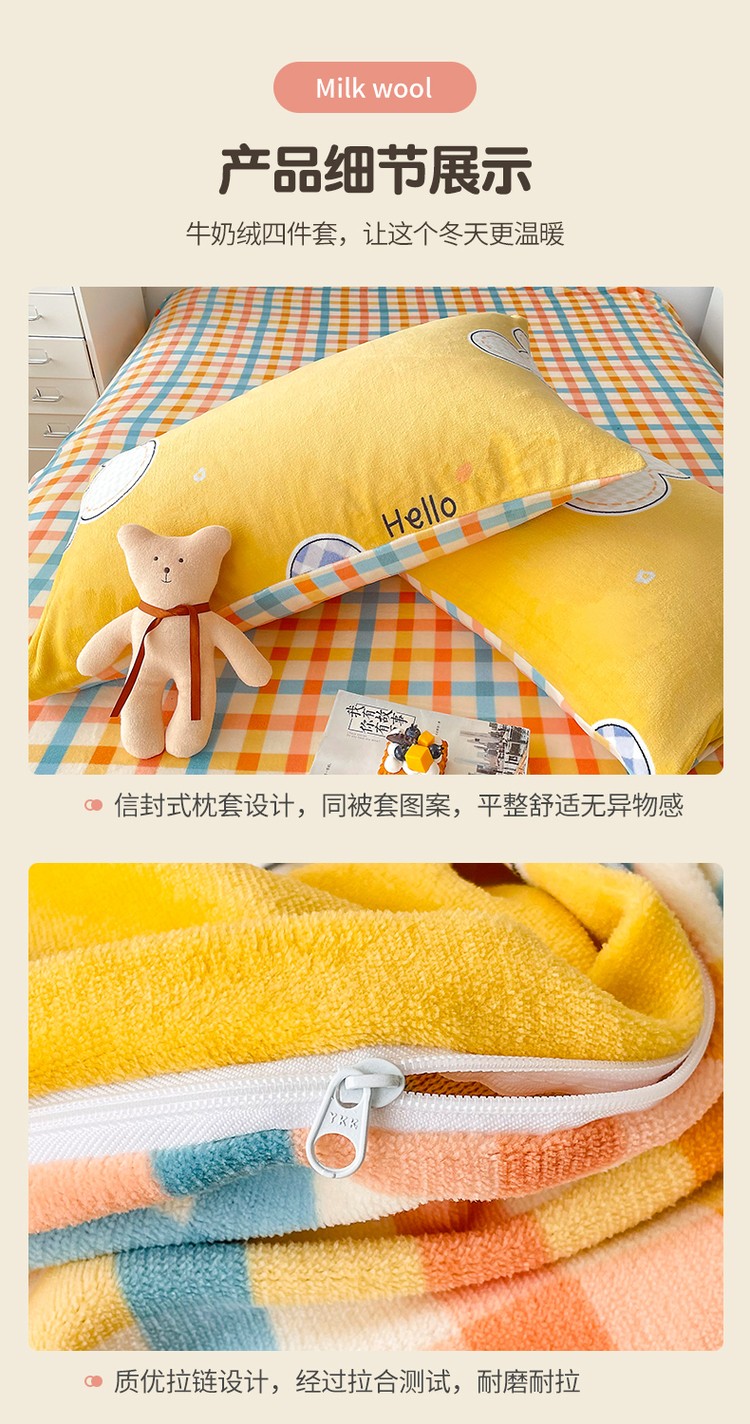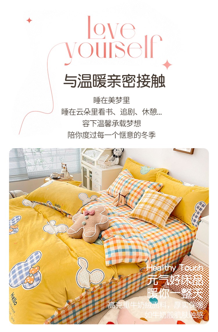 (总)优彩 2025新款牛奶绒绣花四件套毛巾绣贴布绣牛奶绒四件套,晚安猫,毛绒森林,萌萌猫,桑尼小兔,水豚崽崽,小可乐,星愿