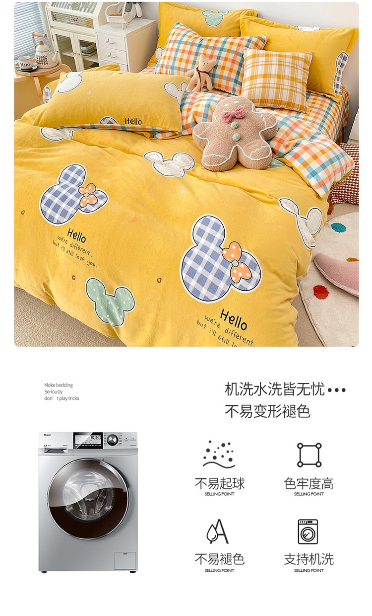 商品名称:优彩 2021新款200克高克重印花牛奶绒四件套 米奇格