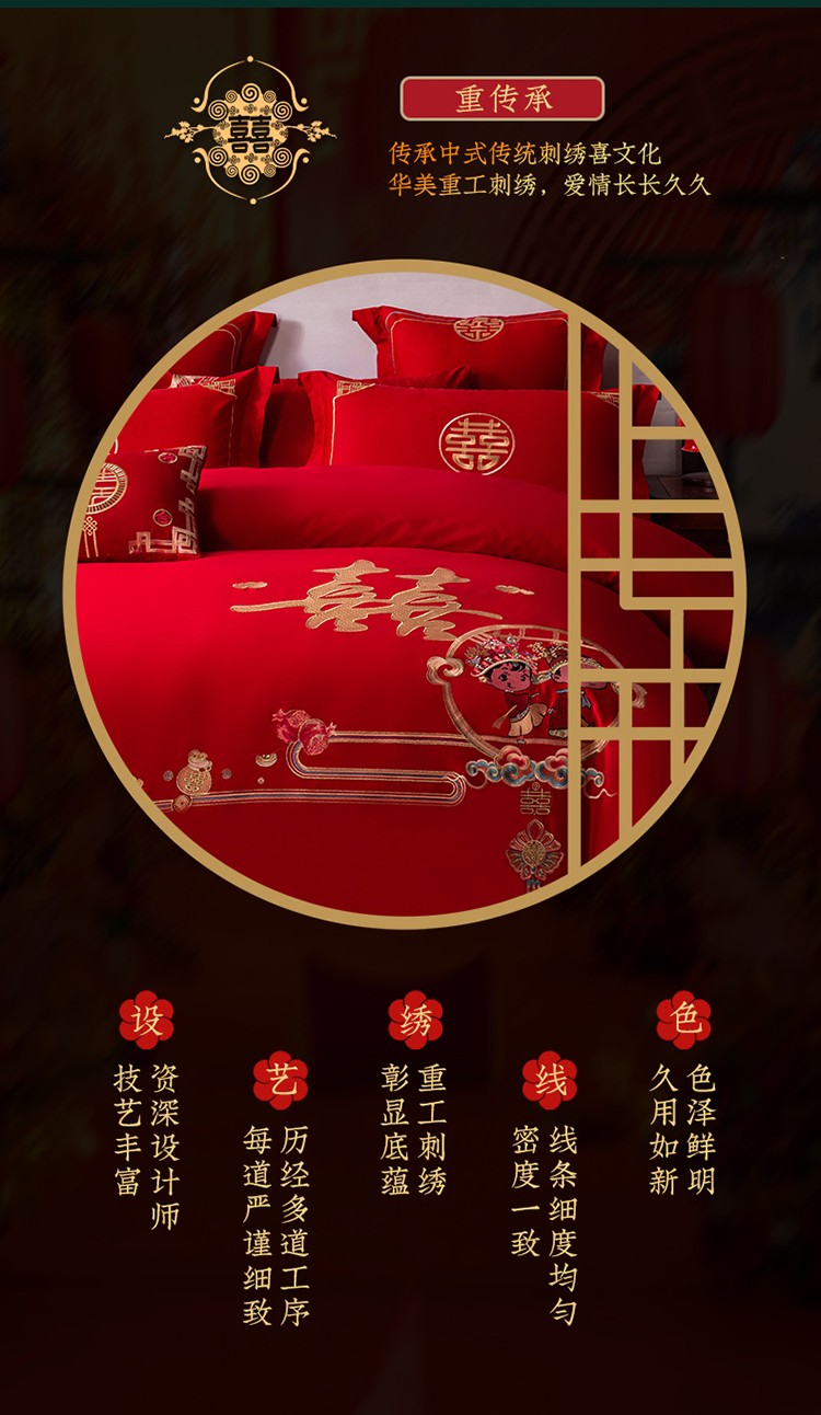 (总)博之洋婚庆 2023新款全棉刺绣婚庆四件套,简爱,囍嫁,缘定今生,双喜临门,麒麟送子,余生有你,龙凤呈祥,龙凤盛世,红鸾天禧,百子迎亲,美丽红妆,幸福相守,喜满天下-红,喜满天下-金,喜事连连,皇家龙凤,浪漫婚礼,喜上加喜,一见倾心,欢喜百子,遇见爱,花烛红妆,一心一意,挚爱一生,花好月圆,爱的宣言,龙凤九天,万千喜事,一路有你-金,多子多福,龙凤添喜,千禧龙凤,宠爱,锦绣良缘-红,锦绣良缘-金,一路有你-红,钟爱一生,鸿运龙凤,龙凤传玺,龙凤百子,龙凤贺彩-红,龙凤贺彩-金,金龙玉凤,盛世唐朝-红,盛世唐朝-金,祥龙禧凤-红,祥龙禧凤-金,锦绣龙凤-红,锦绣龙凤-金,龙凤良缘