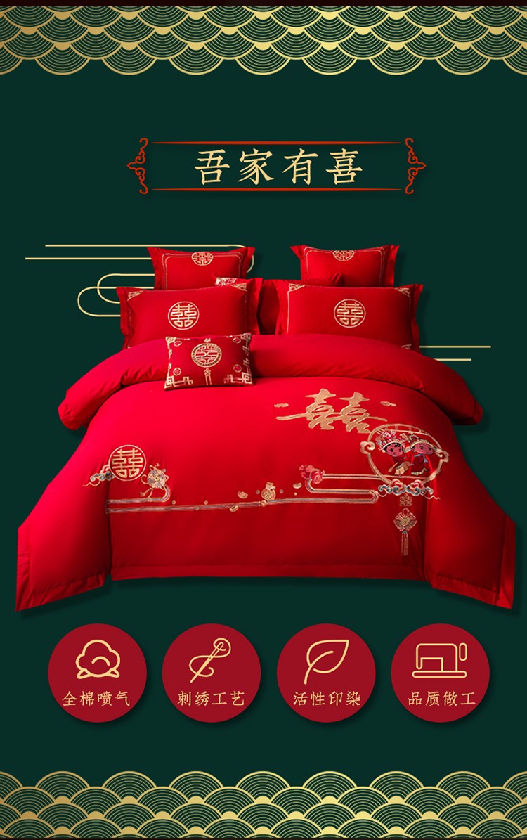 商品名称:博之洋 2022新款全棉喷气13372刺绣婚庆四件套吾家有喜