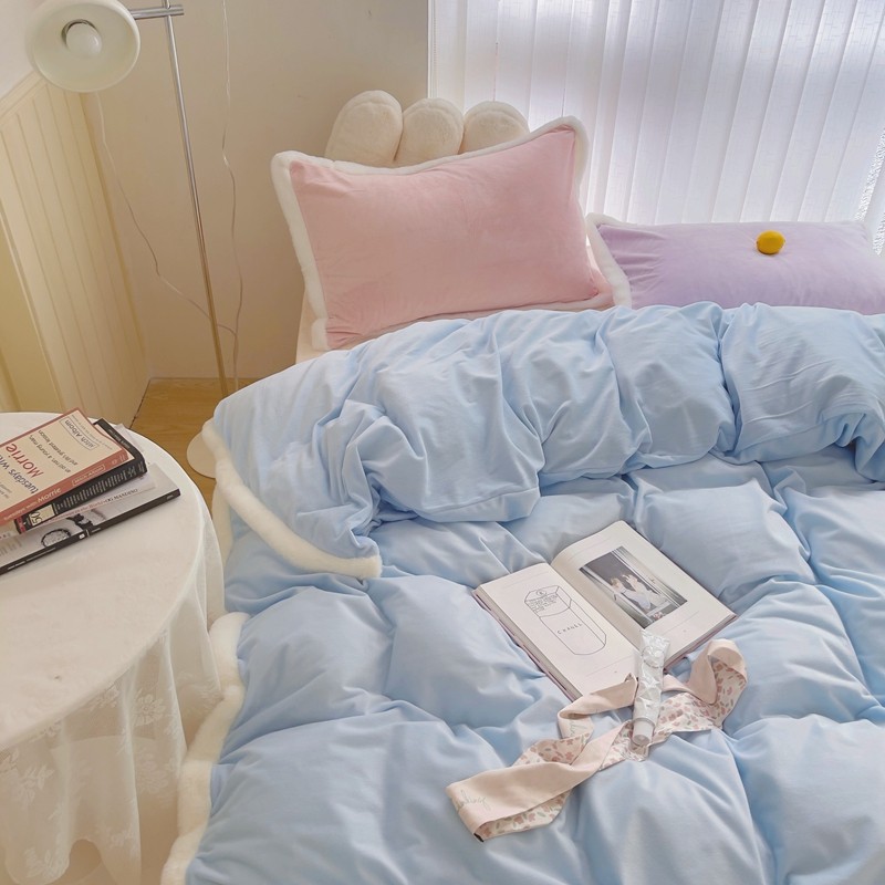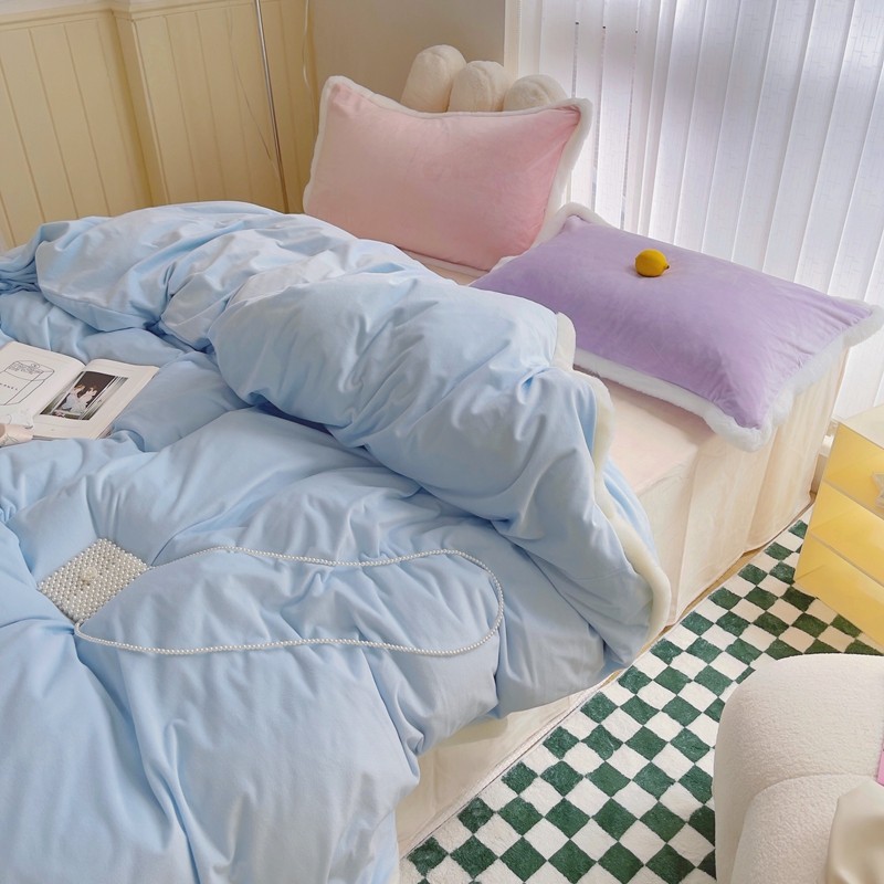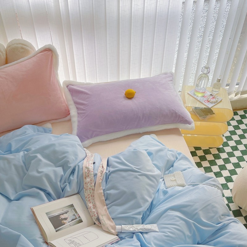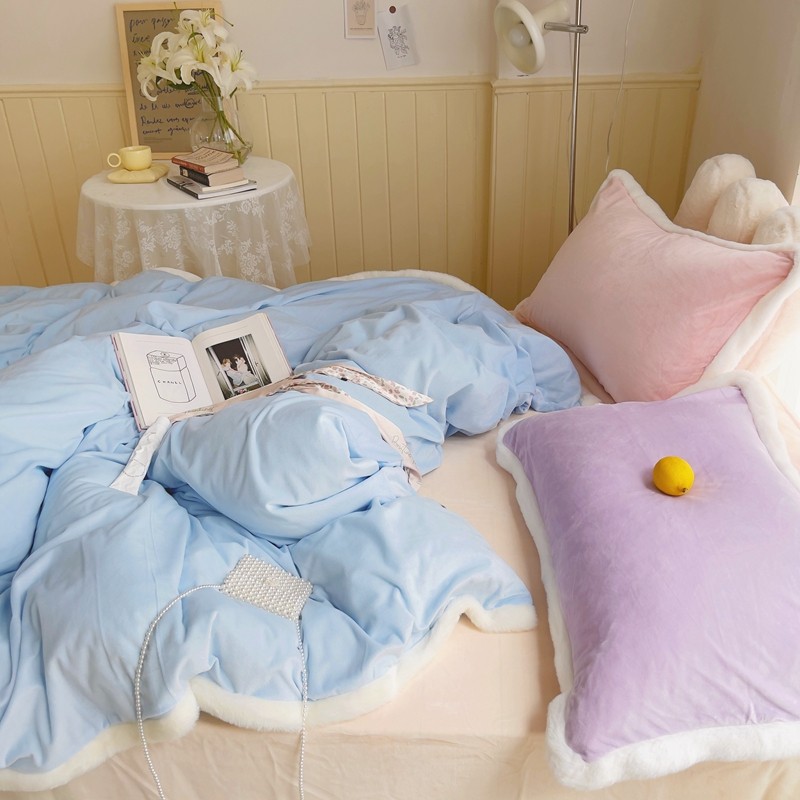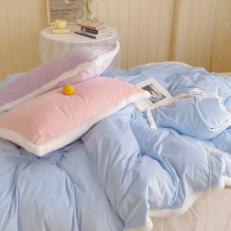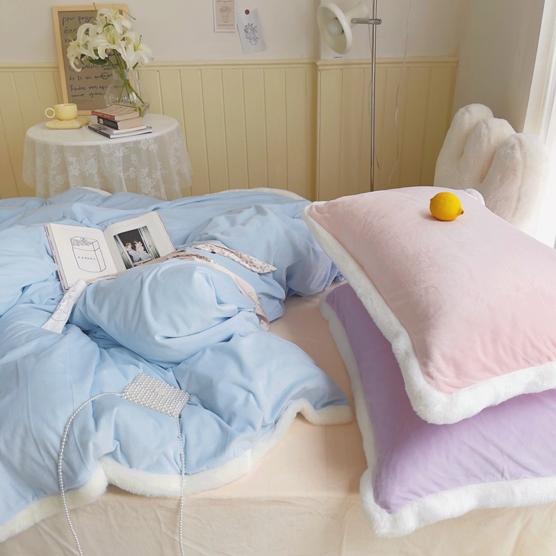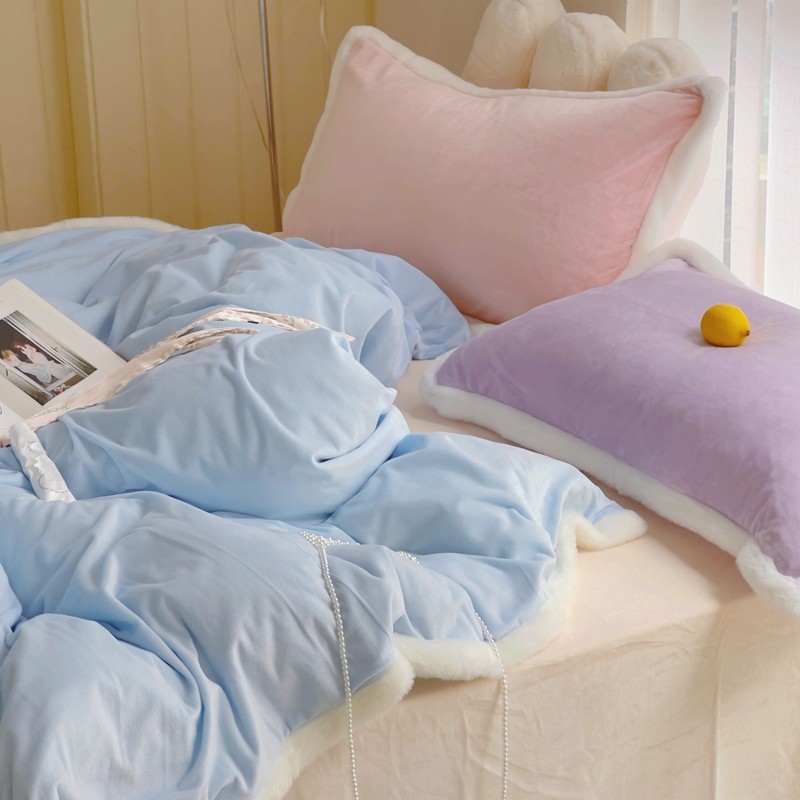 当前位置: 91家纺网 > 商品网购 > 床品套件 > 四件套 > 磨绒四件套 > 圆岛家新品纺撞色混搭系马卡龙ins慢热风冬款暖绒四件套 天空蓝-枕套紫拼粉+床单香槟橙