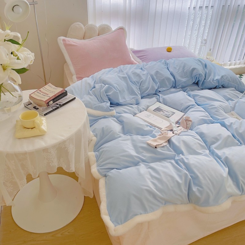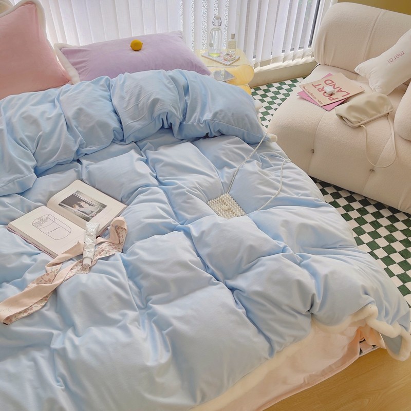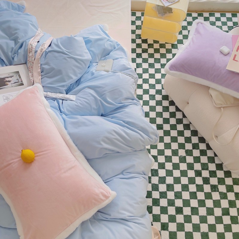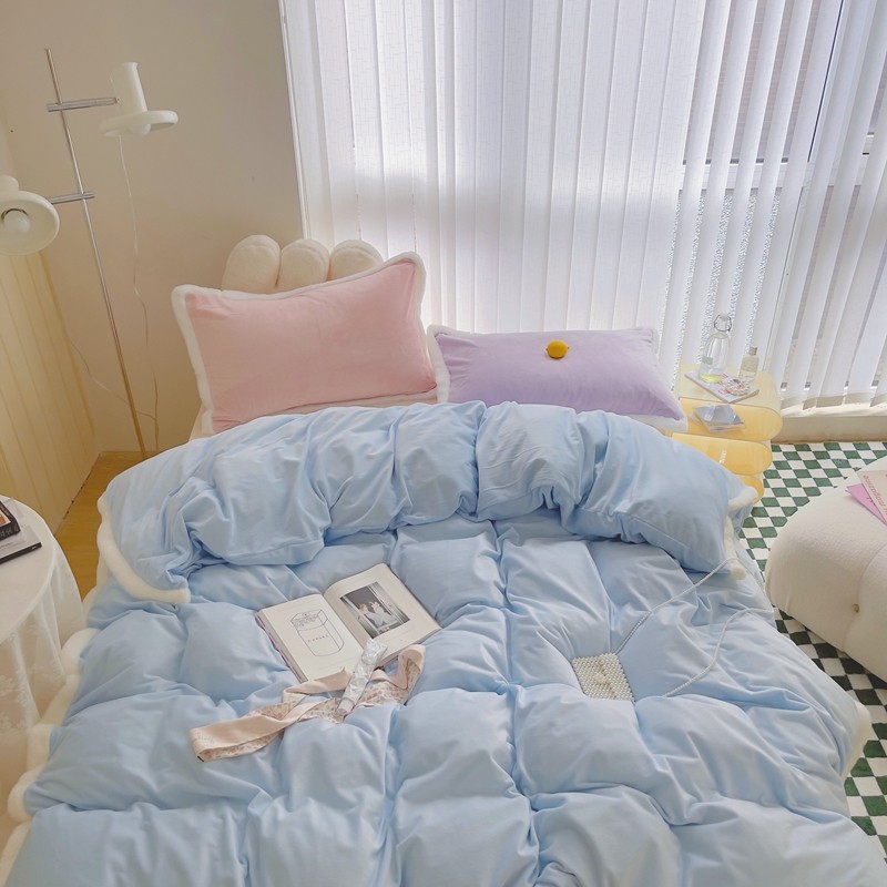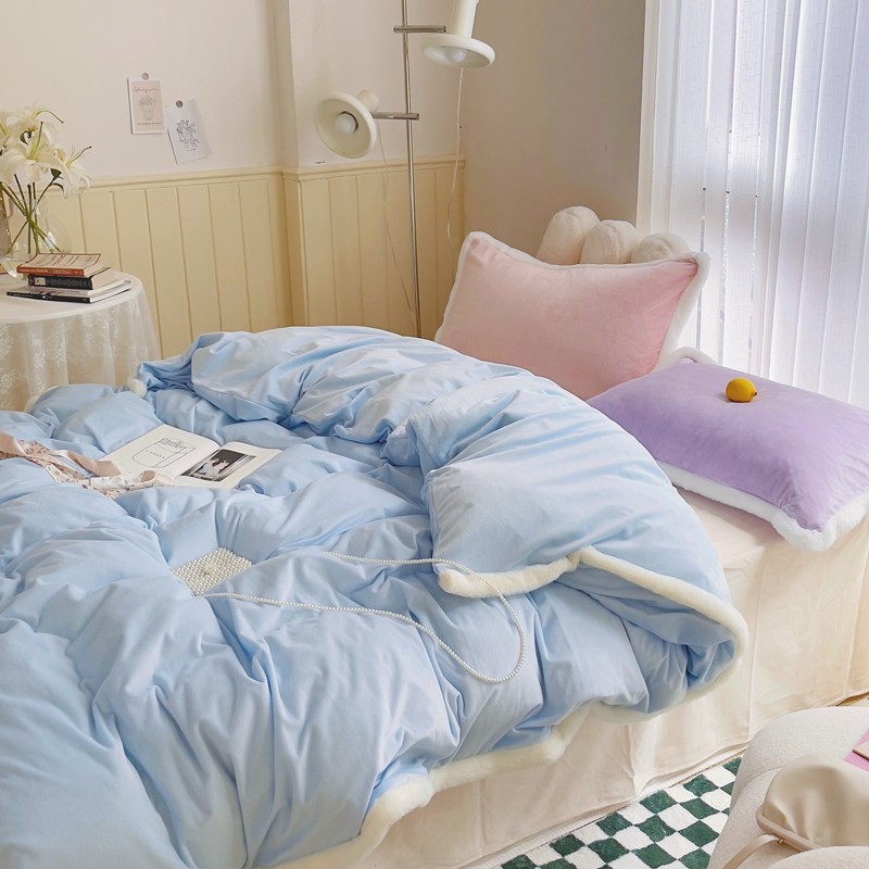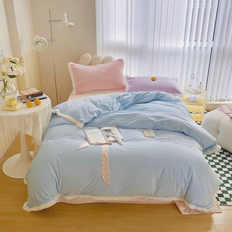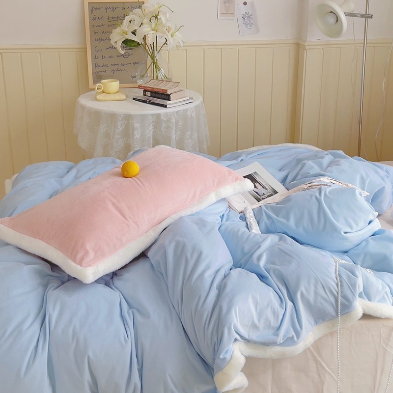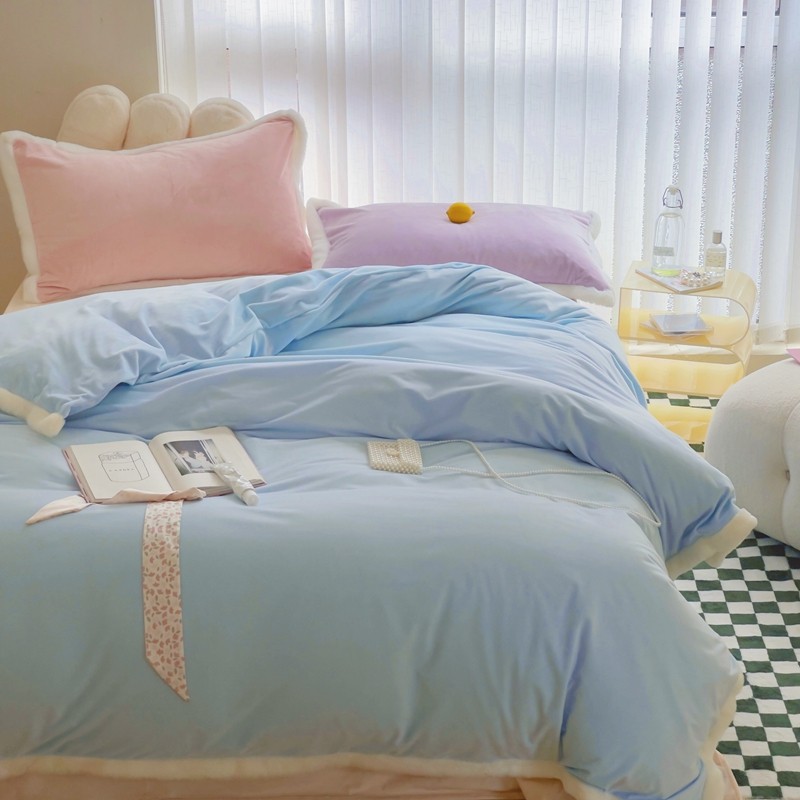 当前位置: 91家纺网 > 商品网购 > 床品套件 > 四件套 > 磨绒四件套 > 圆岛家新品纺撞色混搭系马卡龙ins慢热风冬款暖绒四件套 天空蓝-枕套紫拼粉+床单香槟橙