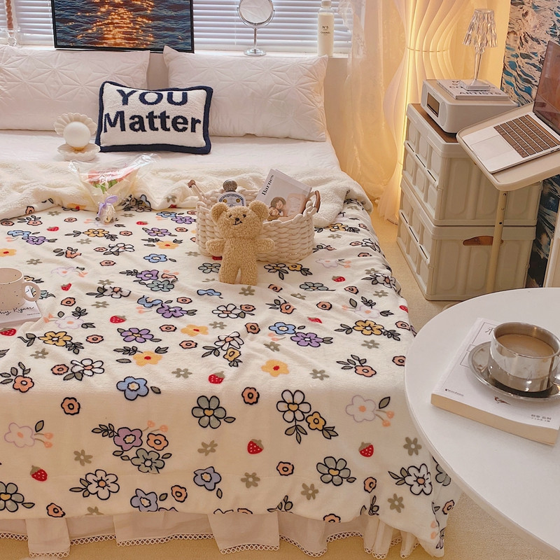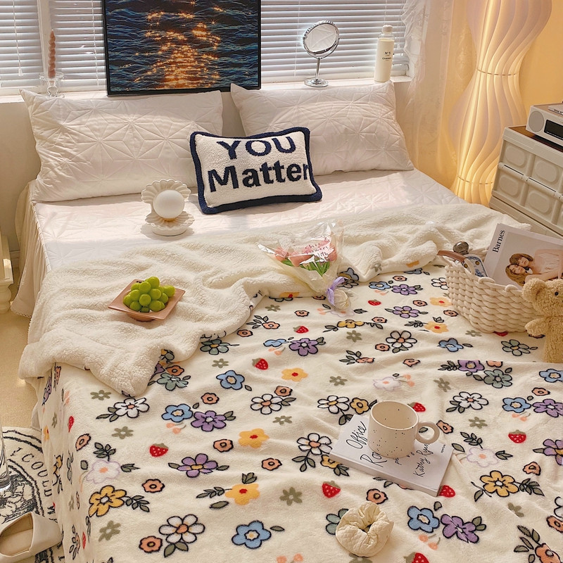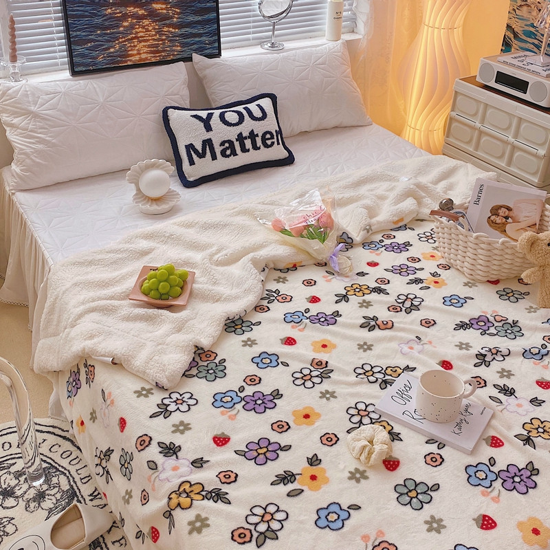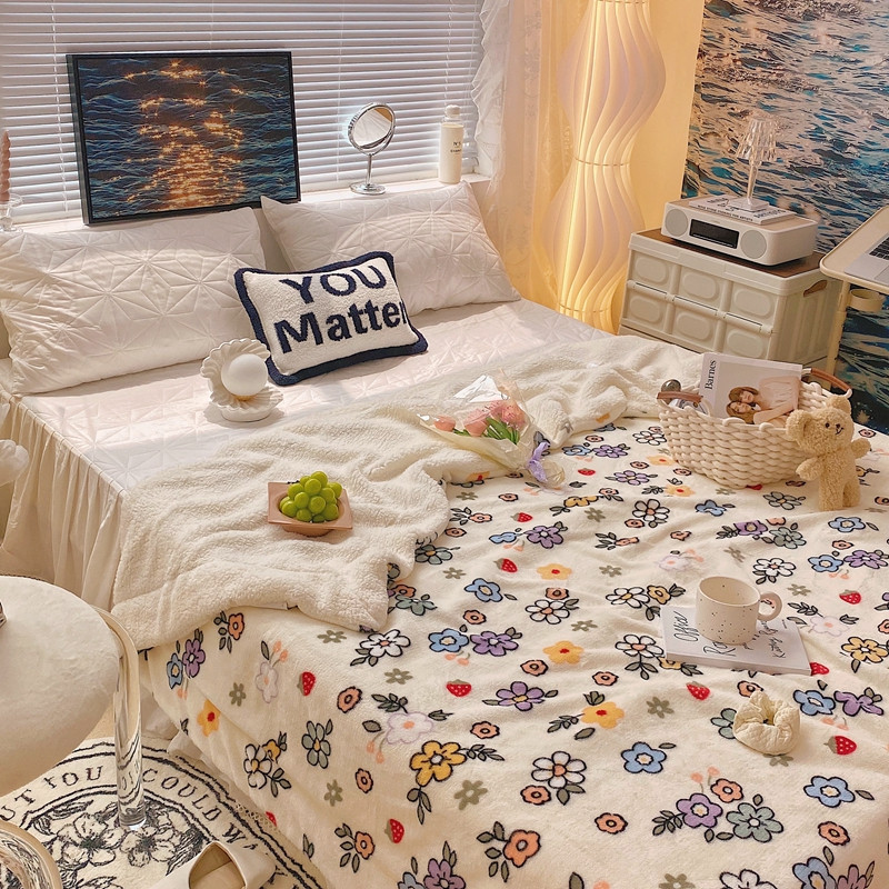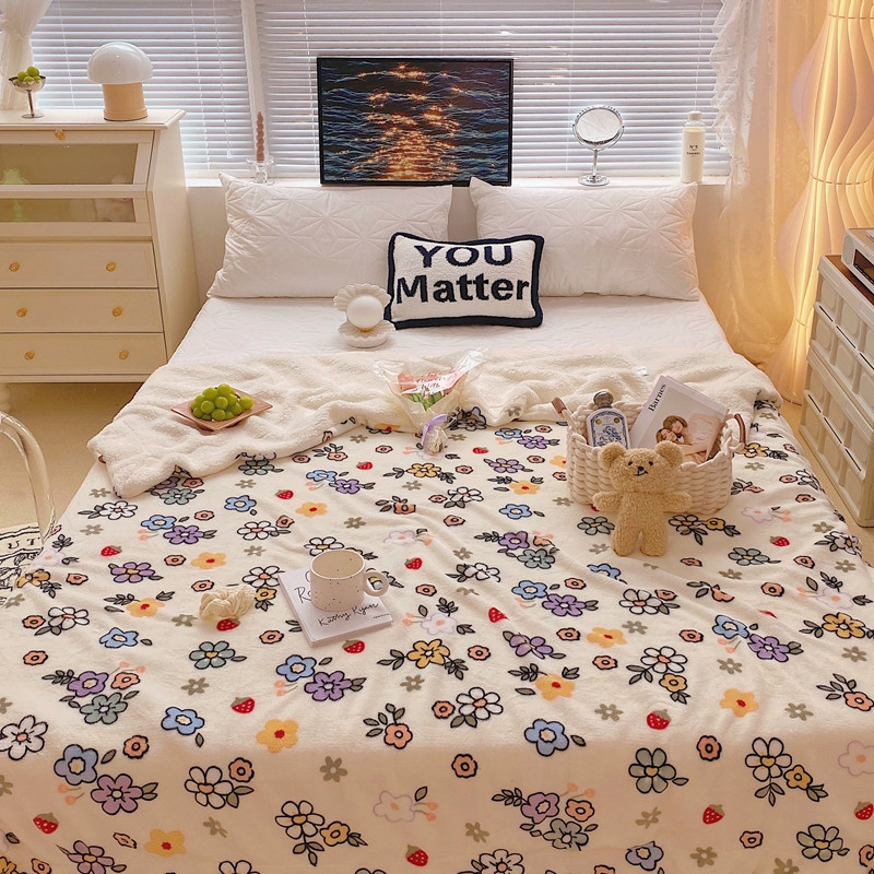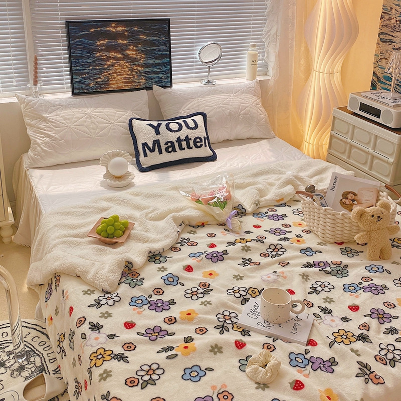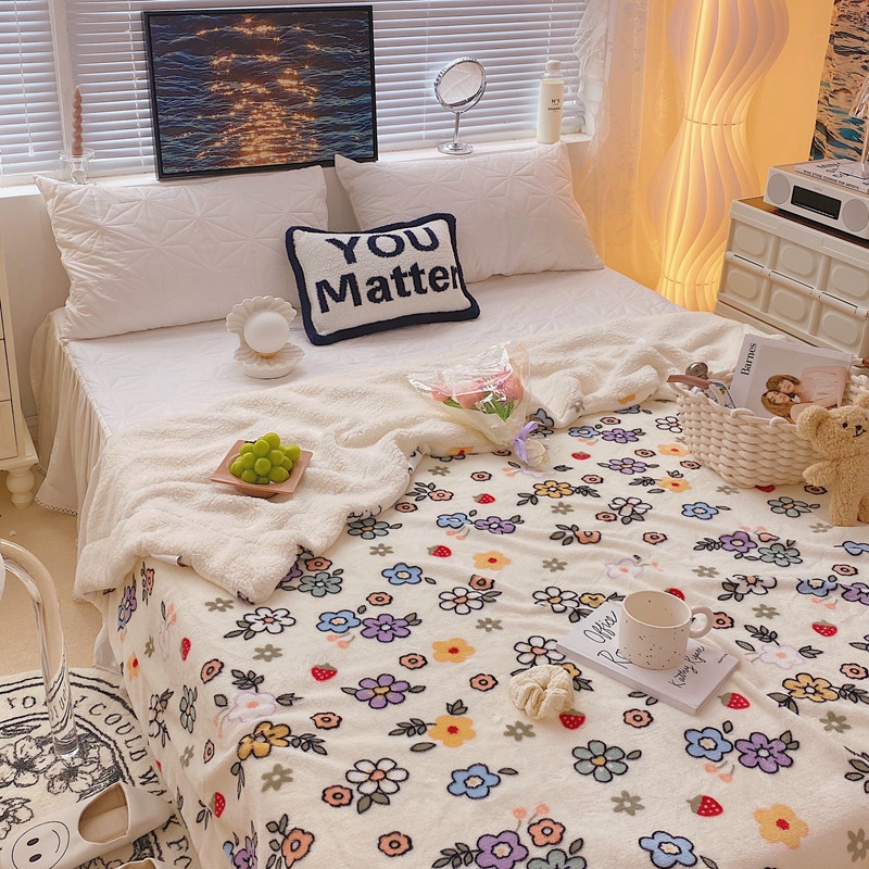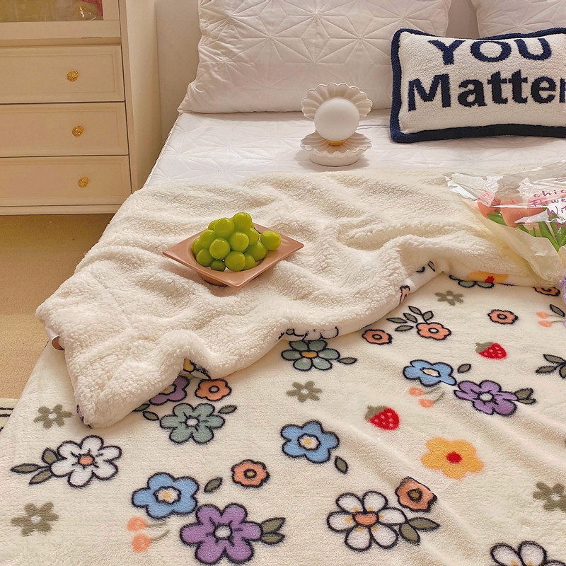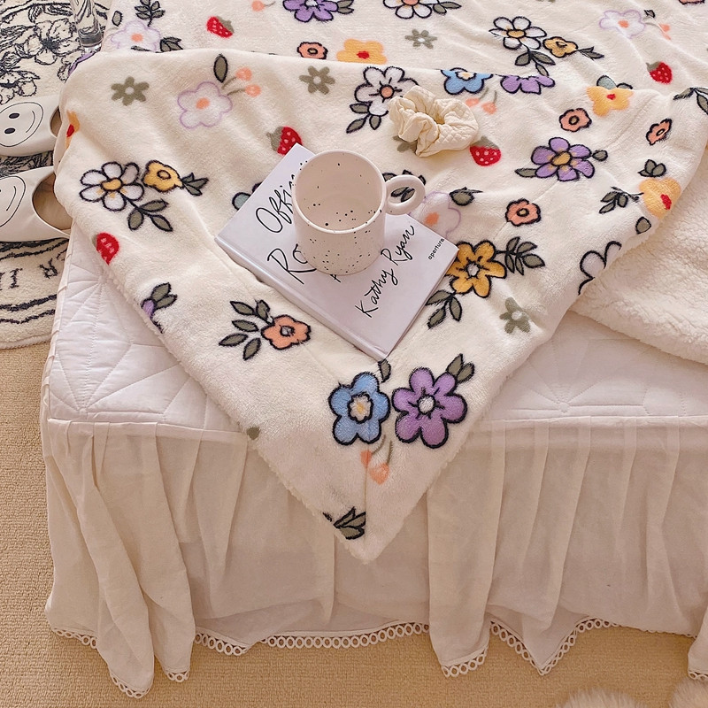 顾里 2021新款ins网红少女心暖肤羊羔绒毯实拍图碎花草莓
