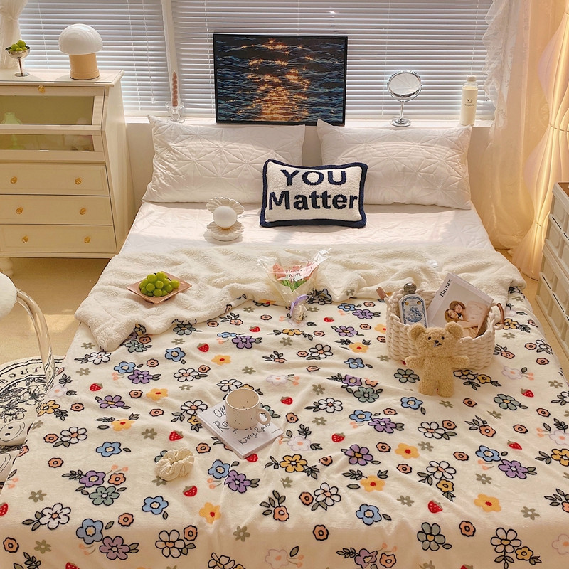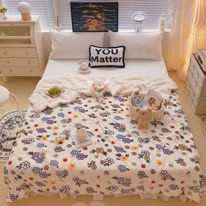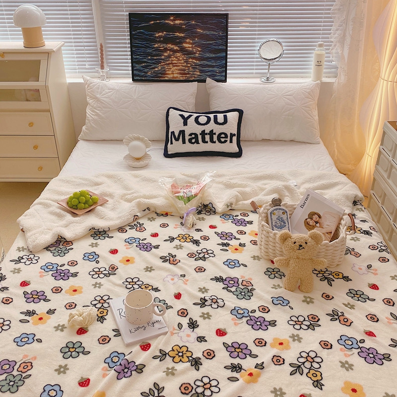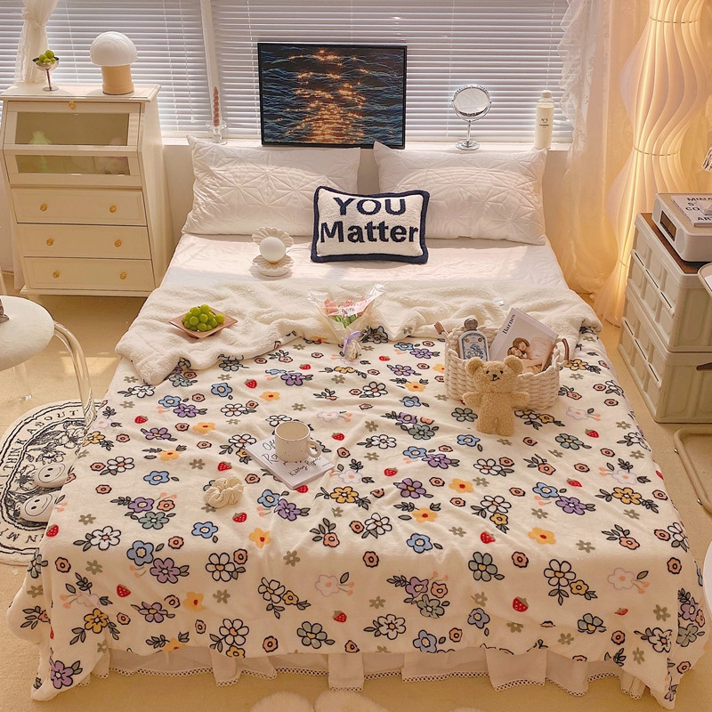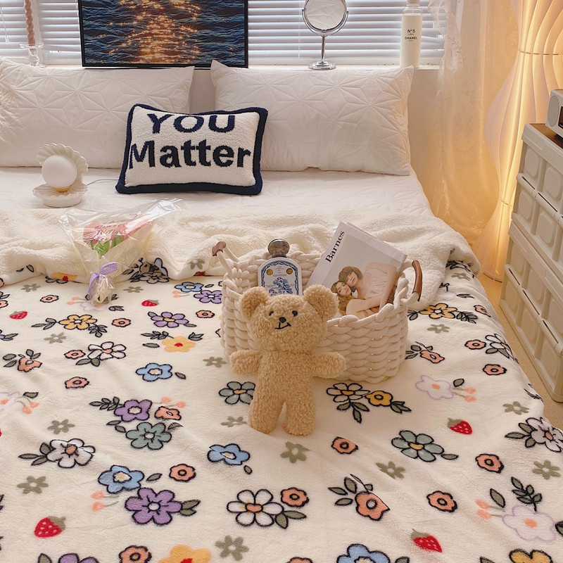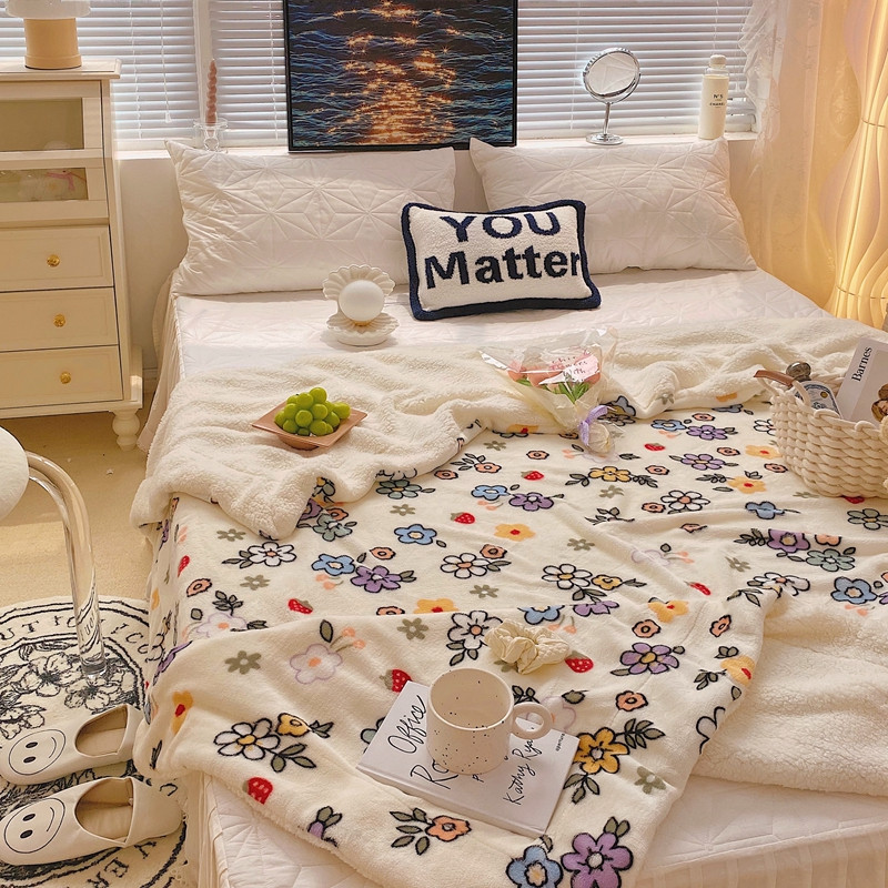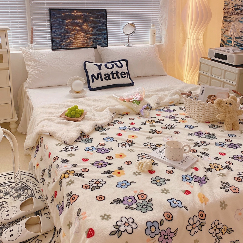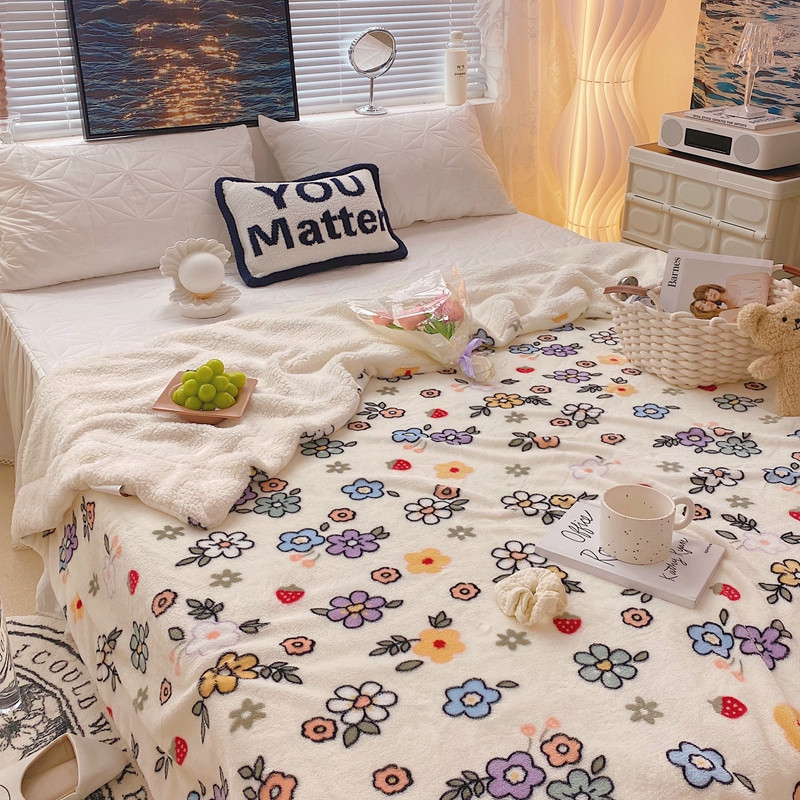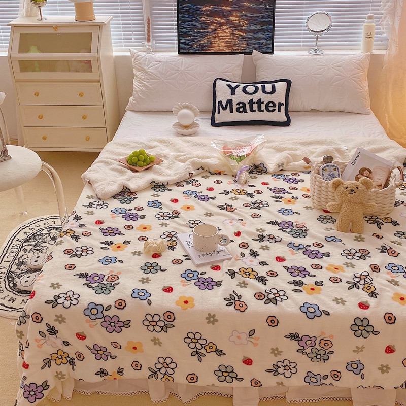 顾里 2021新款ins网红少女心暖肤羊羔绒毯实拍图碎花草莓