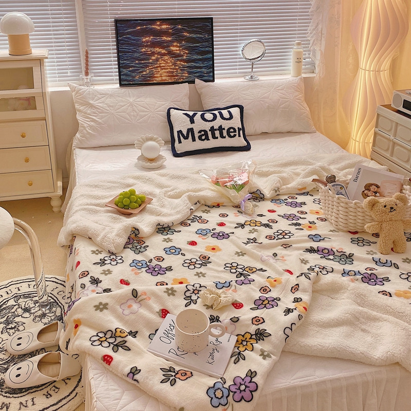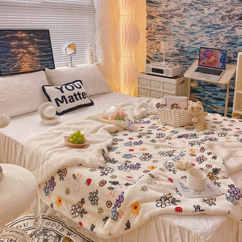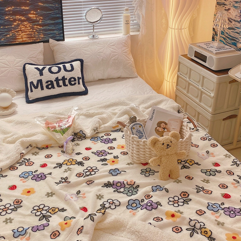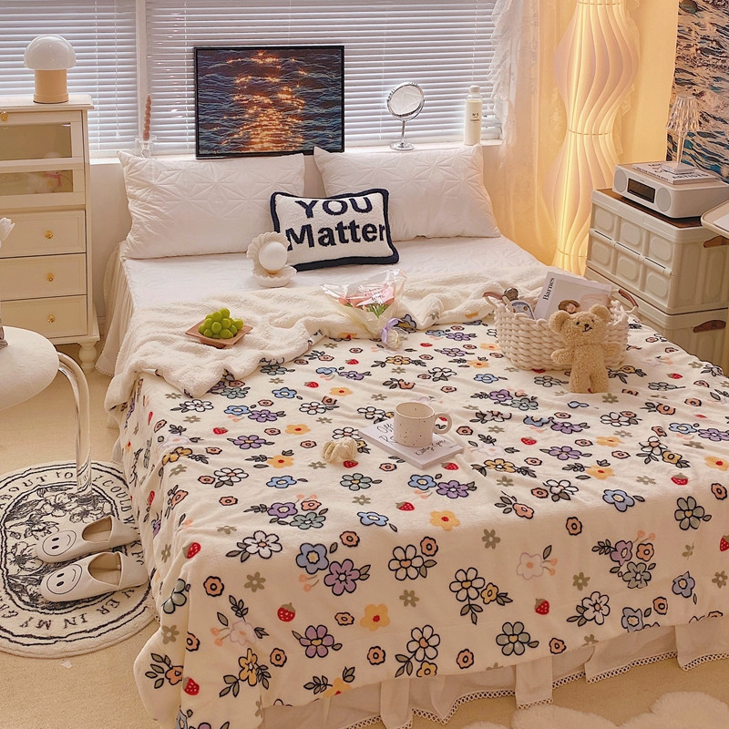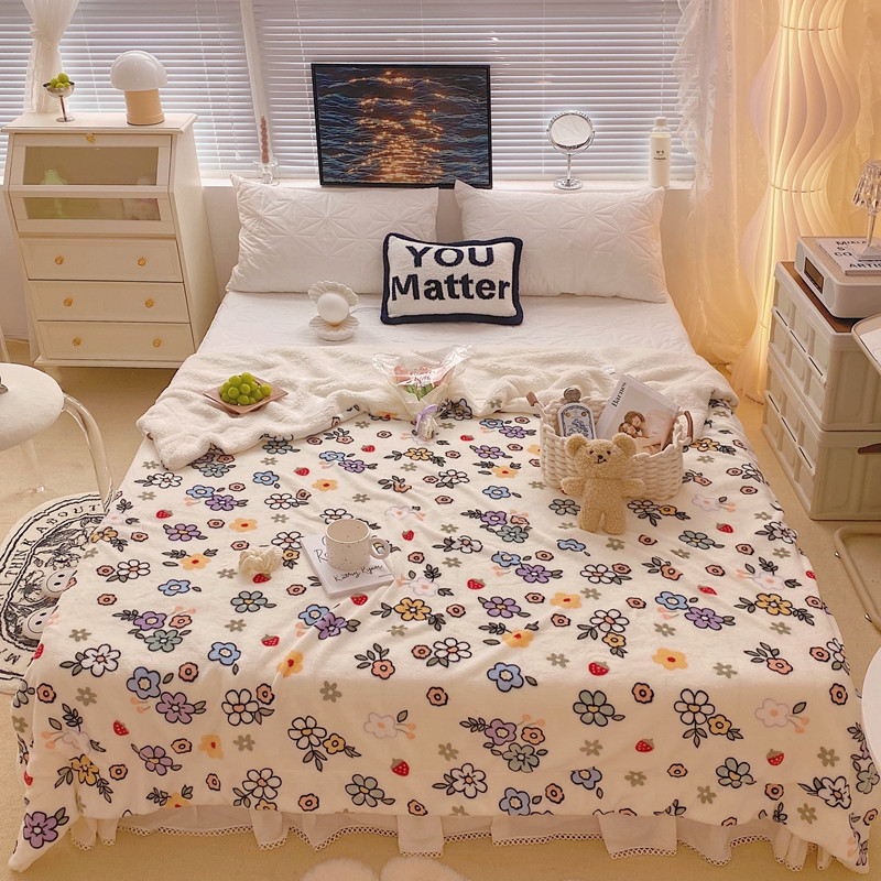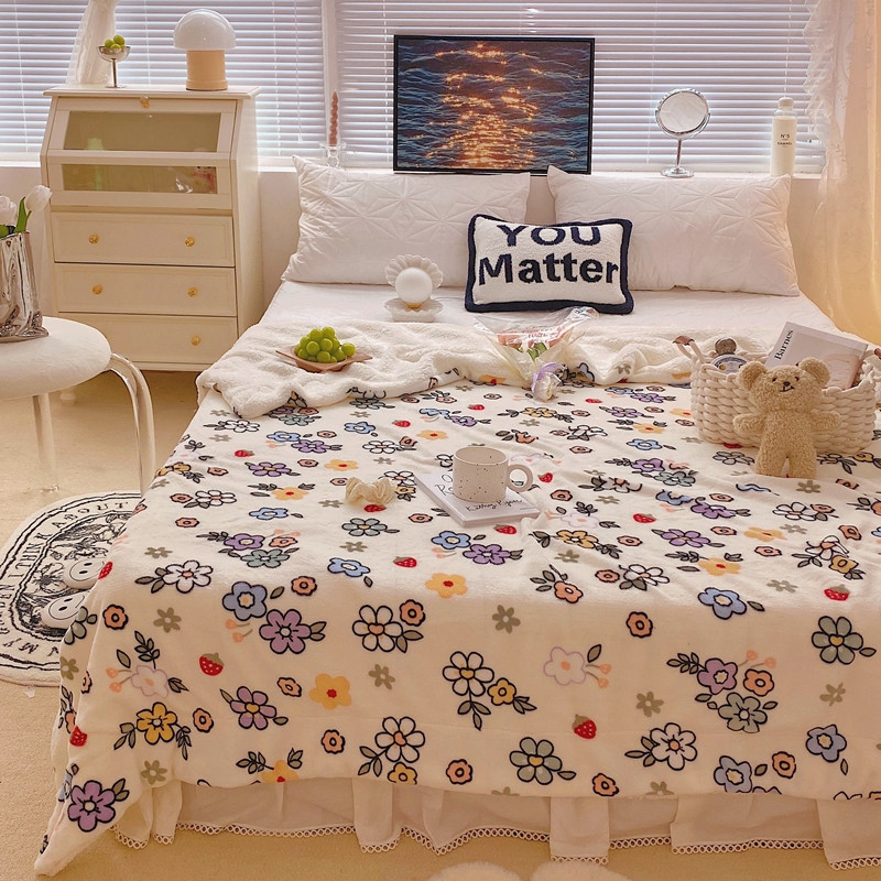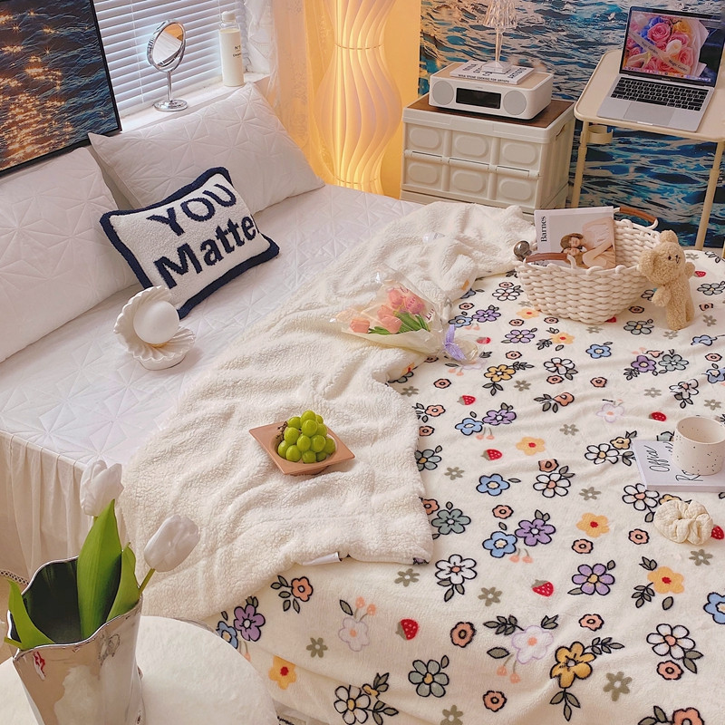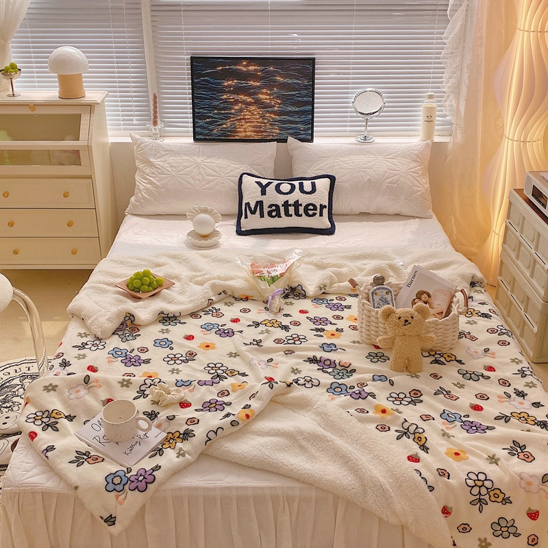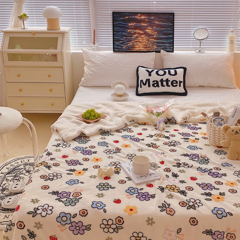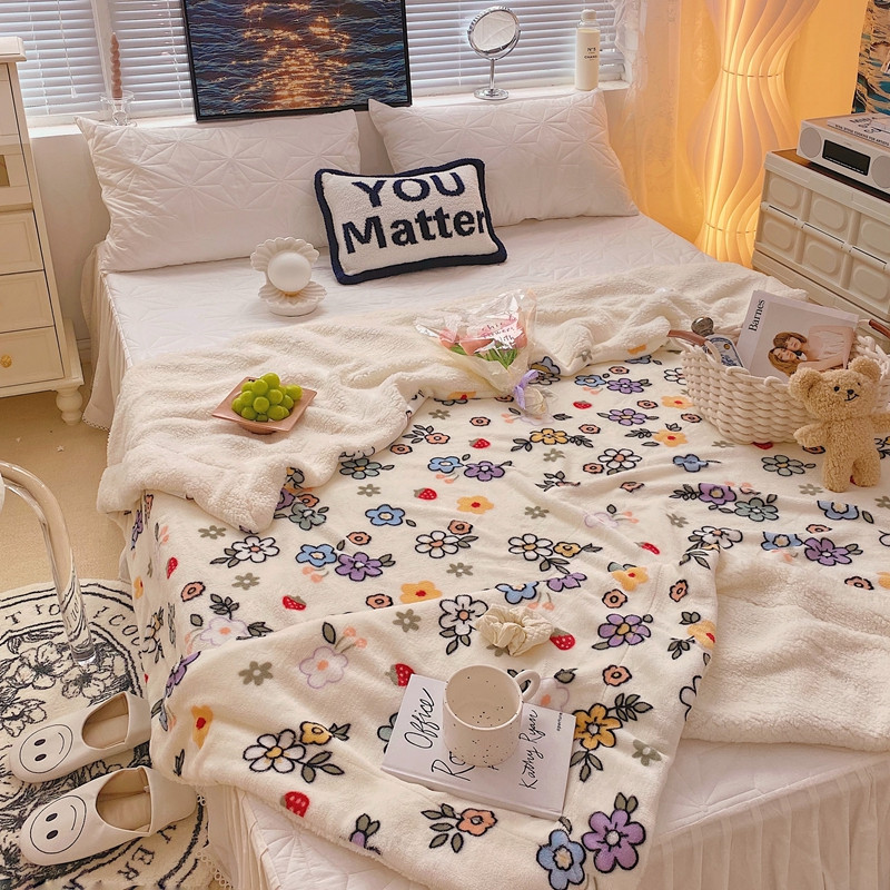 顾里 2021新款ins网红少女心暖肤羊羔绒毯实拍图碎花草莓