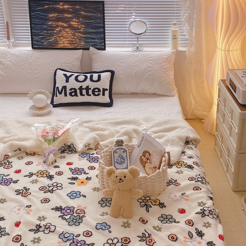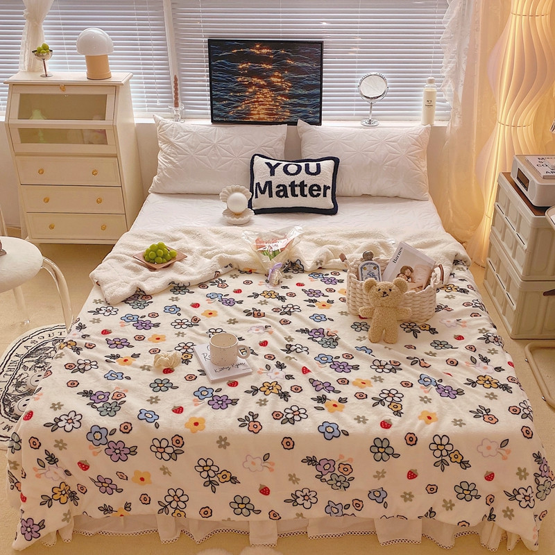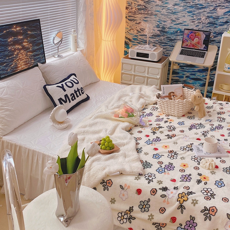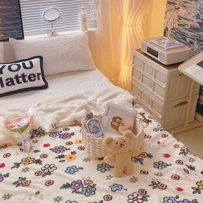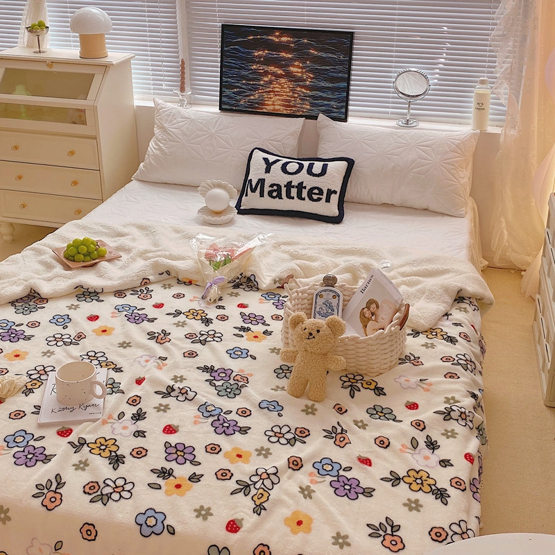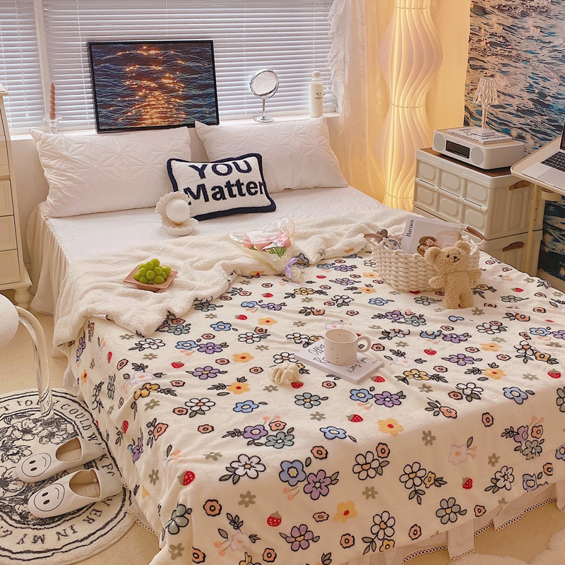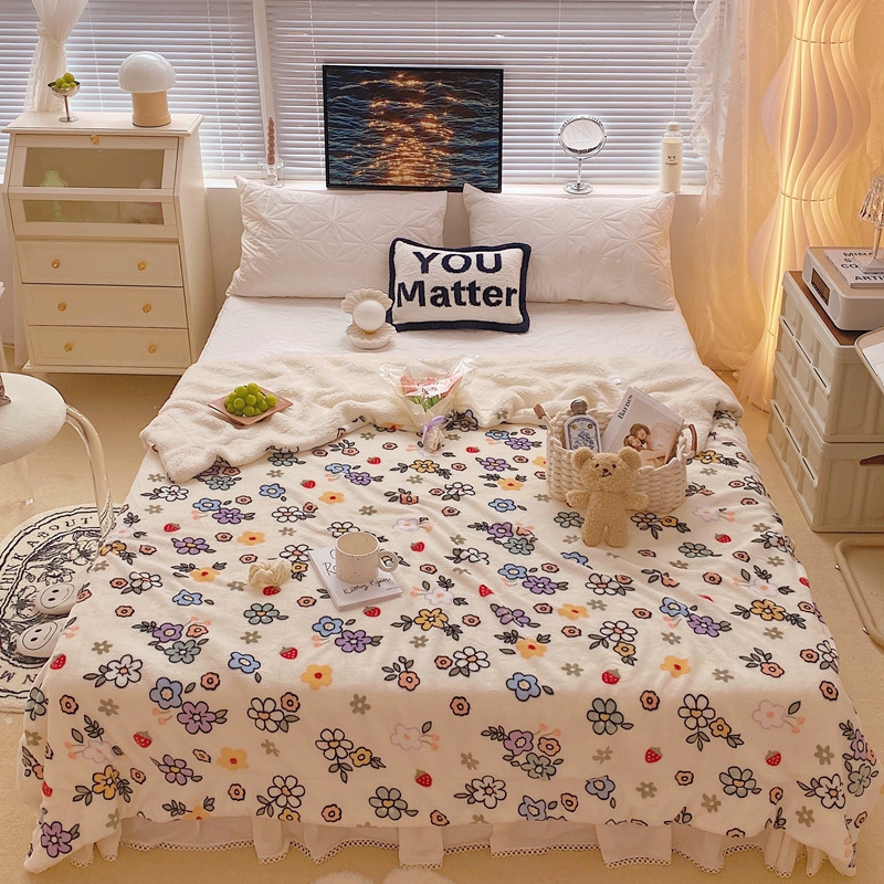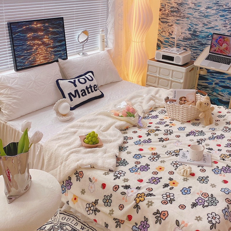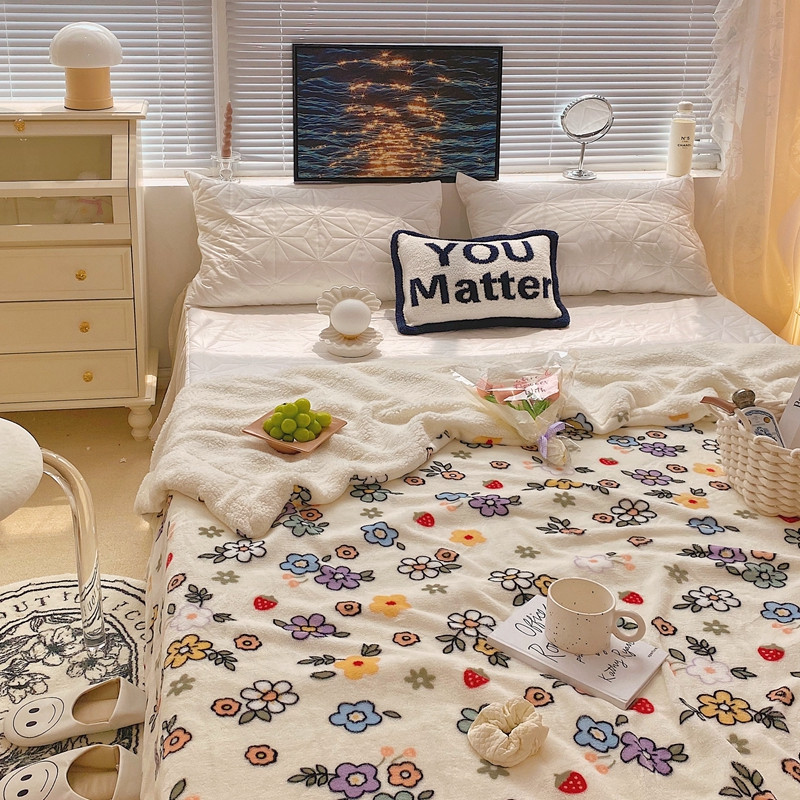 顾里 2021新款ins网红少女心暖肤羊羔绒毯实拍图碎花草莓