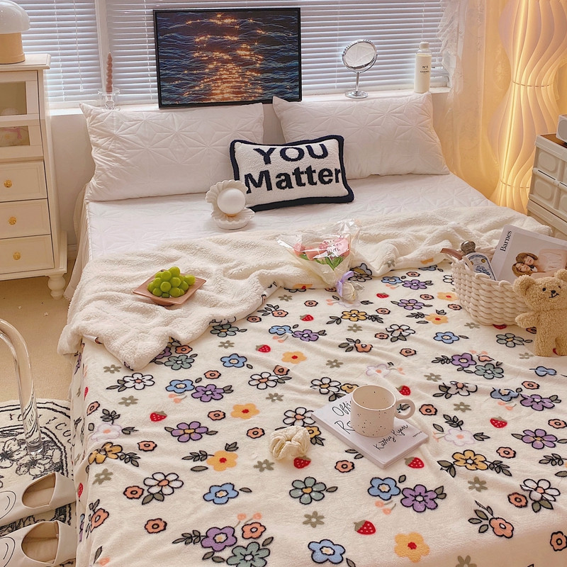 商品名称:顾里 2021新款ins网红少女心暖肤羊羔绒毯实拍图碎花草莓