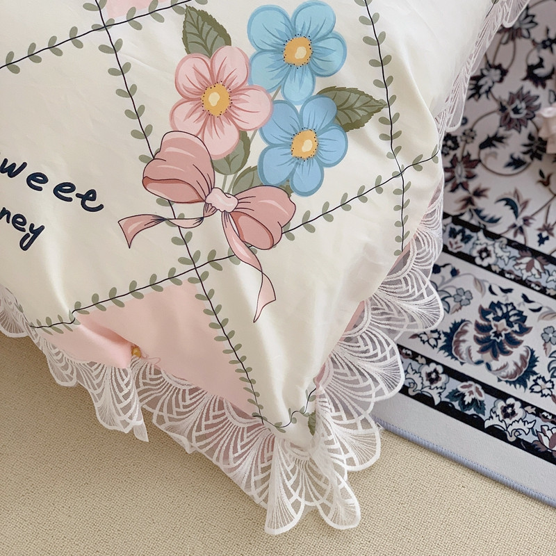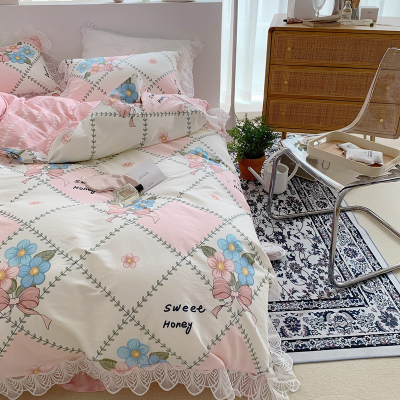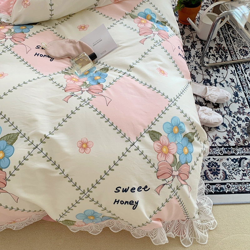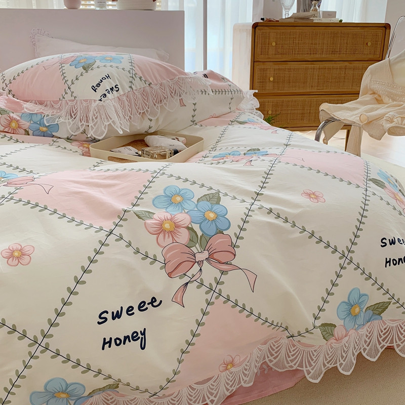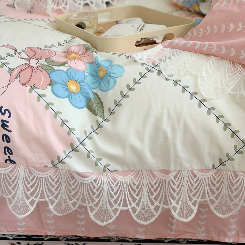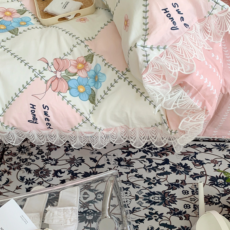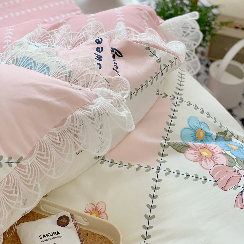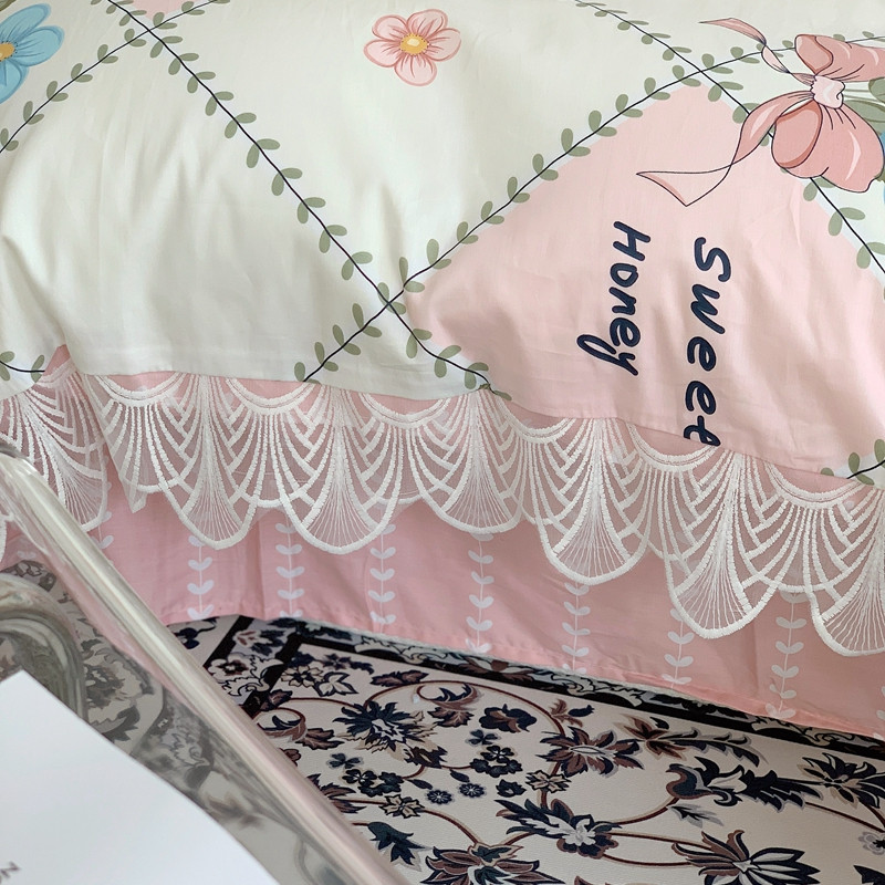 顾里40支13372复古韩风蕾丝大花边全棉四件套花花蝴蝶结