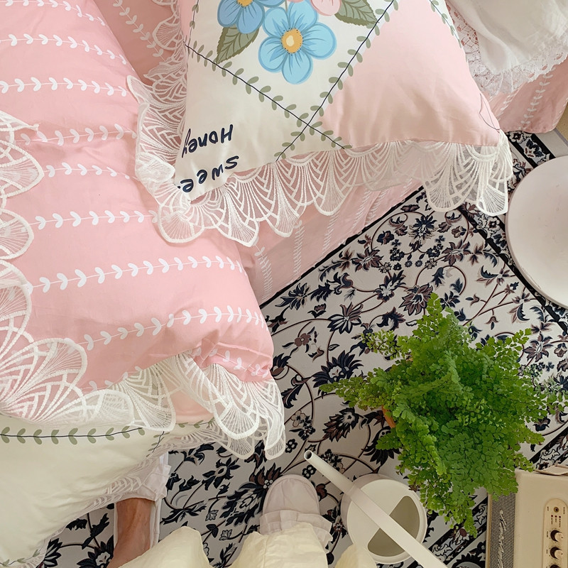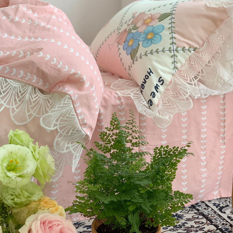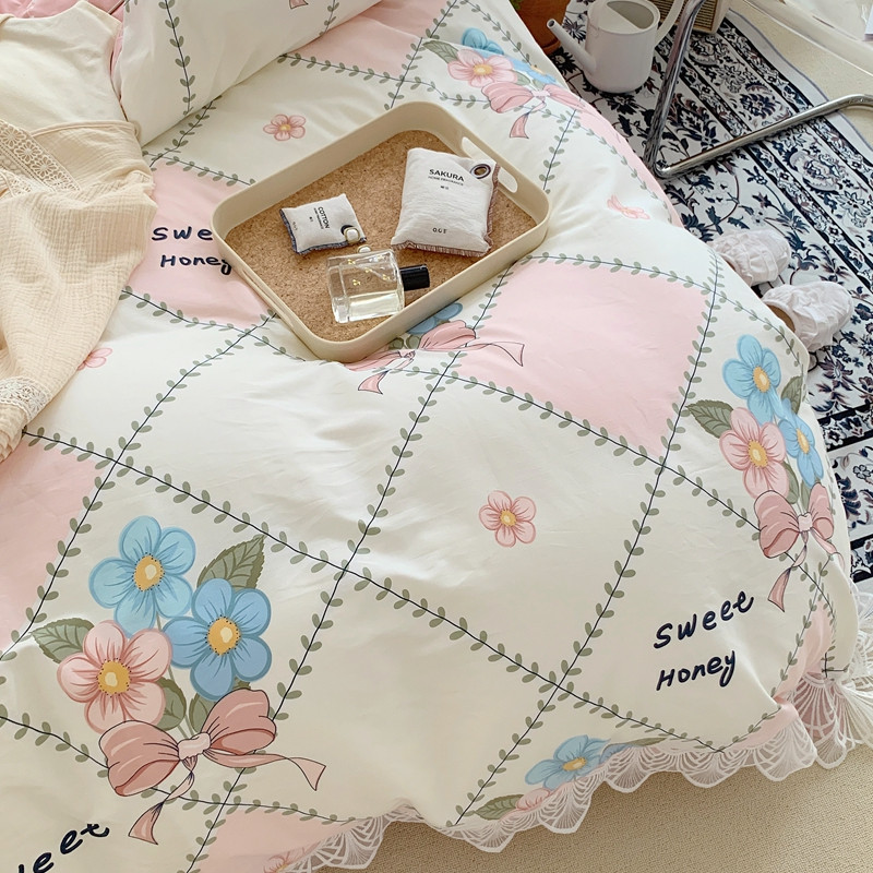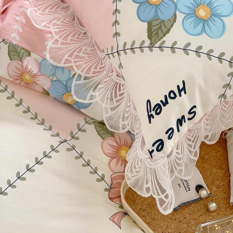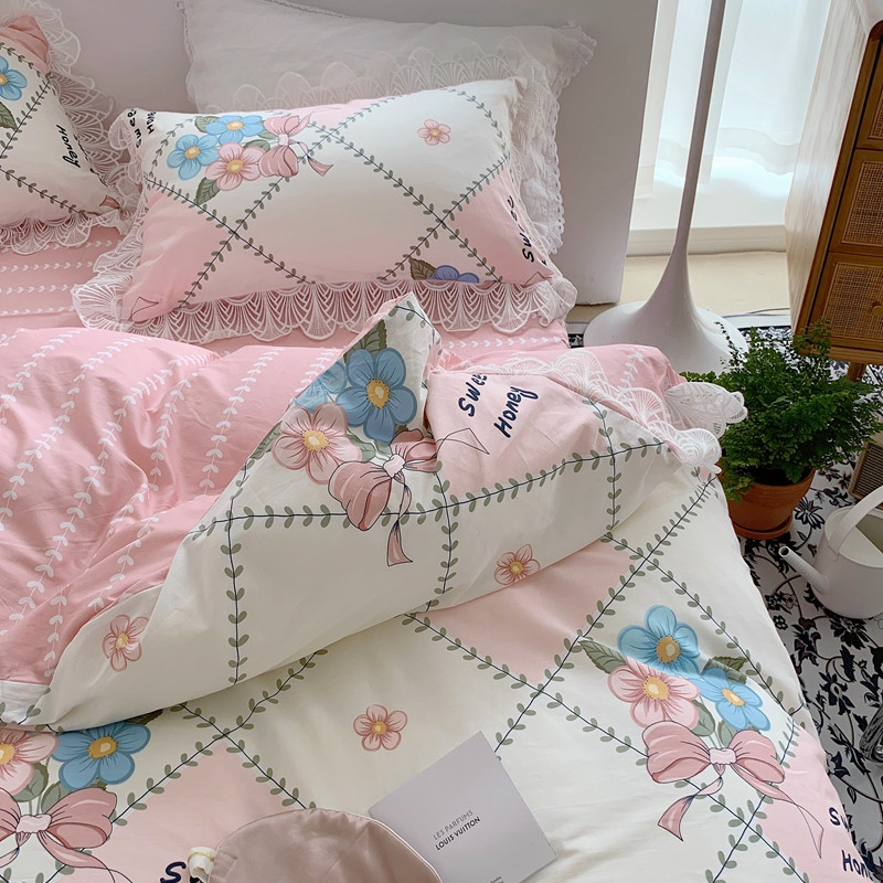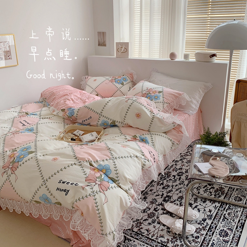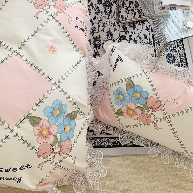 顾里40支13372复古韩风蕾丝大花边全棉四件套花花蝴蝶结