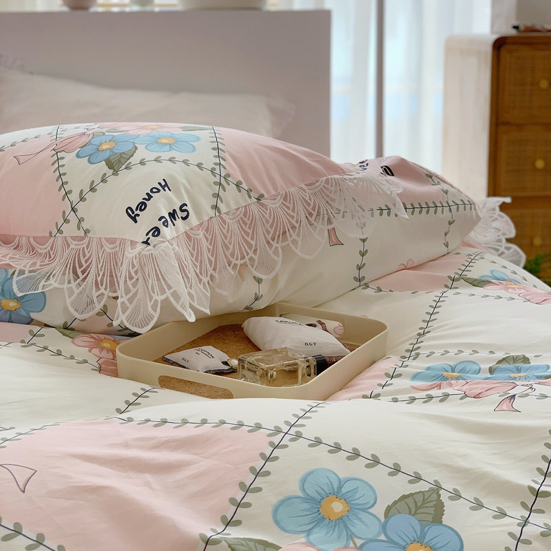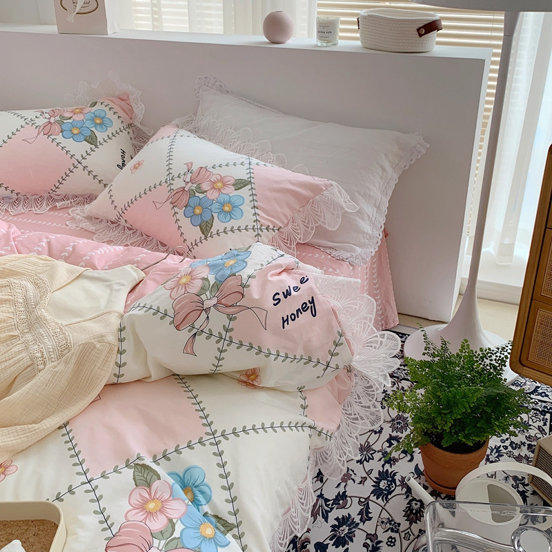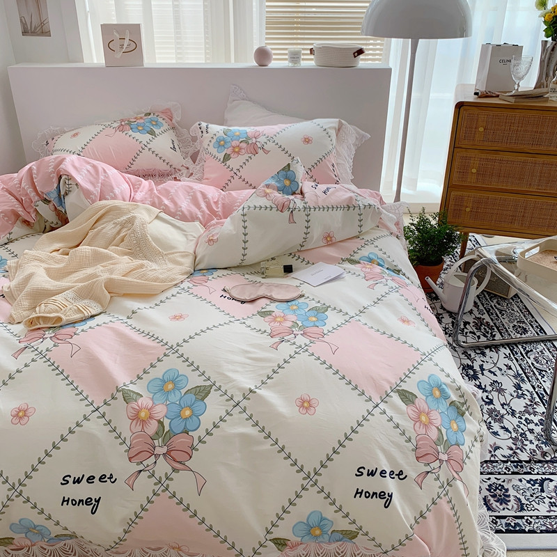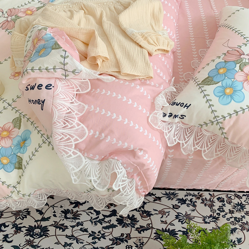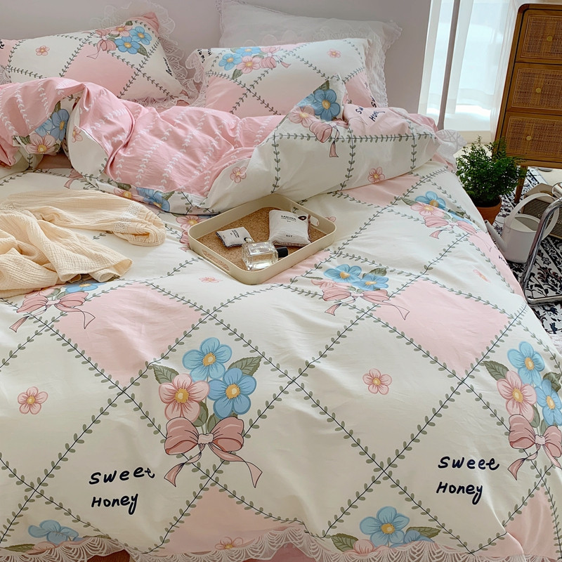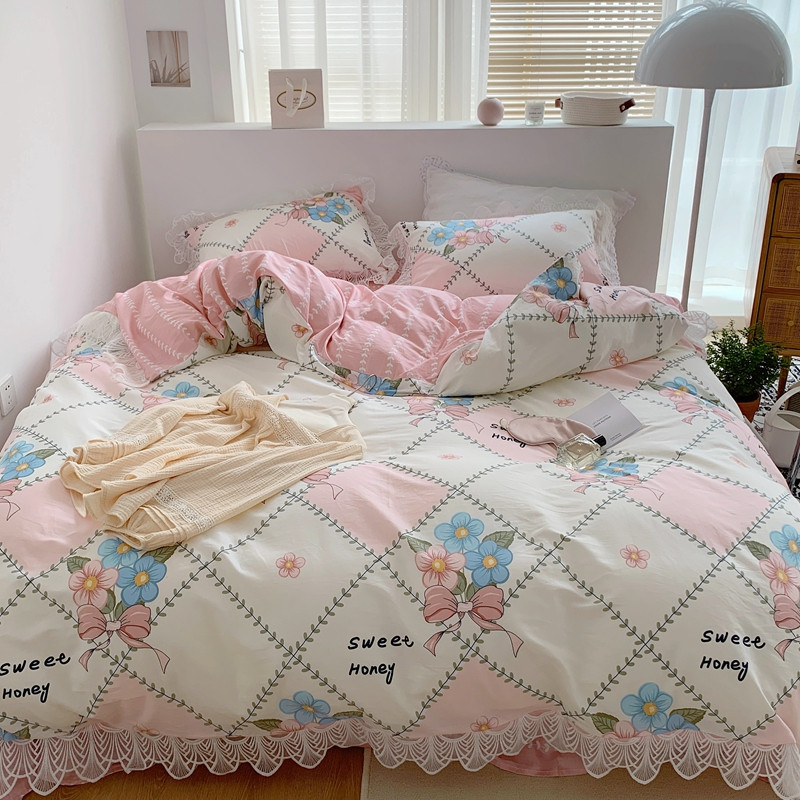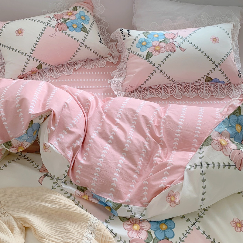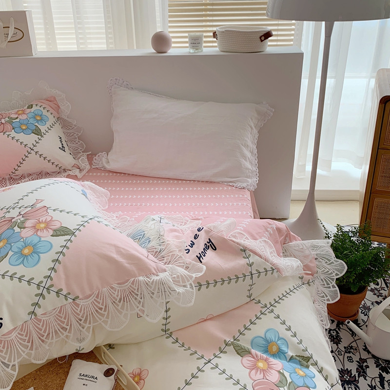 顾里40支13372复古韩风蕾丝大花边全棉四件套花花蝴蝶结