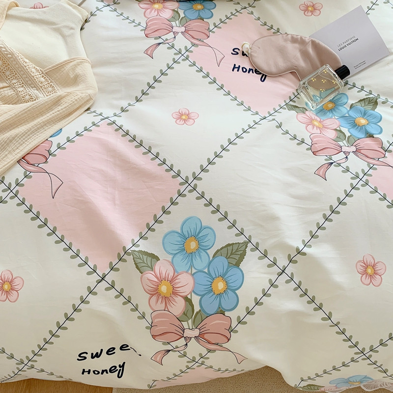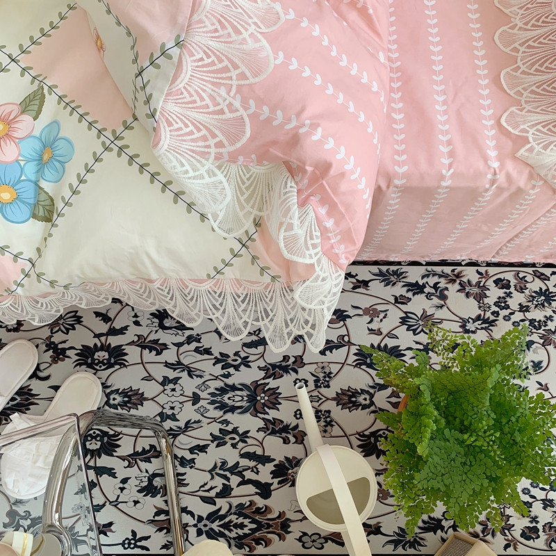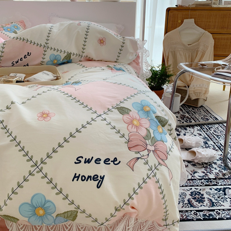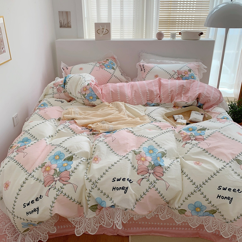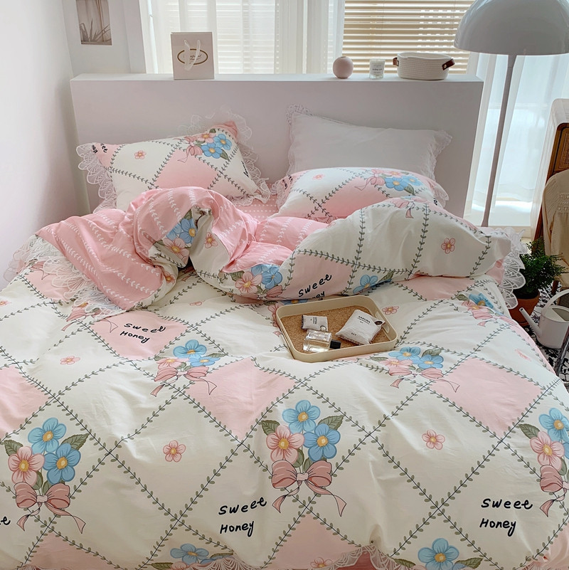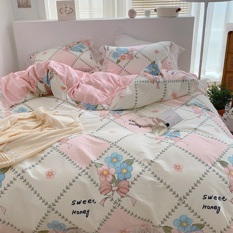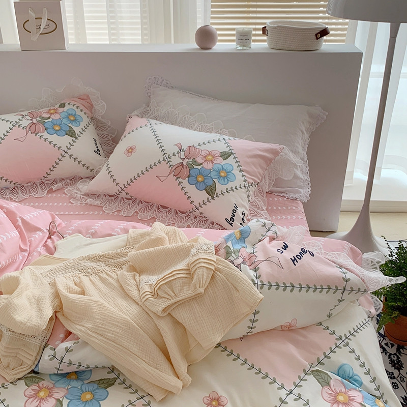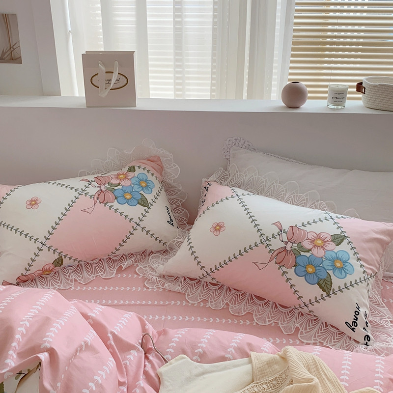 顾里40支13372复古韩风蕾丝大花边全棉四件套花花蝴蝶结