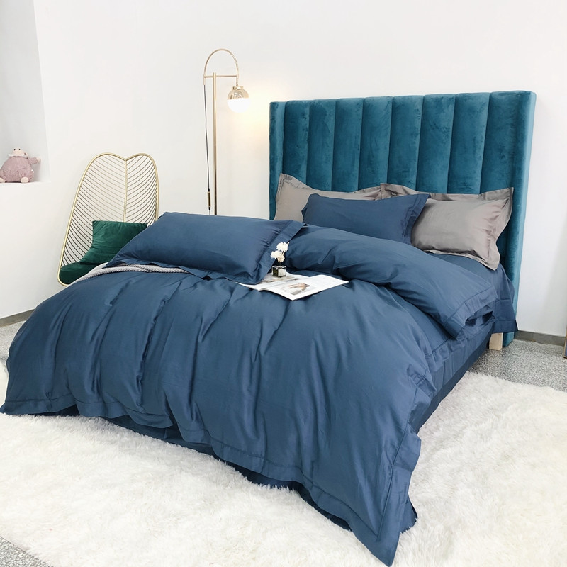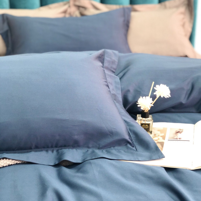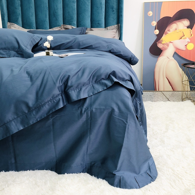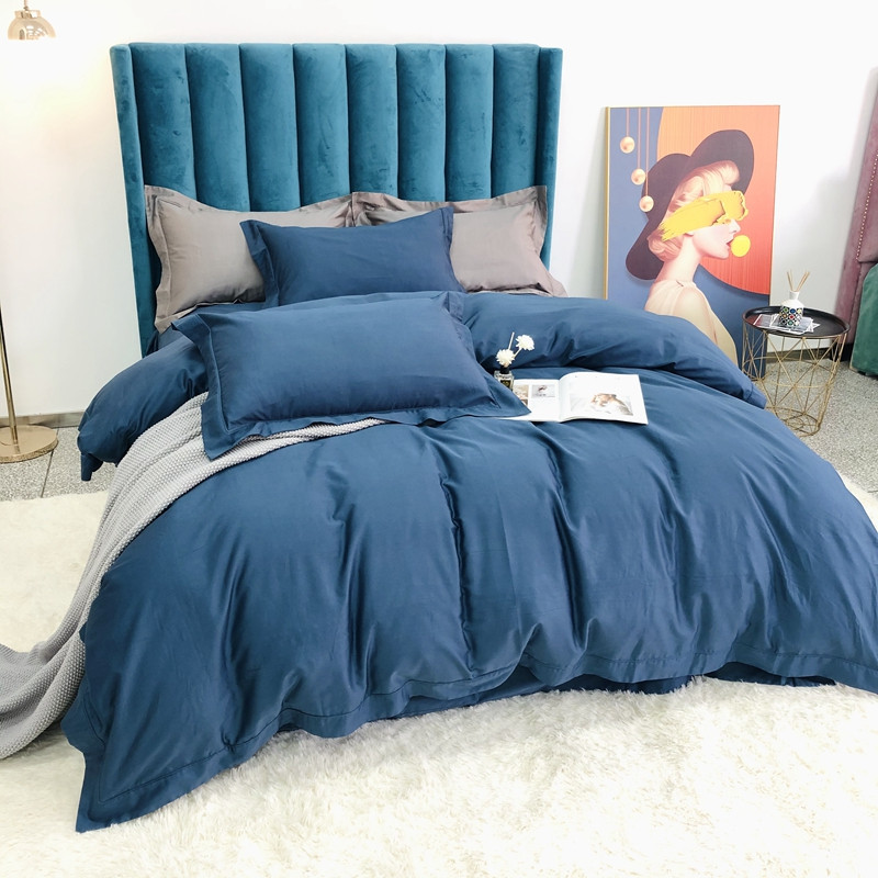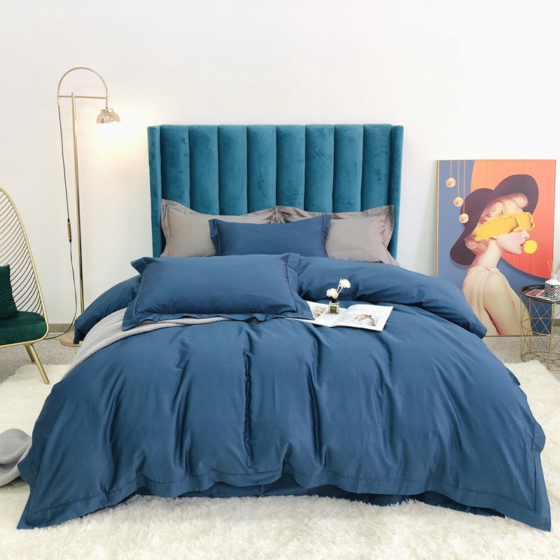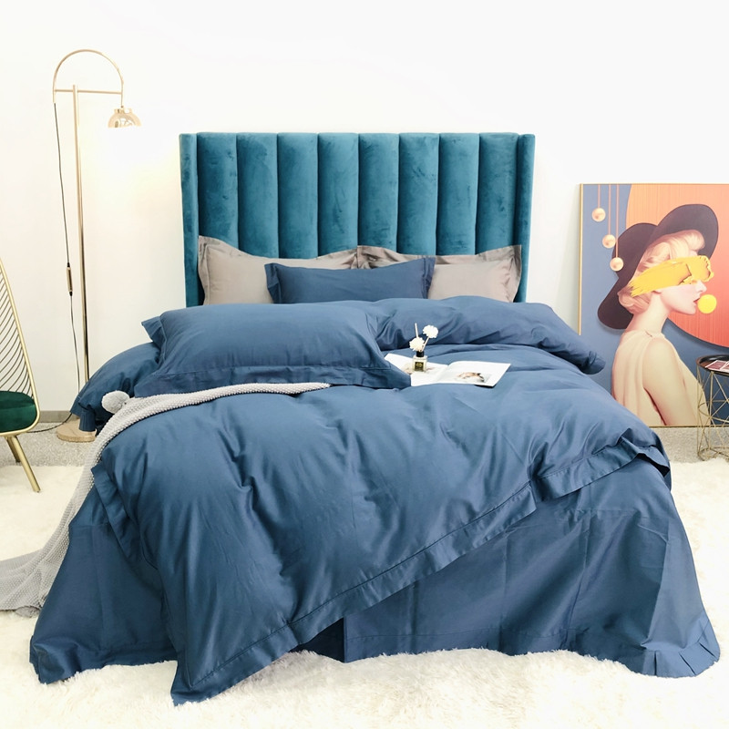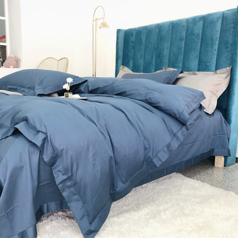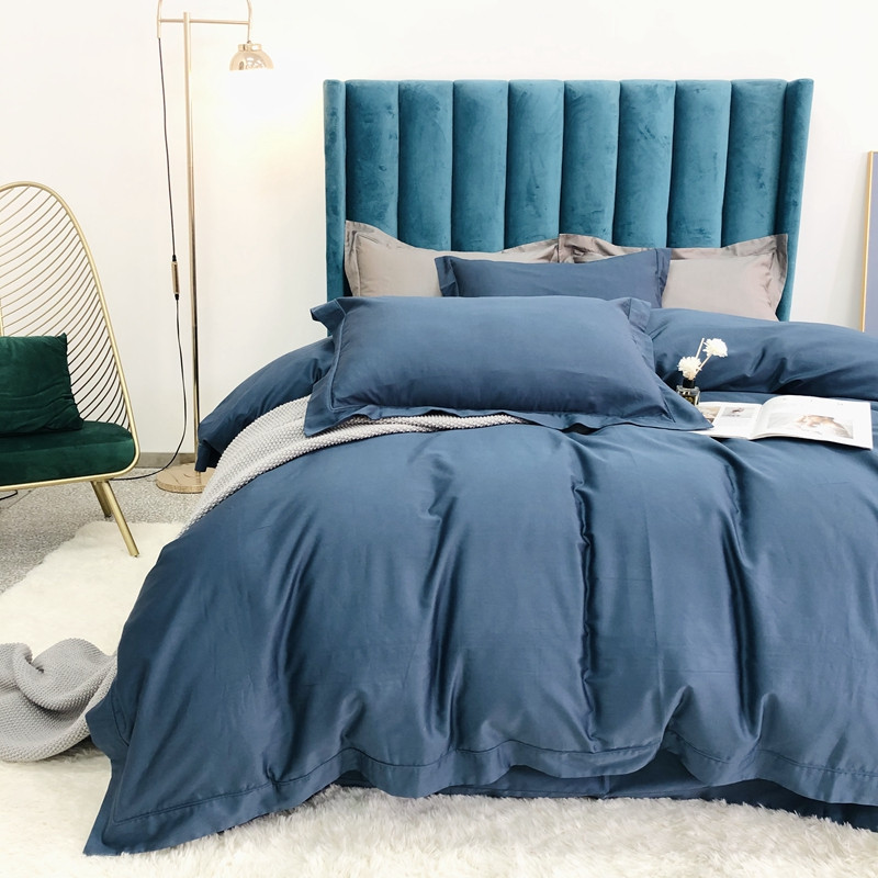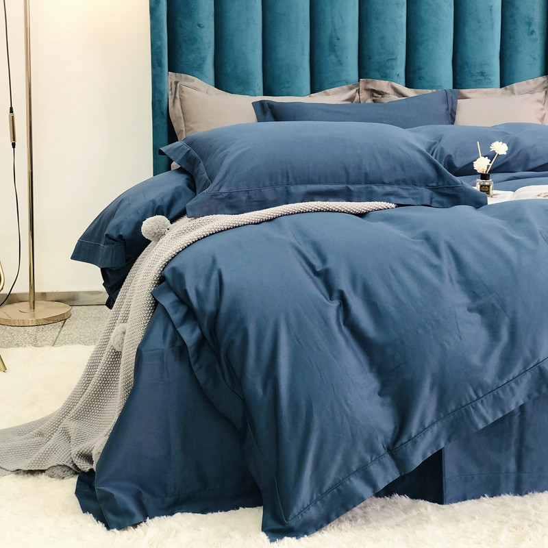 嘉悦2021新款50*50S双股长绒棉简约纯色埋绳四件套 雾霾蓝