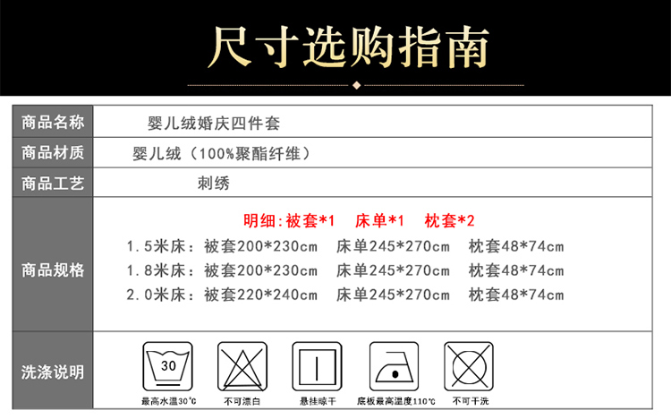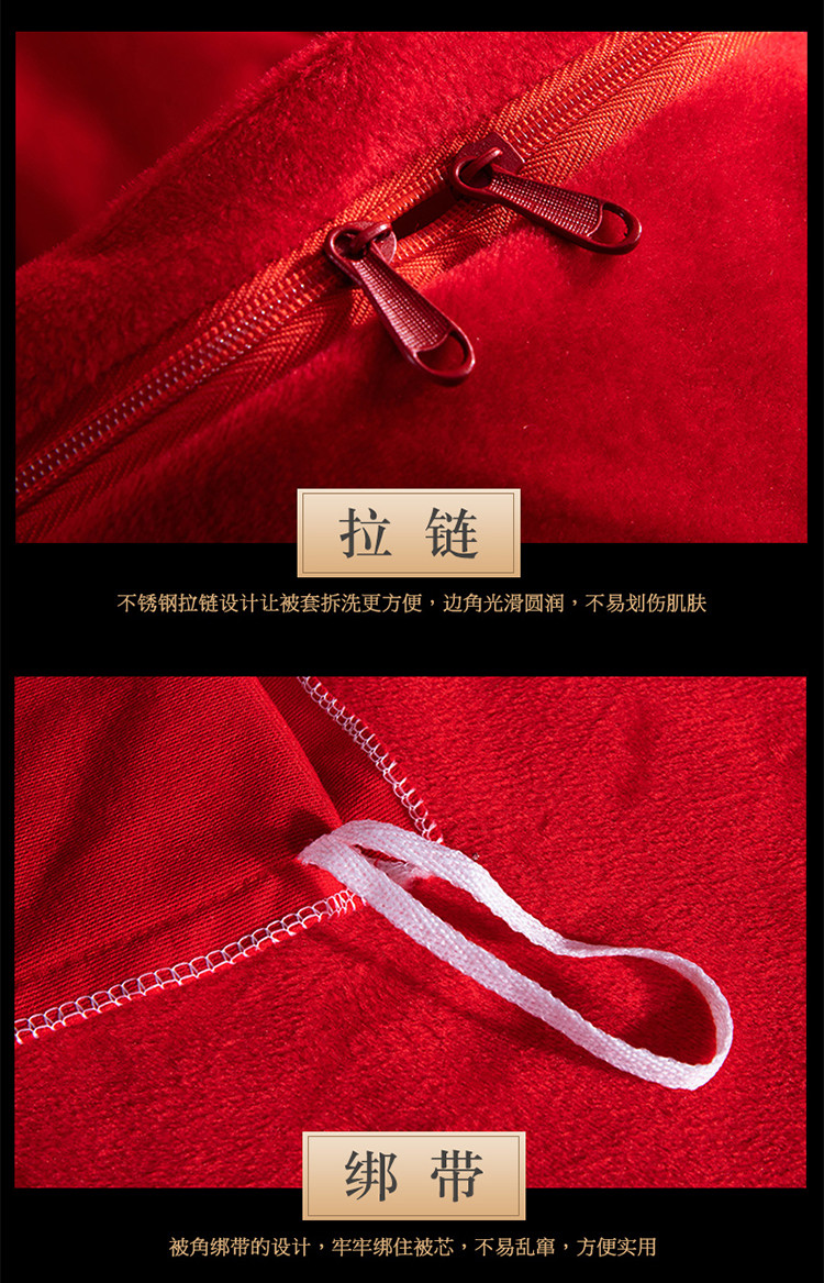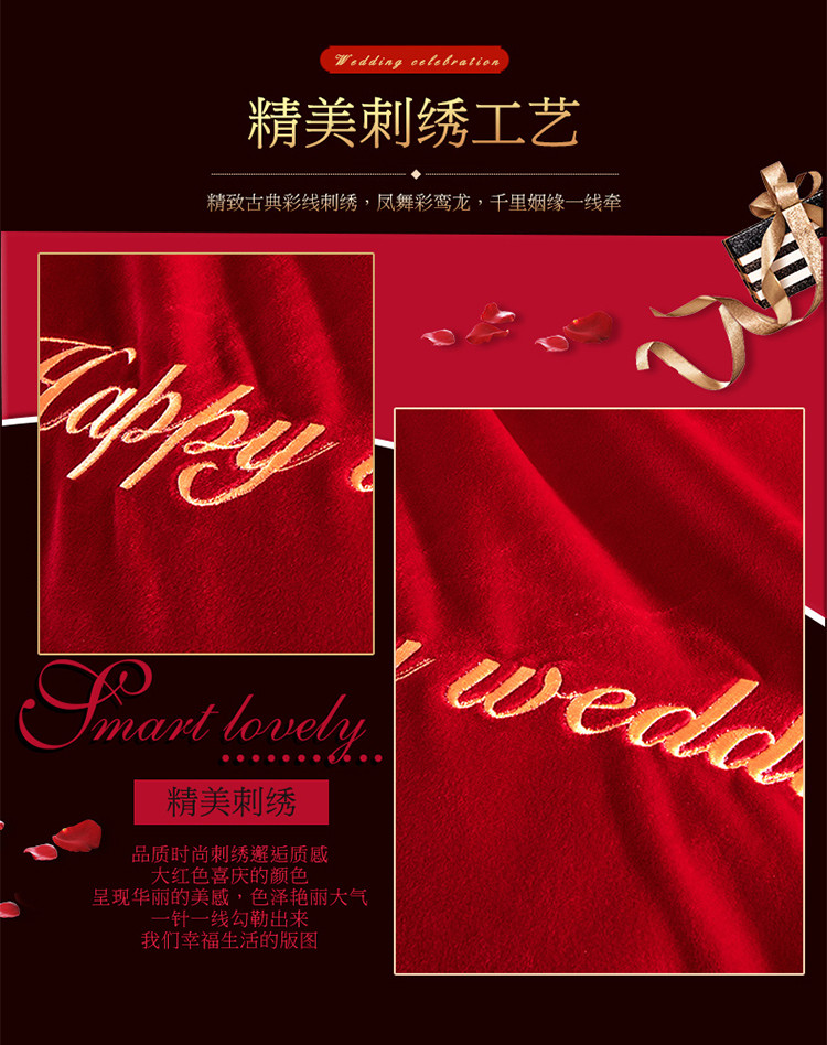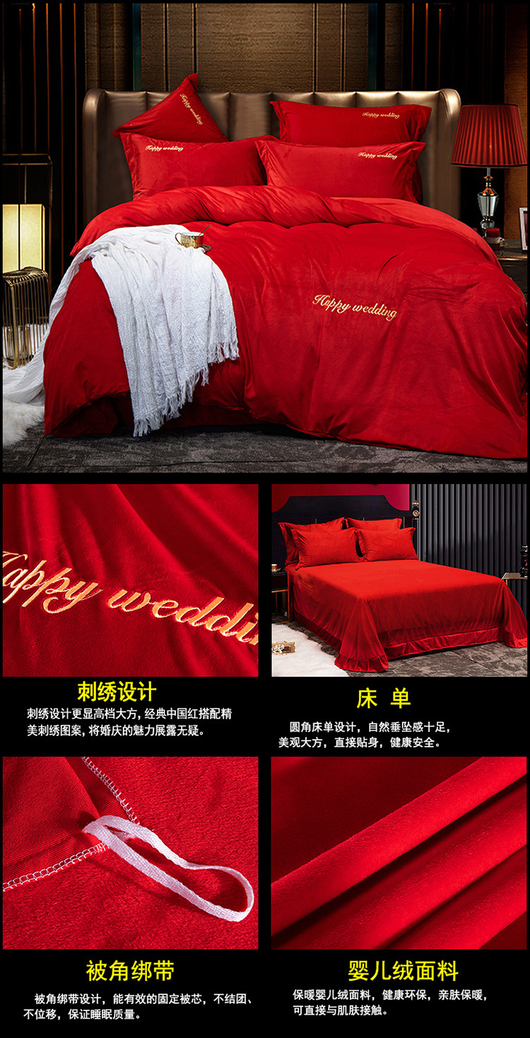 商品名称:慕她家纺 婴儿绒婚庆四件套大红色刺绣结婚水晶法兰绒牛奶绒 新婚快乐
