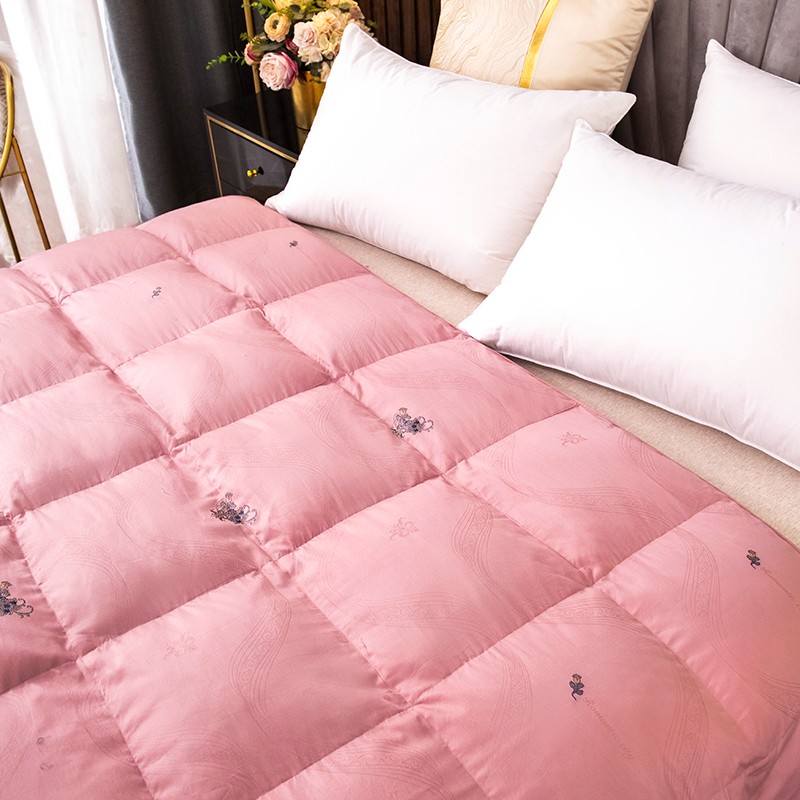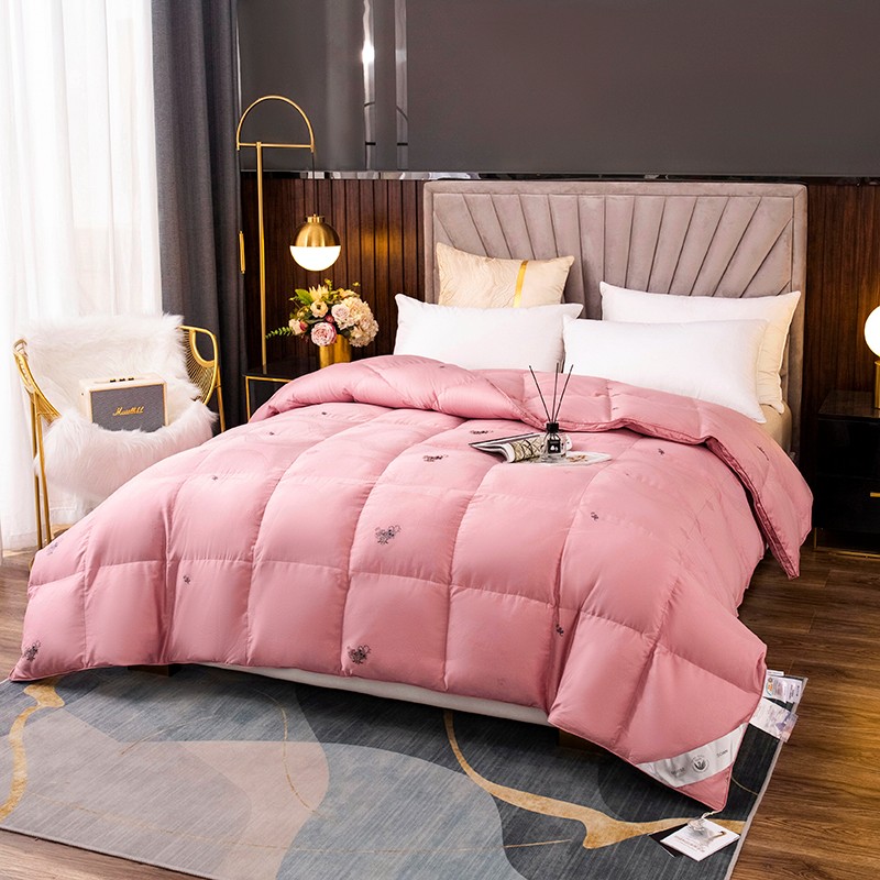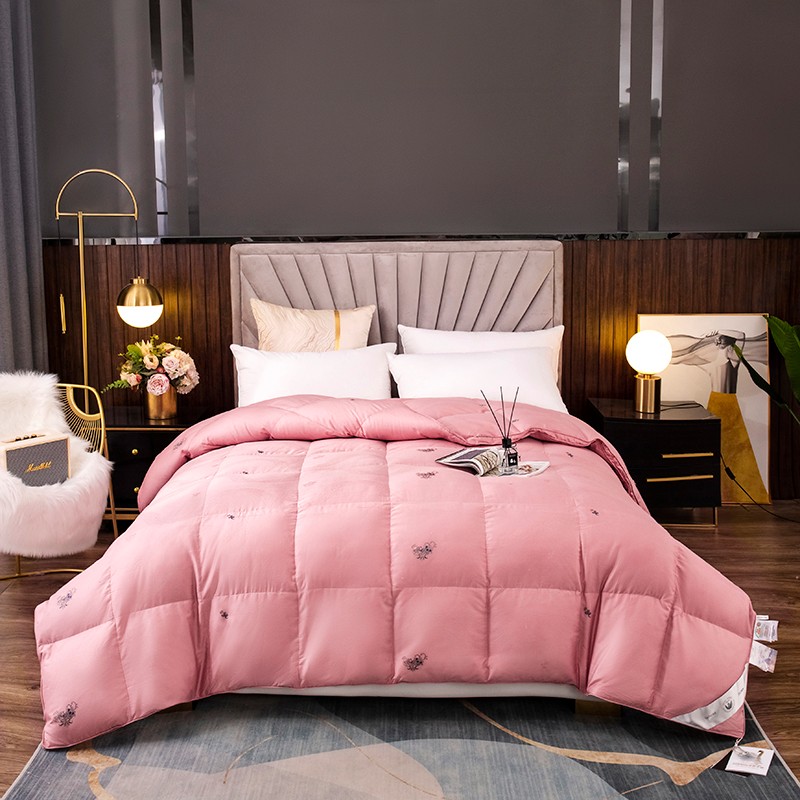 (总)俏企鹅 2025新款绣花款-100s贡缎全棉白鹅绒被,浅灰,粉咖,白色