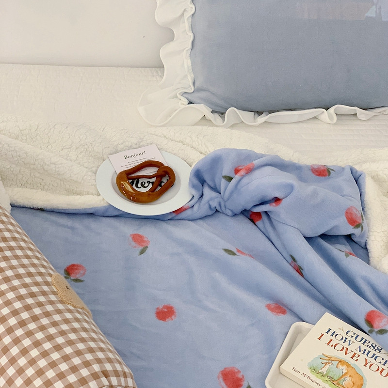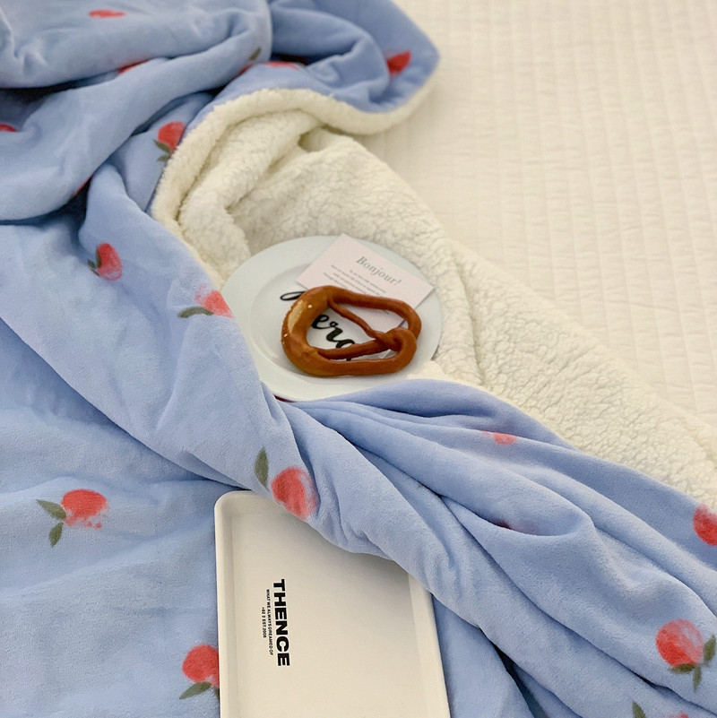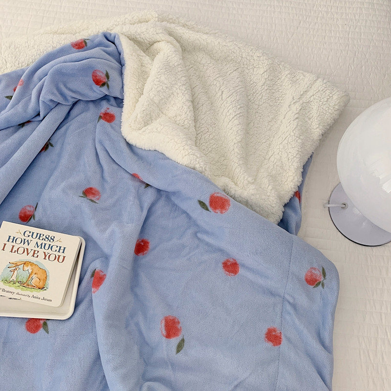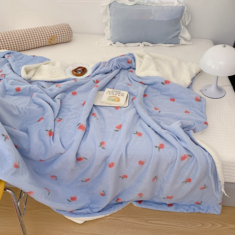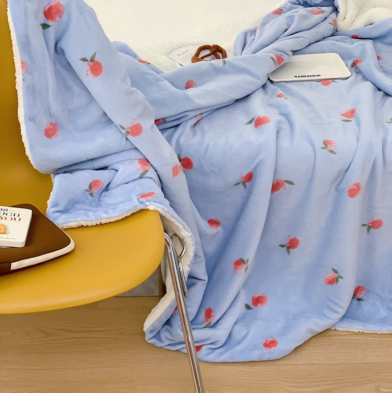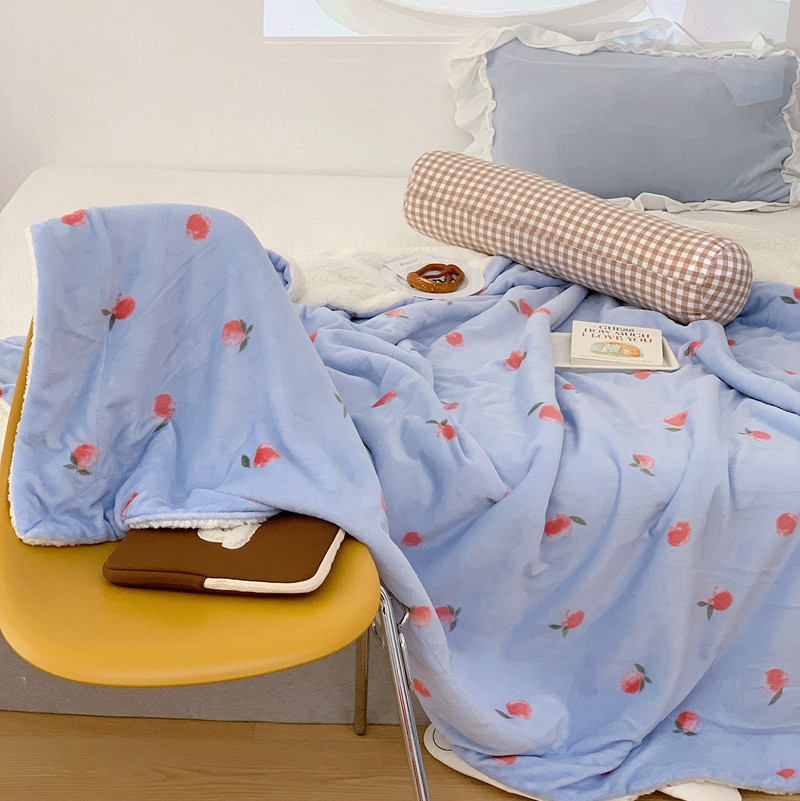昔可家纺 2021新款牛奶羊羔绒印花毛毯 元气小小桔蓝