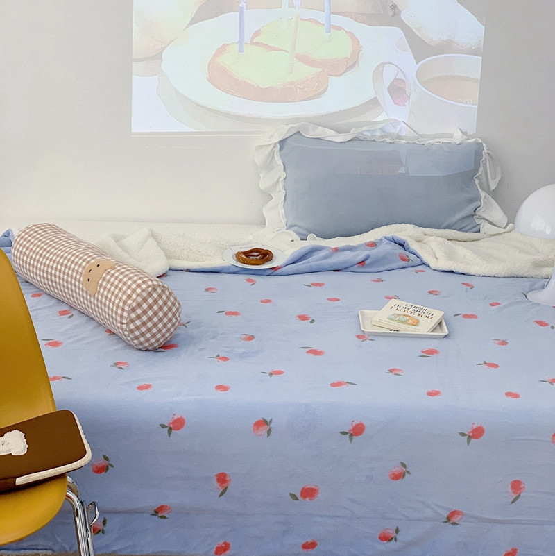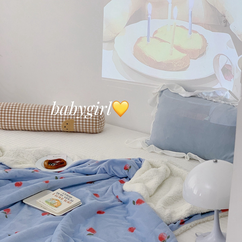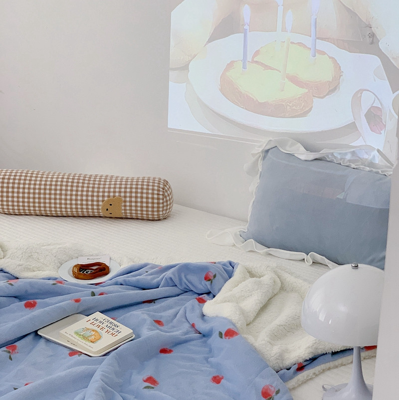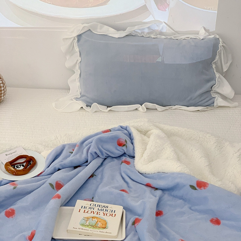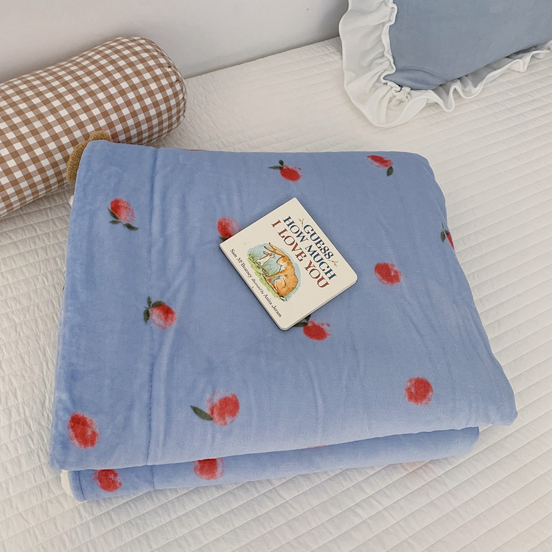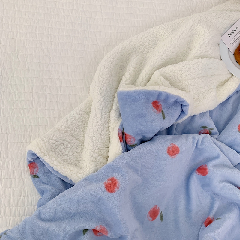 昔可家纺 2021新款牛奶羊羔绒印花毛毯 元气小小桔蓝