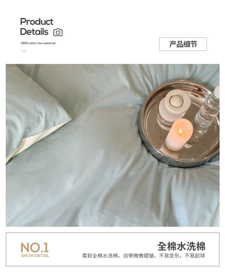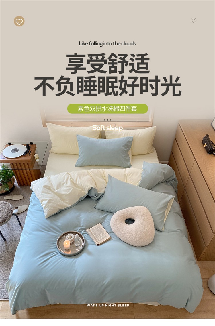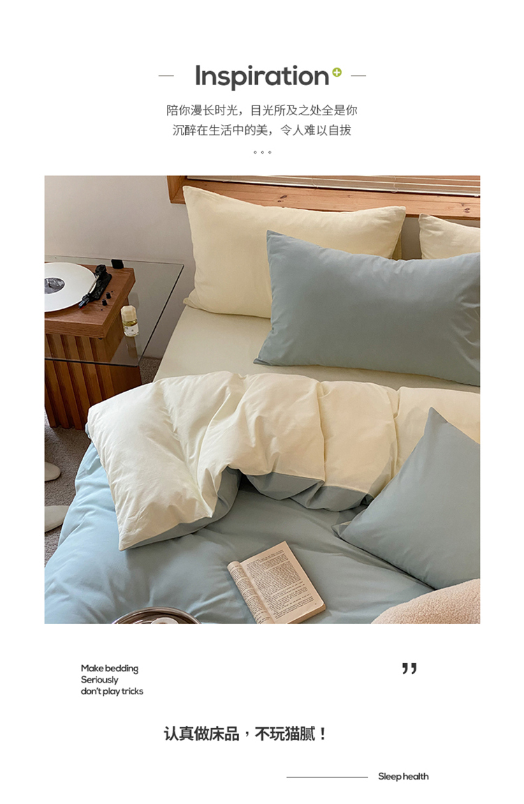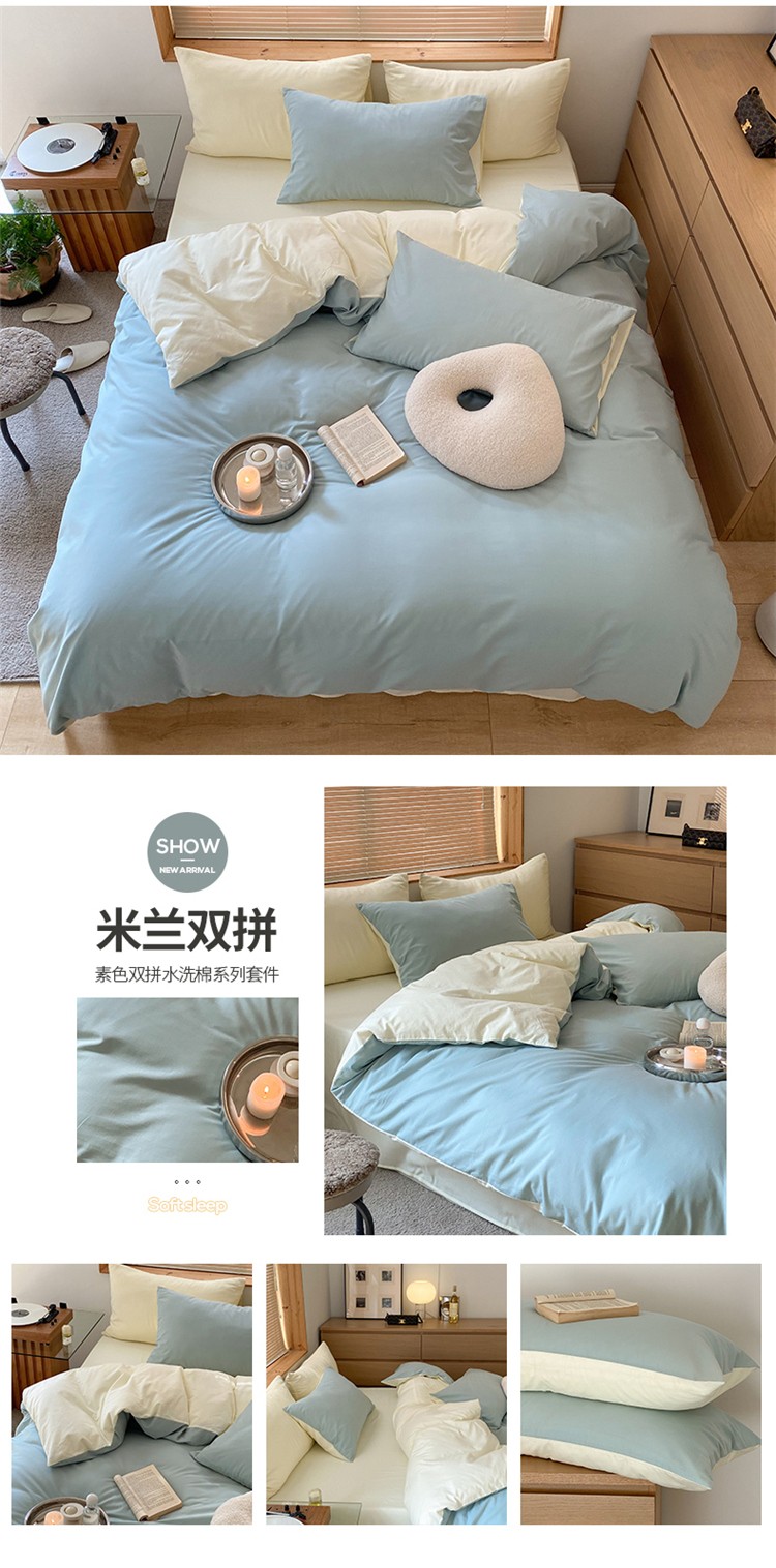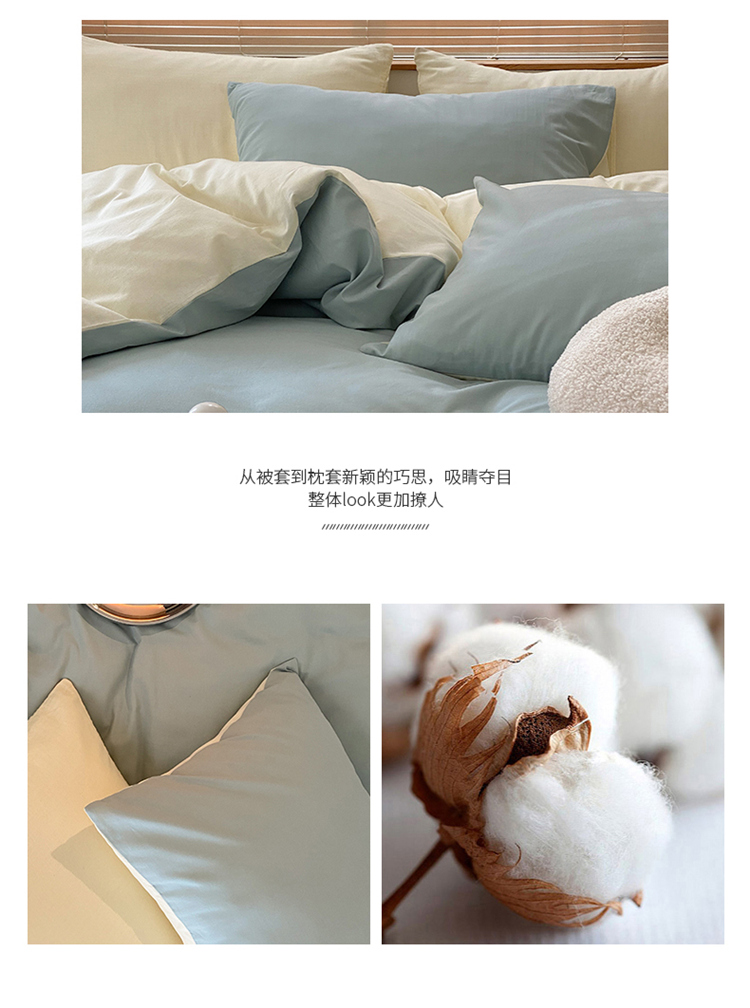 当前位置: 91家纺网 > 商品网购 > 床品套件 > 四件套 > 水洗棉四件套 > 窝米 2022春季新品素色双拼水洗棉系列四件套 米兰双拼