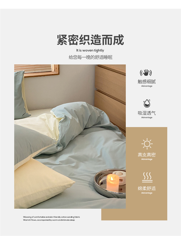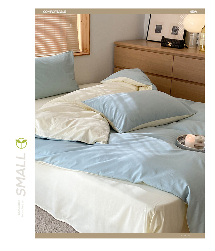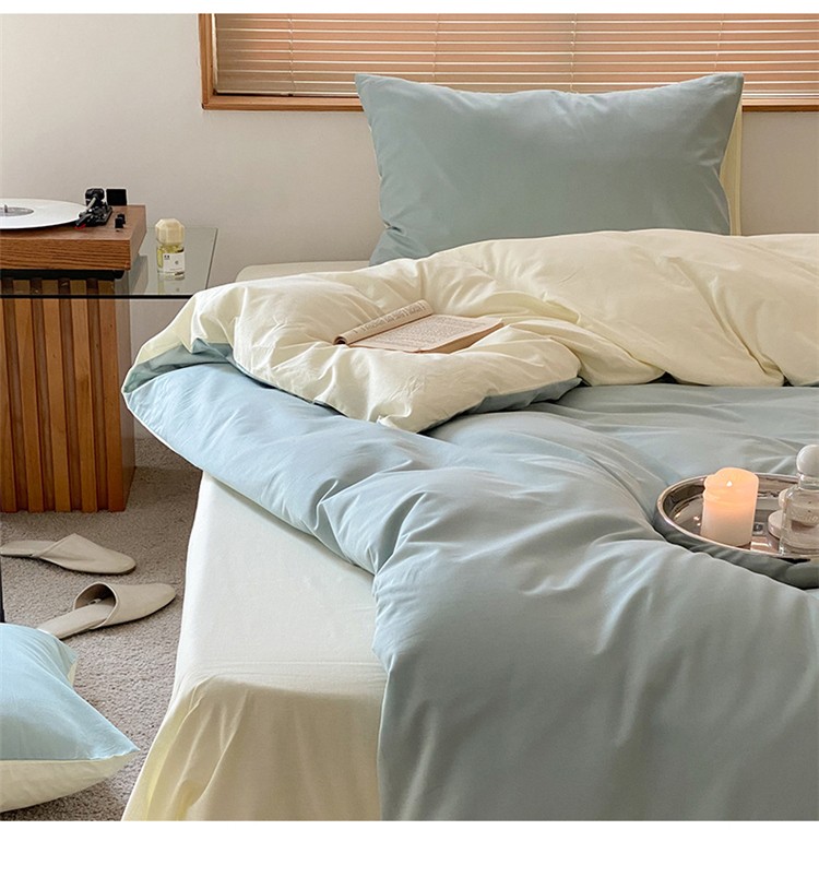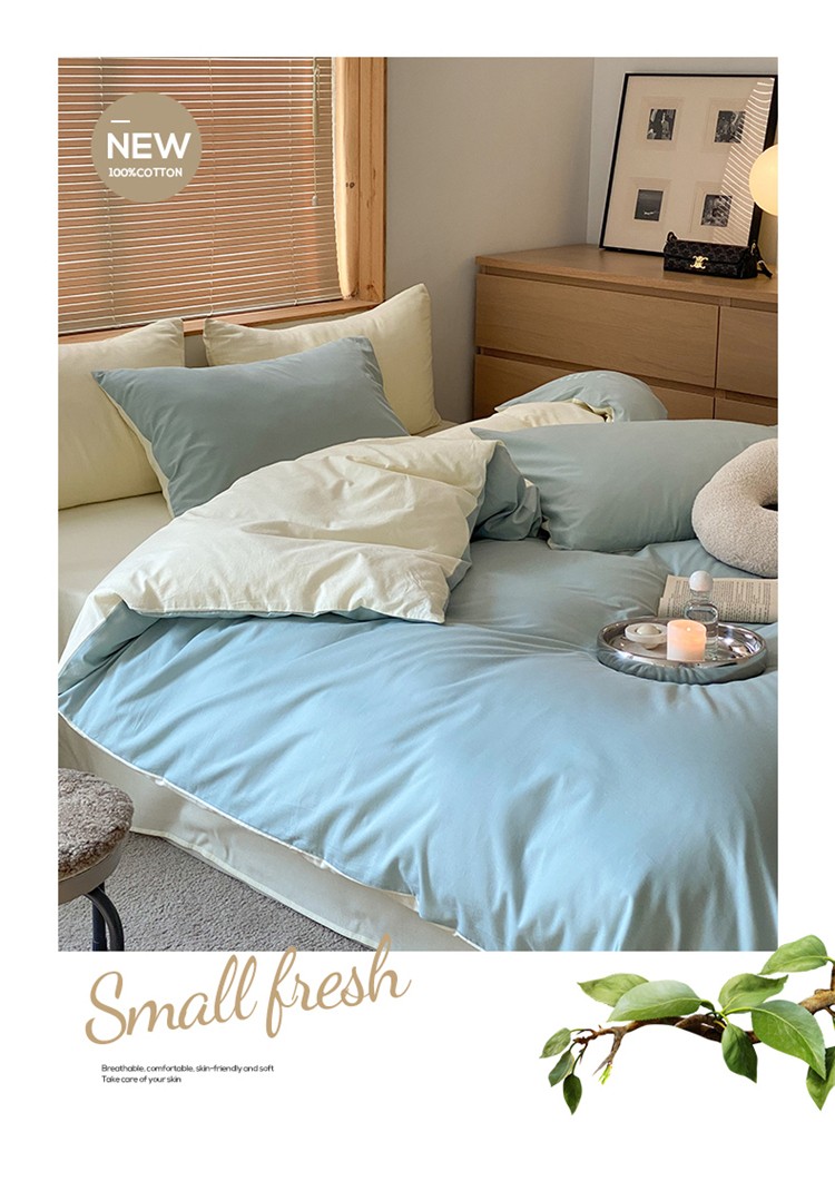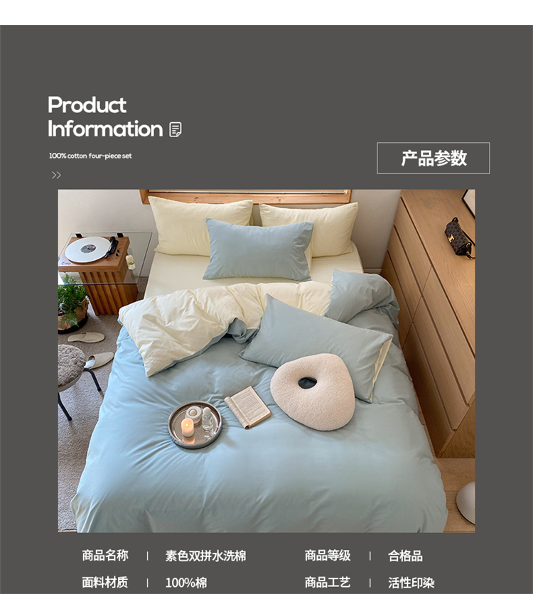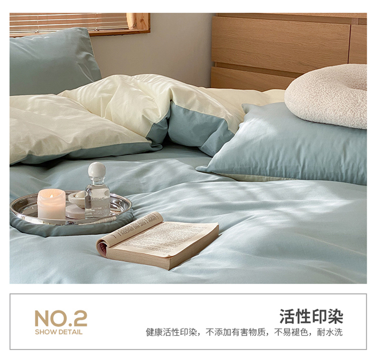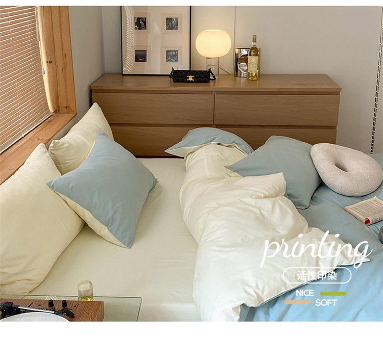 当前位置: 91家纺网 > 商品网购 > 床品套件 > 四件套 > 水洗棉四件套 > 窝米 2022春季新品素色双拼水洗棉系列四件套 米兰双拼