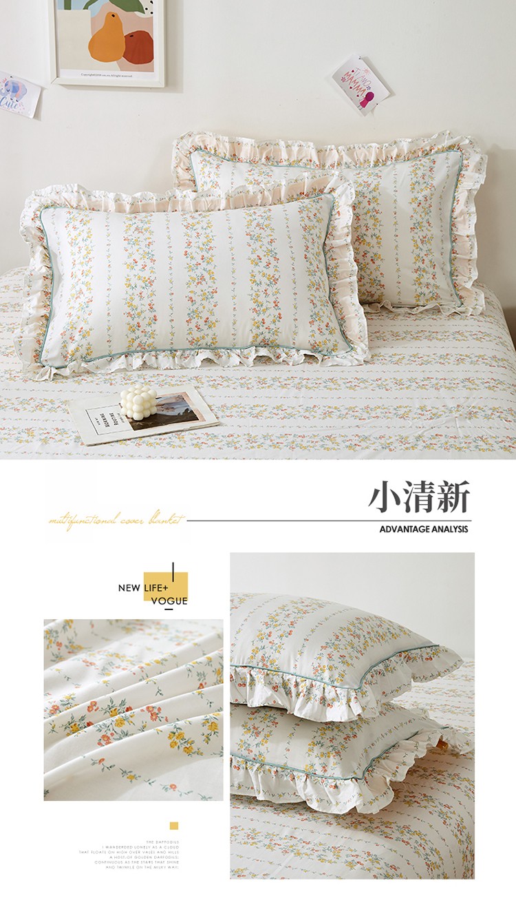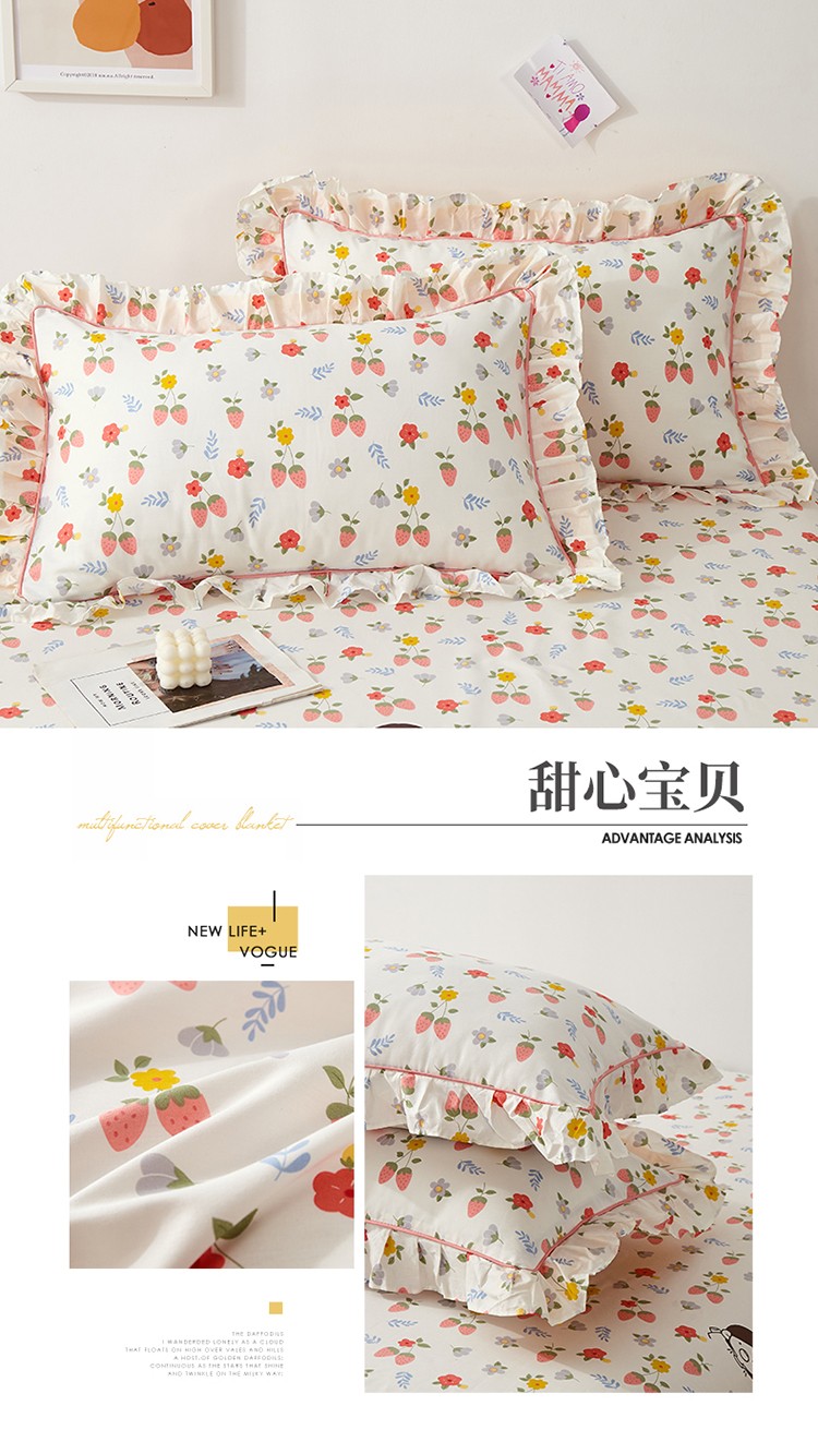(总)宝齐莱 2022新款13372韩版全棉印花枕套