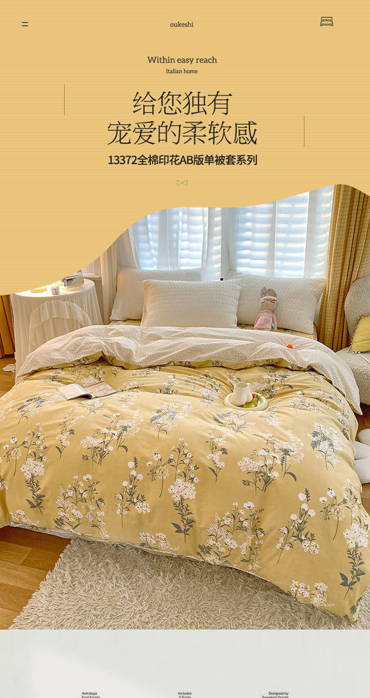 商品名称:宝齐莱 2022新款13372全棉印花单被套 半暖时光