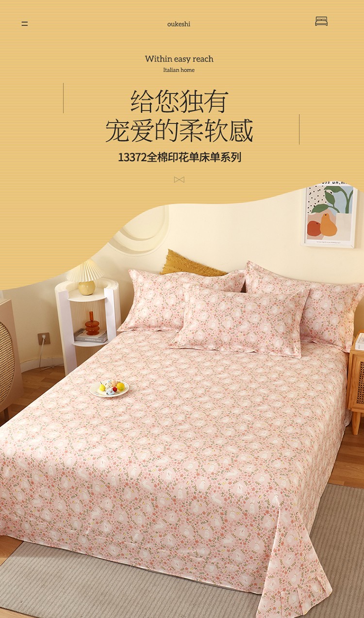 商品名称:宝齐莱 2022新款13372全棉印花单床单 恋语