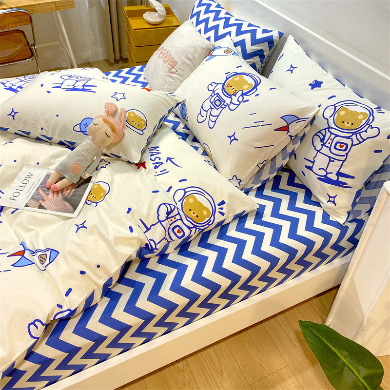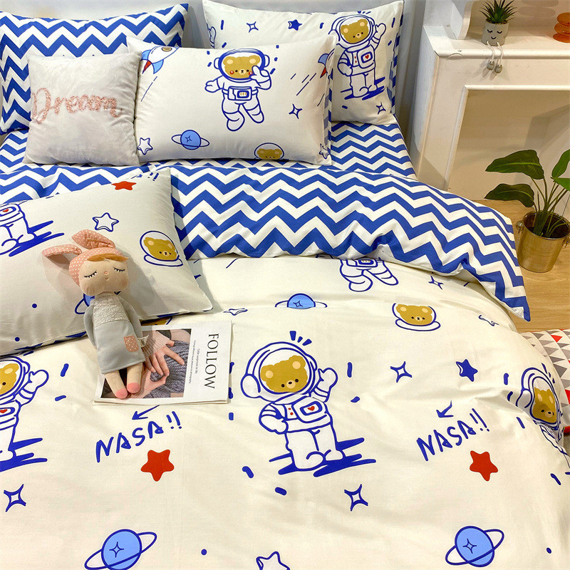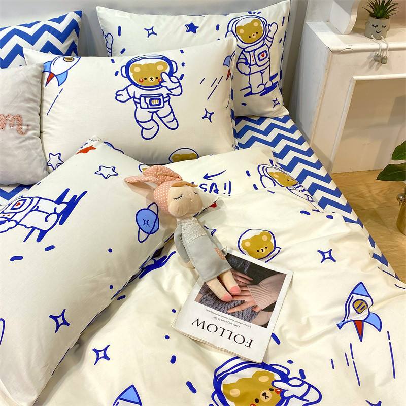 (总)名兮 2023新款全棉印花卡通风四件套,抱抱熊,波波熊,菲菲兔,机器小新,可爱萌宠,可爱兔