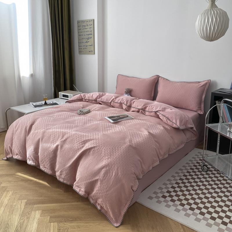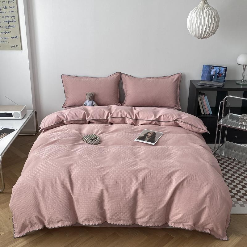 商品名称:金丝鸟 2023新款A类60支全棉水洗棉华夫格系列四件套 拉夫格 粉