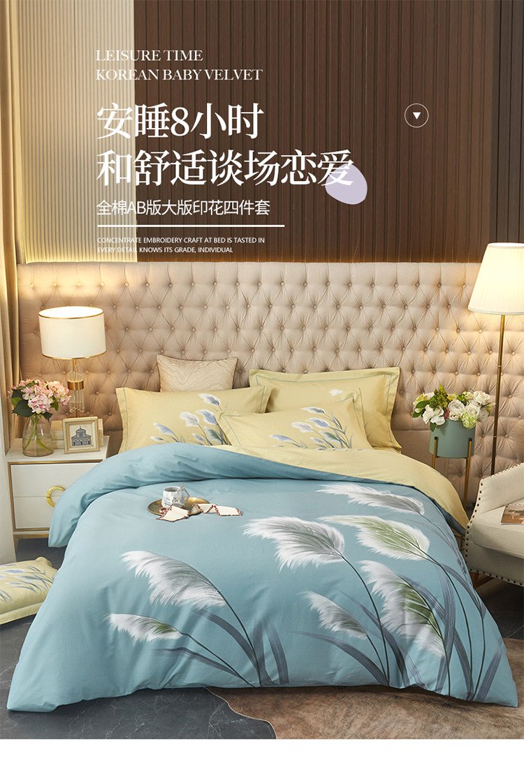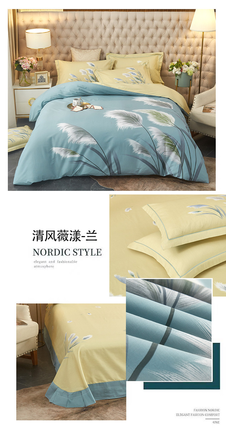 商品名称:金纱玉纺2022新款全棉大版印花13372四件套清风薇漾-兰