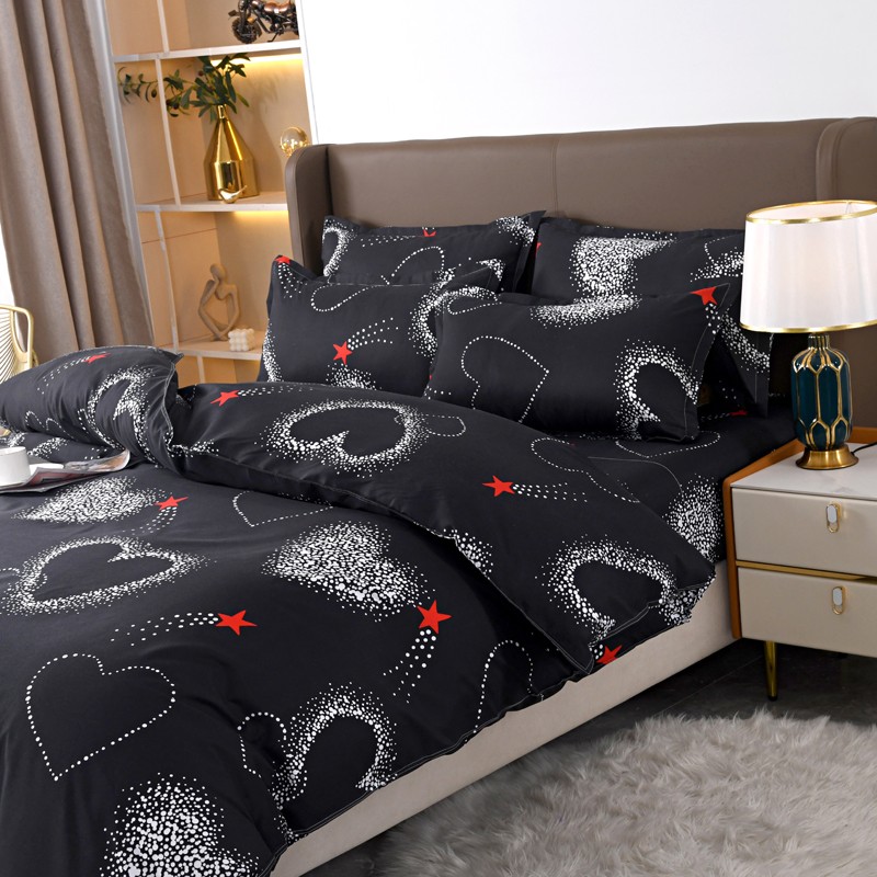 梵巢家纺 芦荟棉三四件套,床单,被套,枕套化纤四件套心心念念,心心念念