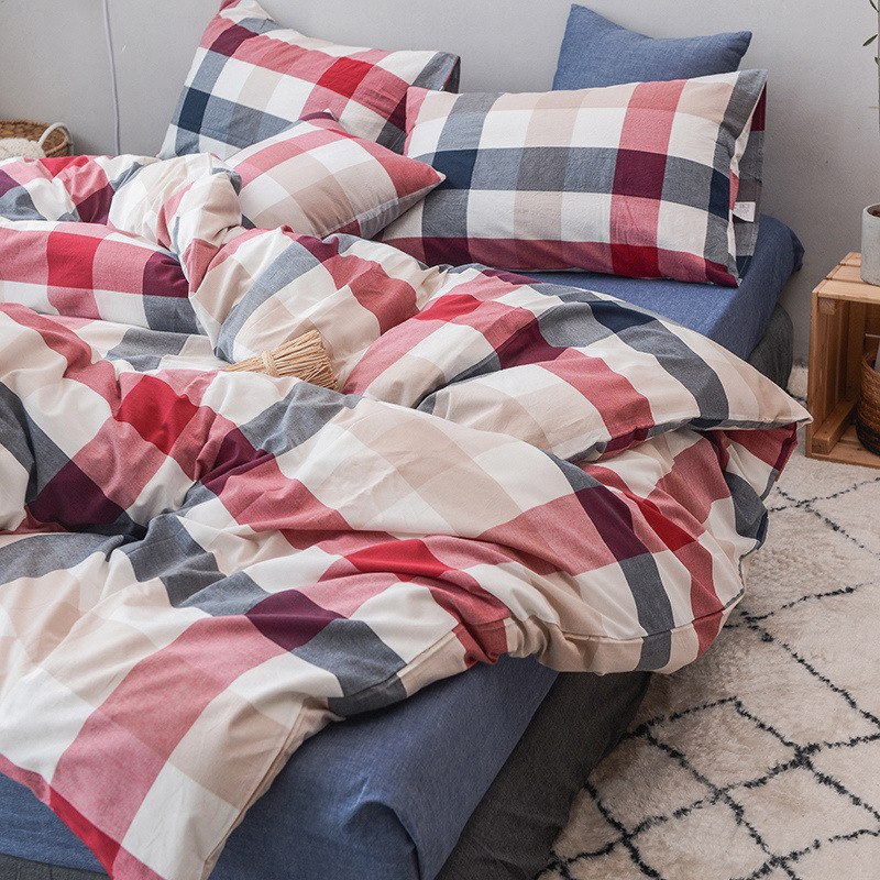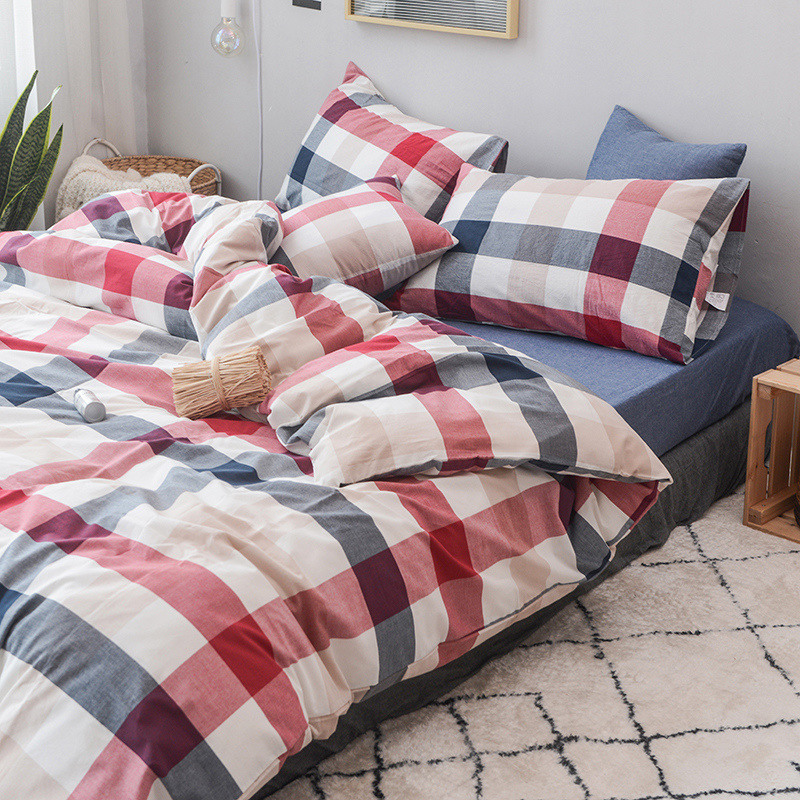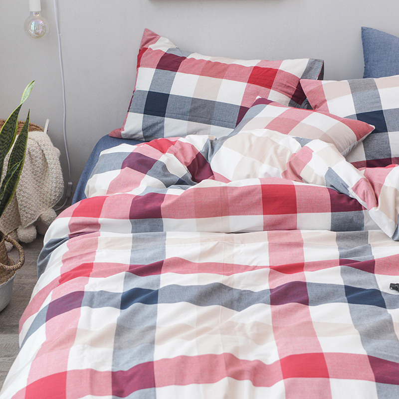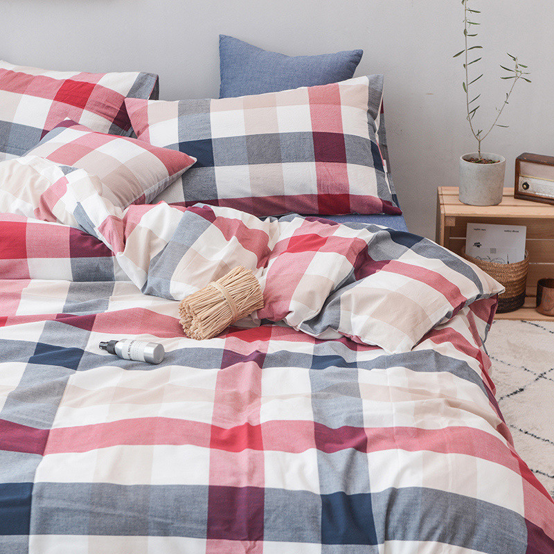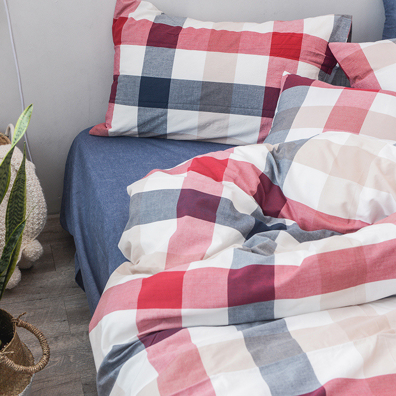当前位置: 91家纺网 > 商品网购 > 床品套件 > 四件套 > 水洗棉四件套 > 柠萌家居 2022新款无印良品全棉色织水洗棉四件套 蓝红中格