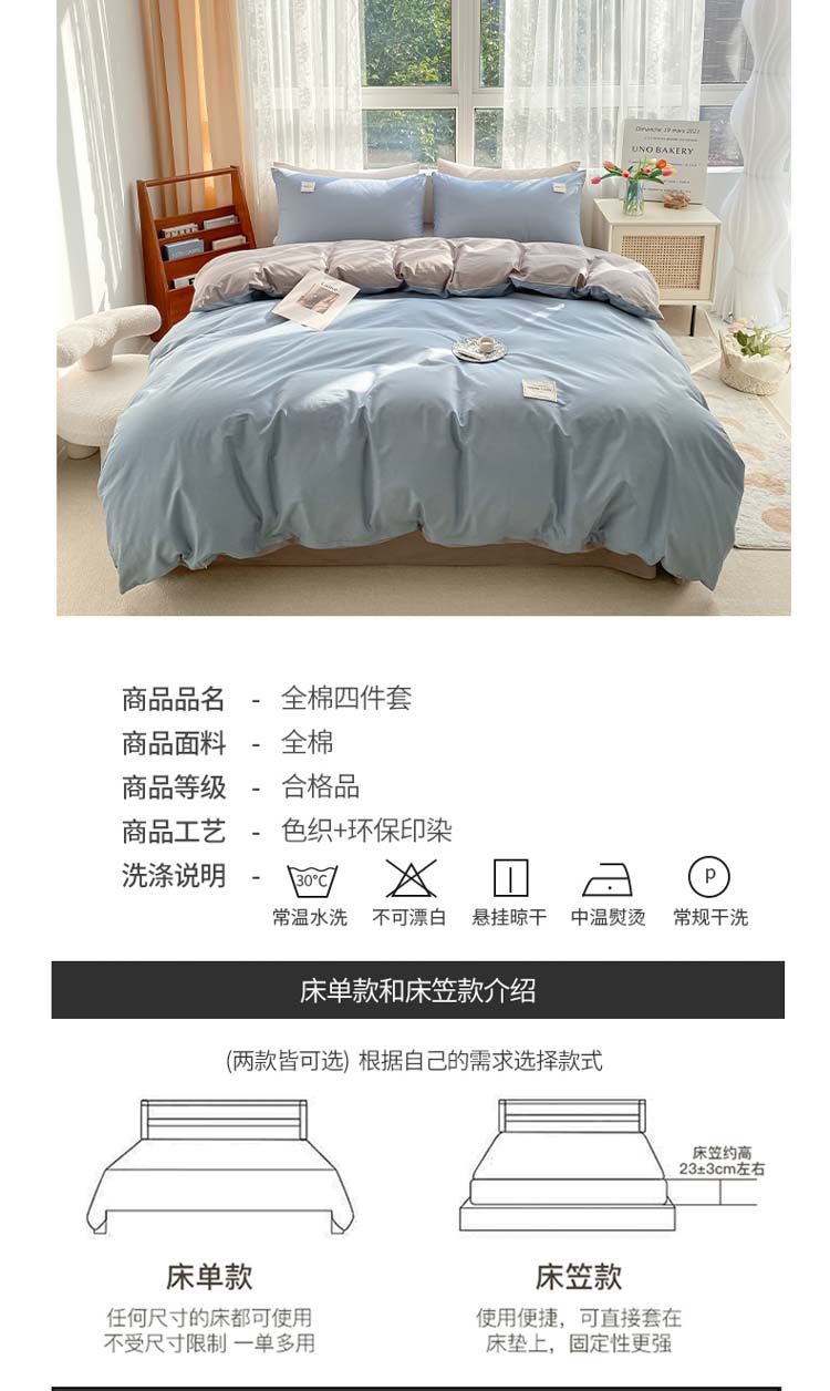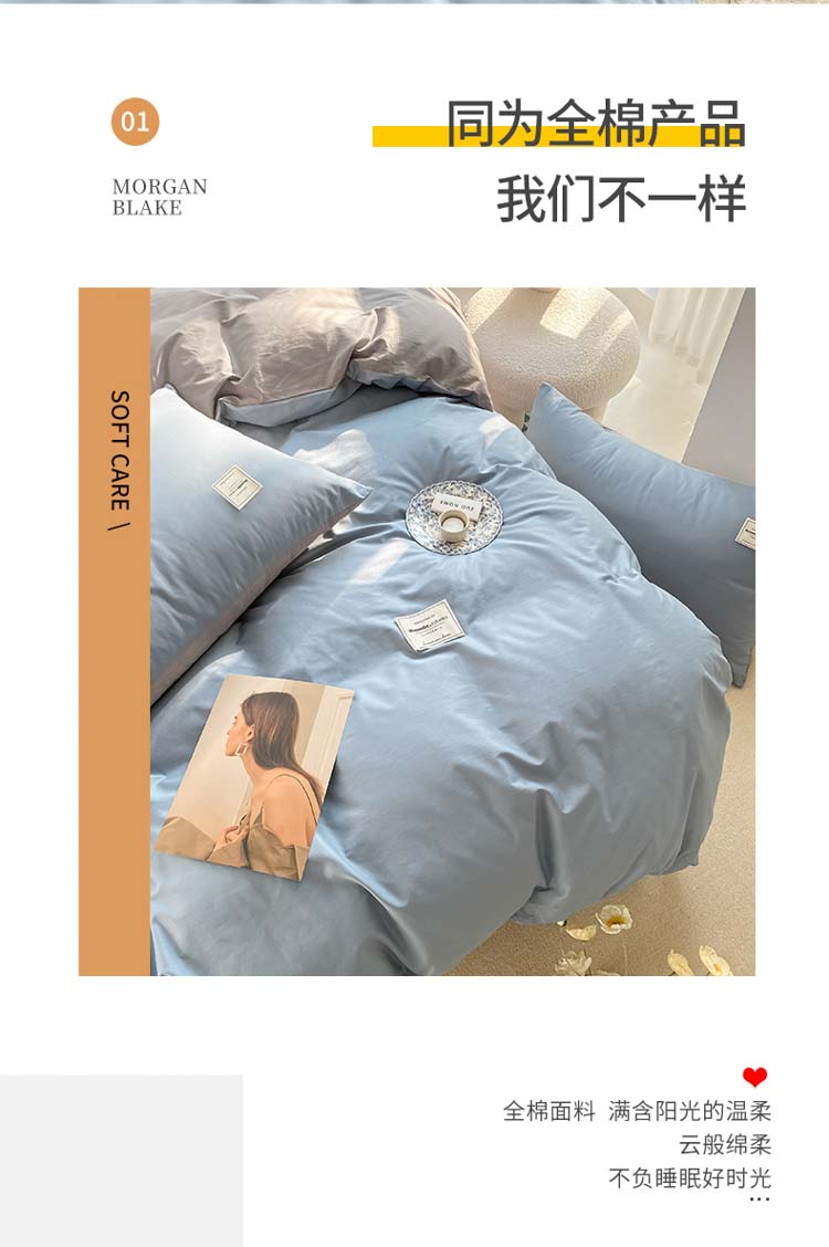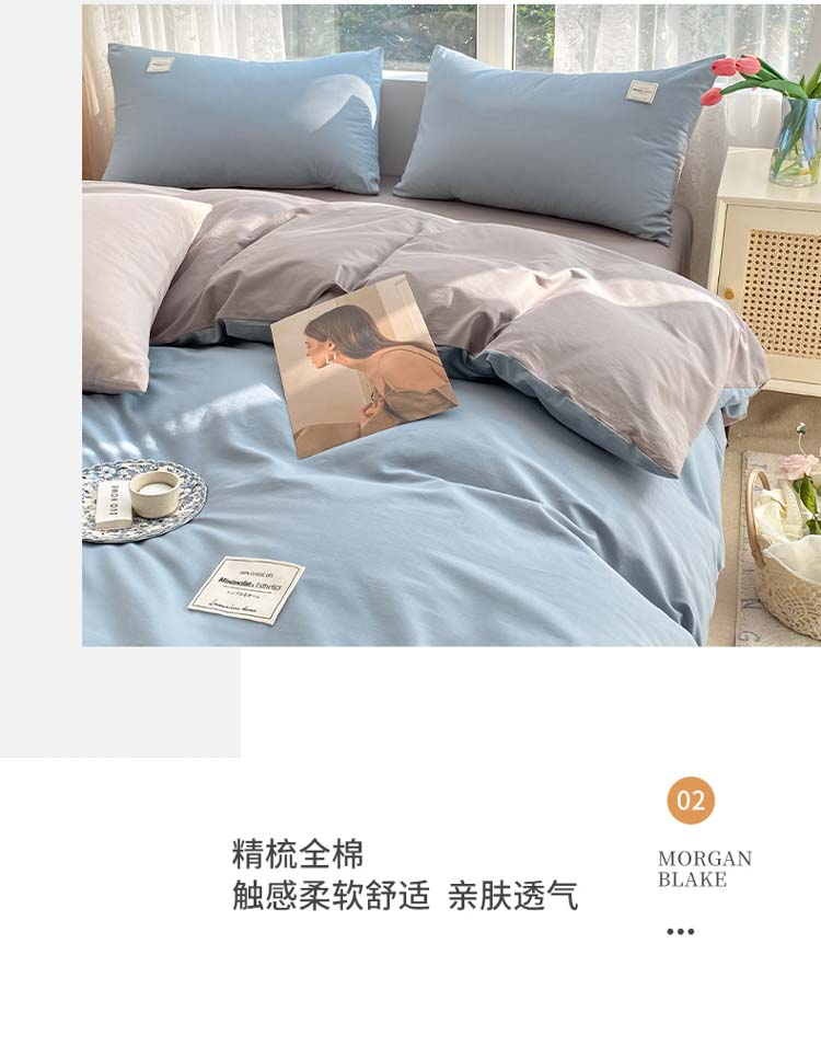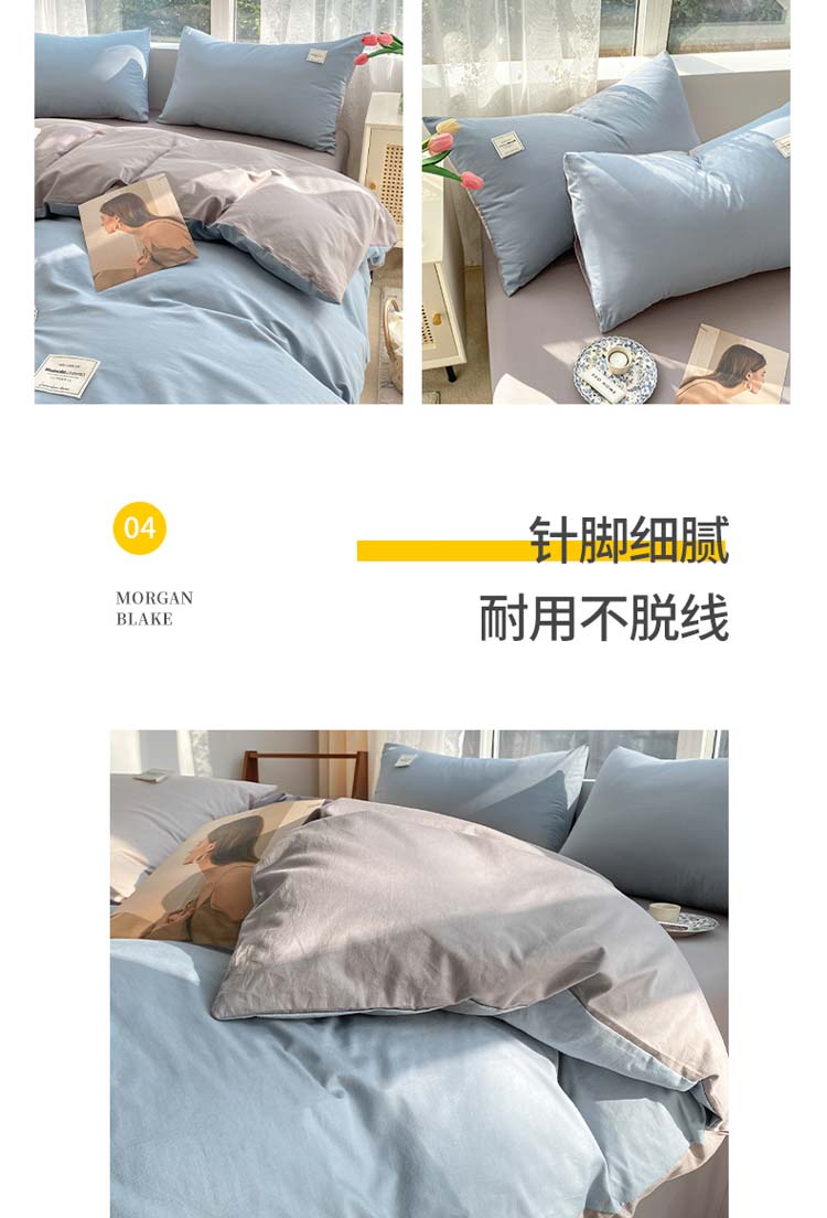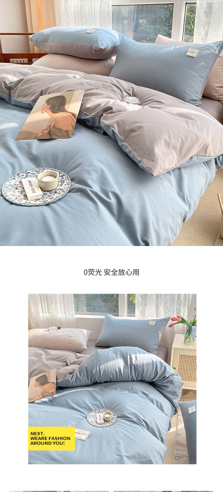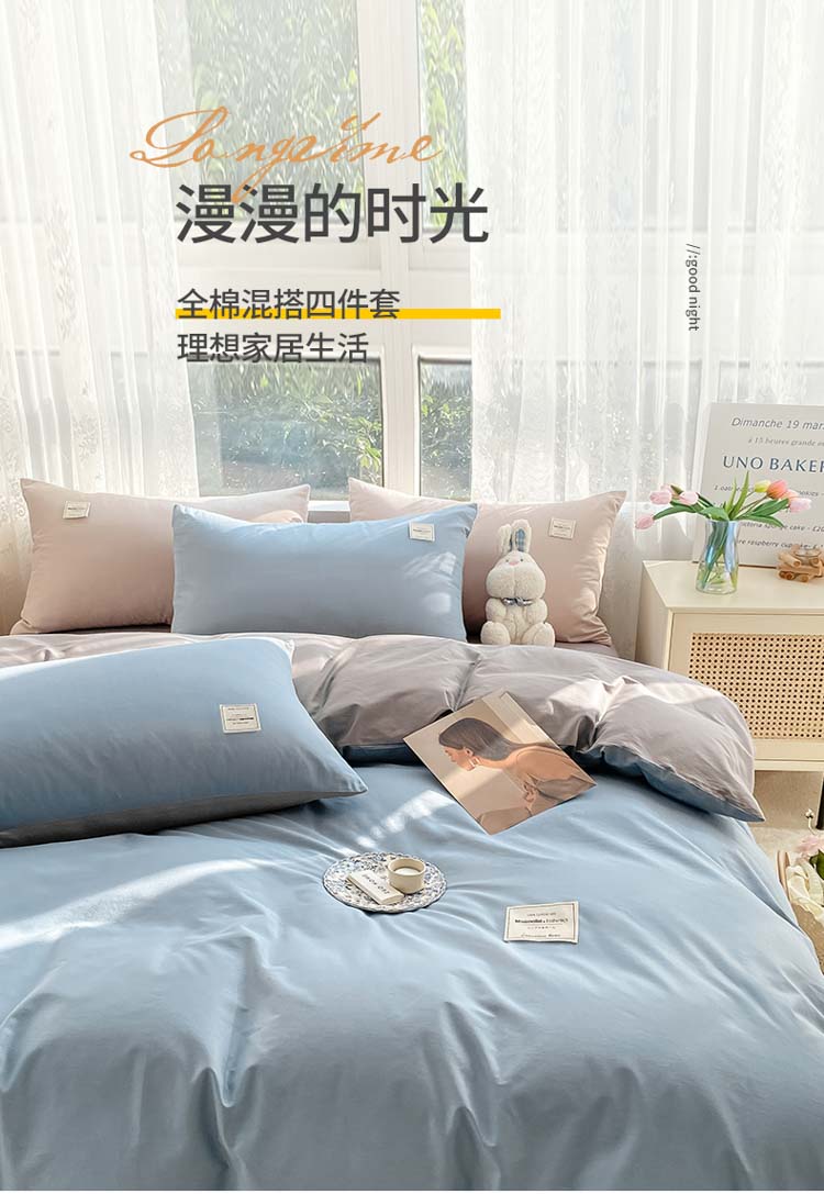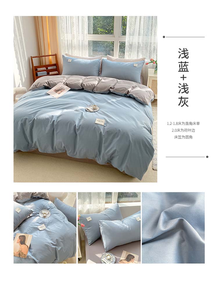 商品名称:秀色2025新款小清新40支水洗全棉纯色双拼四件套ins风 浅蓝+浅灰