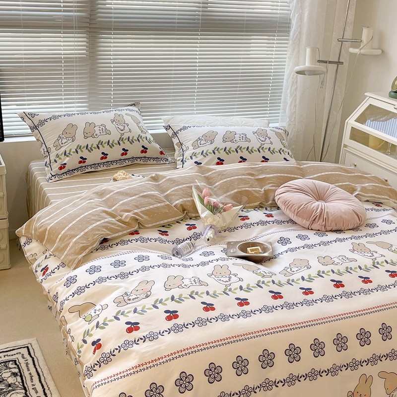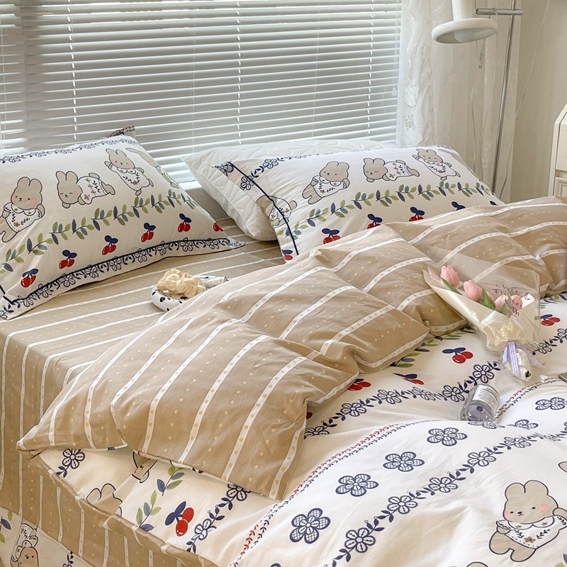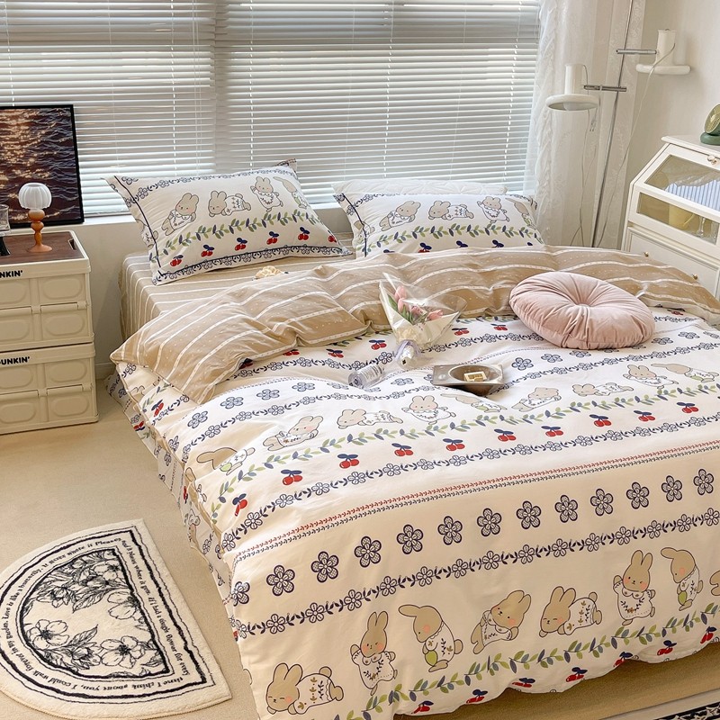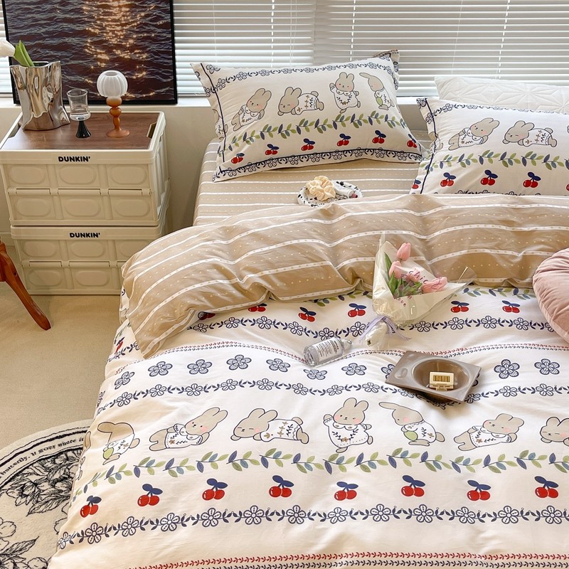 (总)昔可 2023新款学生季卡通普通款四件套,彩色气球熊,彩条恐龙,憨憨熊,花蜜小兔,蘑菇兔,圈圈草莓,蔬菜小兔,郁金香小萌狗