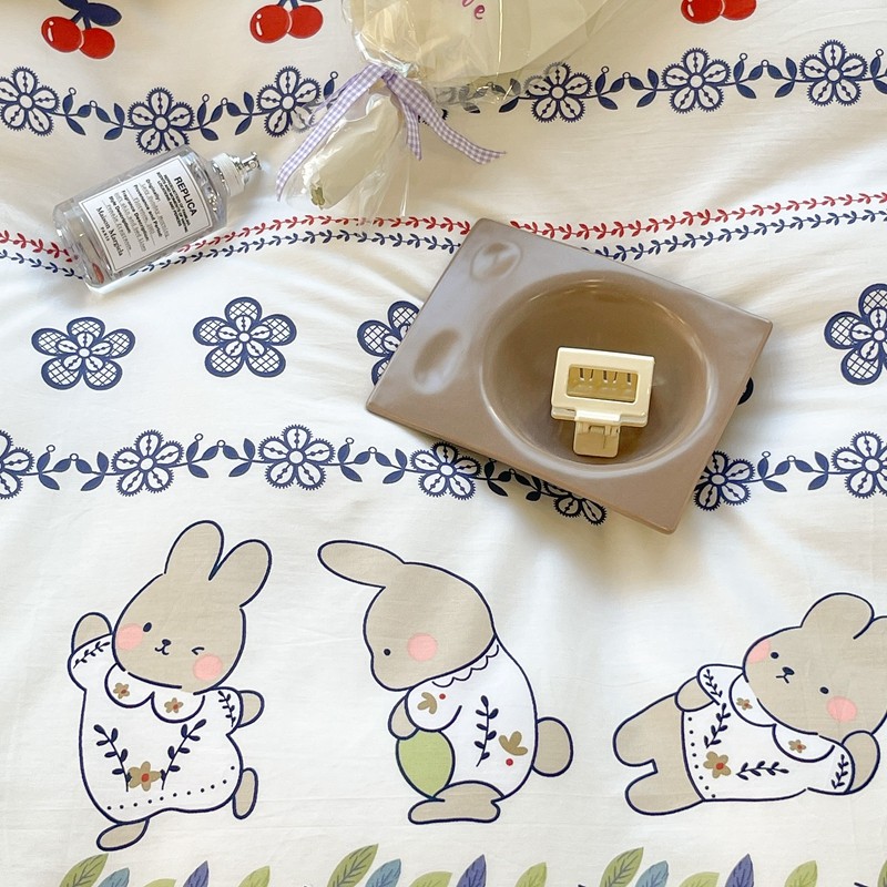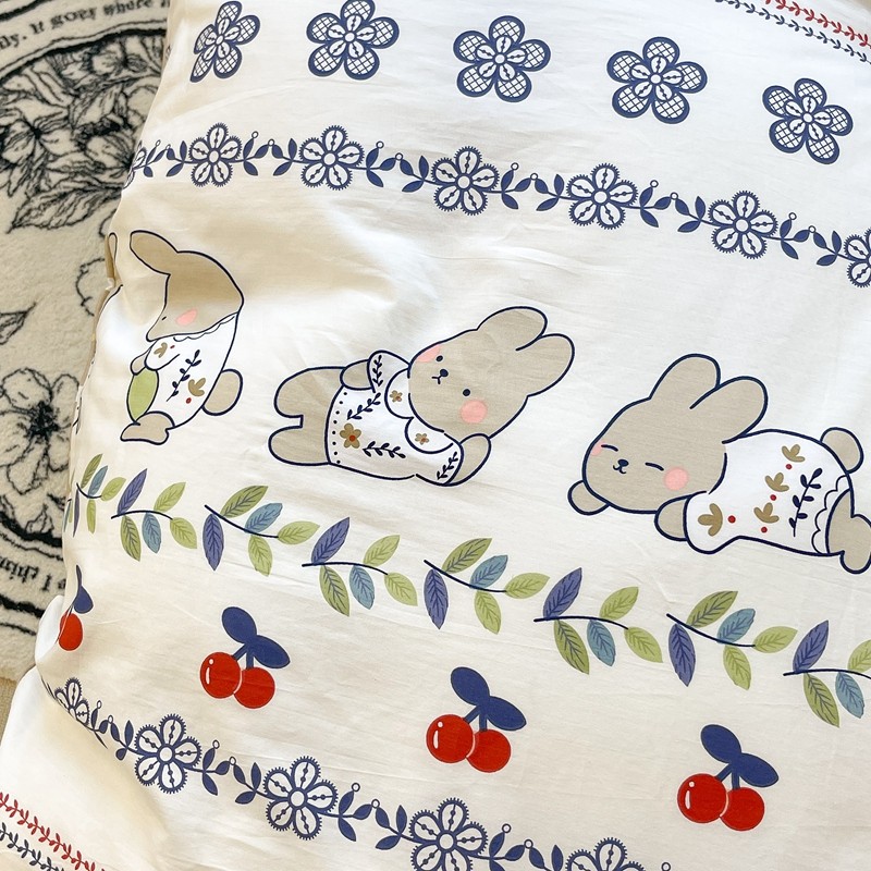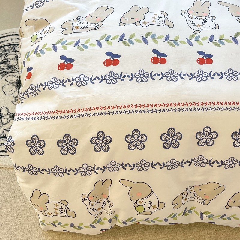 商品名称:昔可家纺 2022新款13070工艺款全棉四件套 蓝花兔