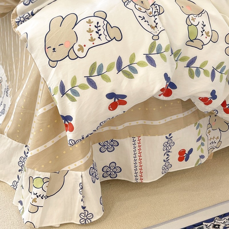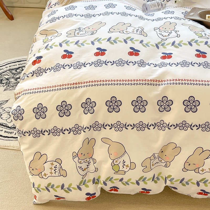 昔可家纺 2022新款13070工艺款全棉四件套 蓝花兔