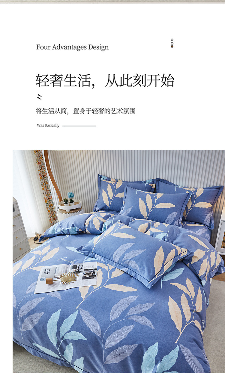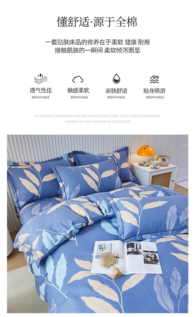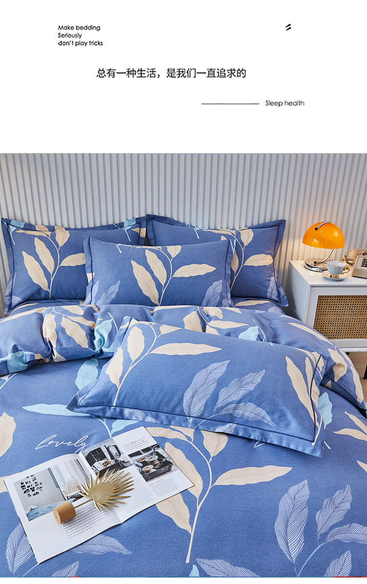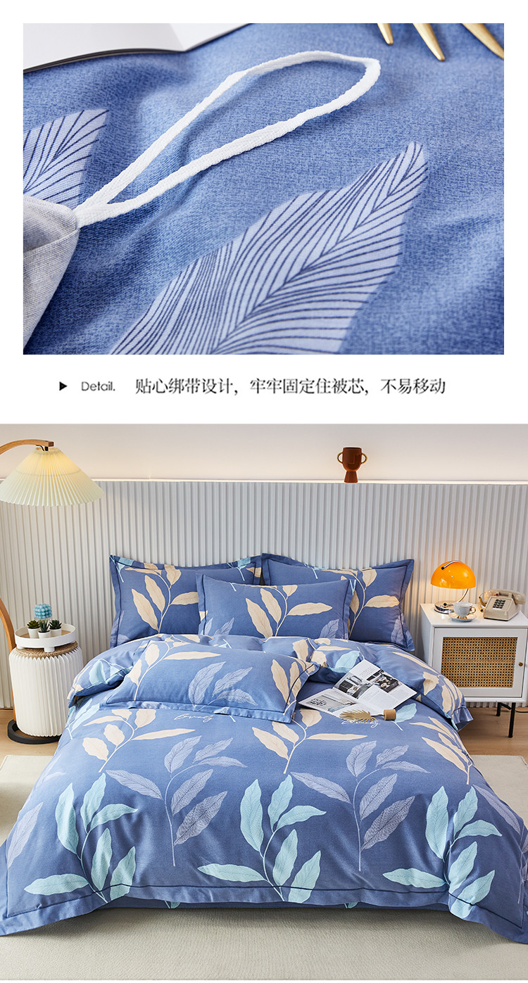 商品名称:杜先生 2023新款全棉加厚磨毛系列四件套 叶叶相随-蓝