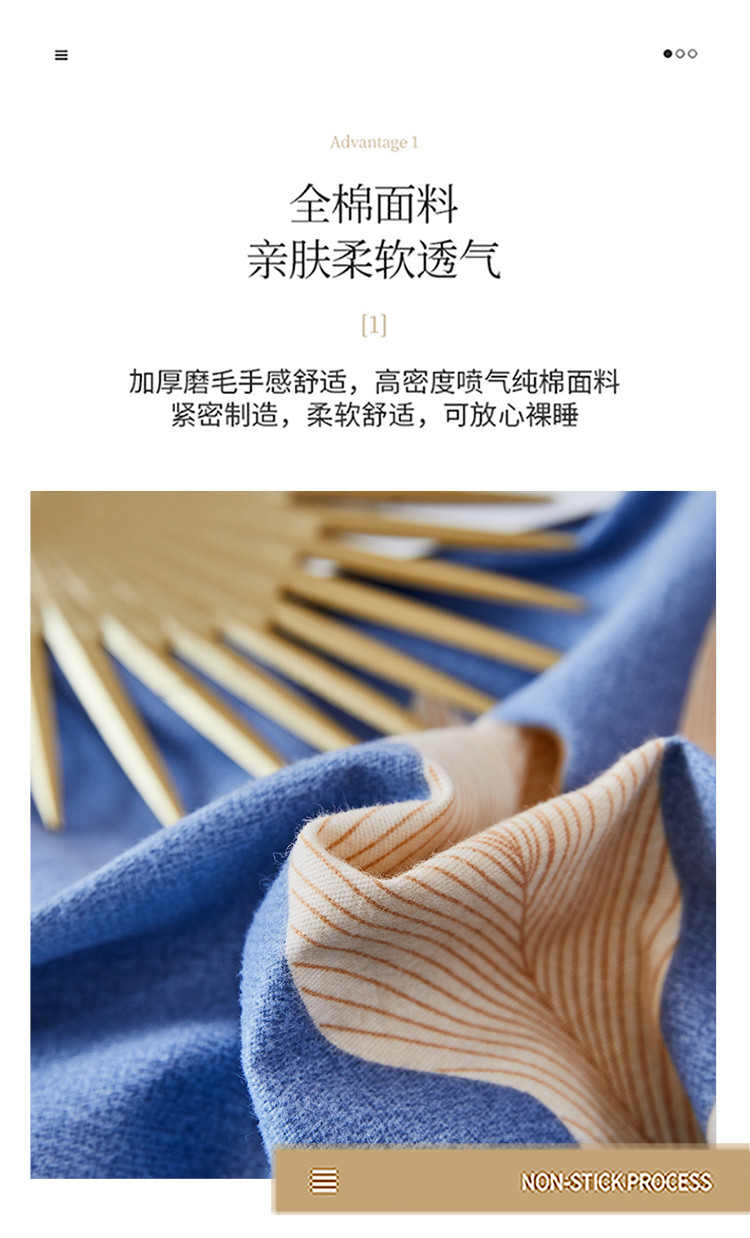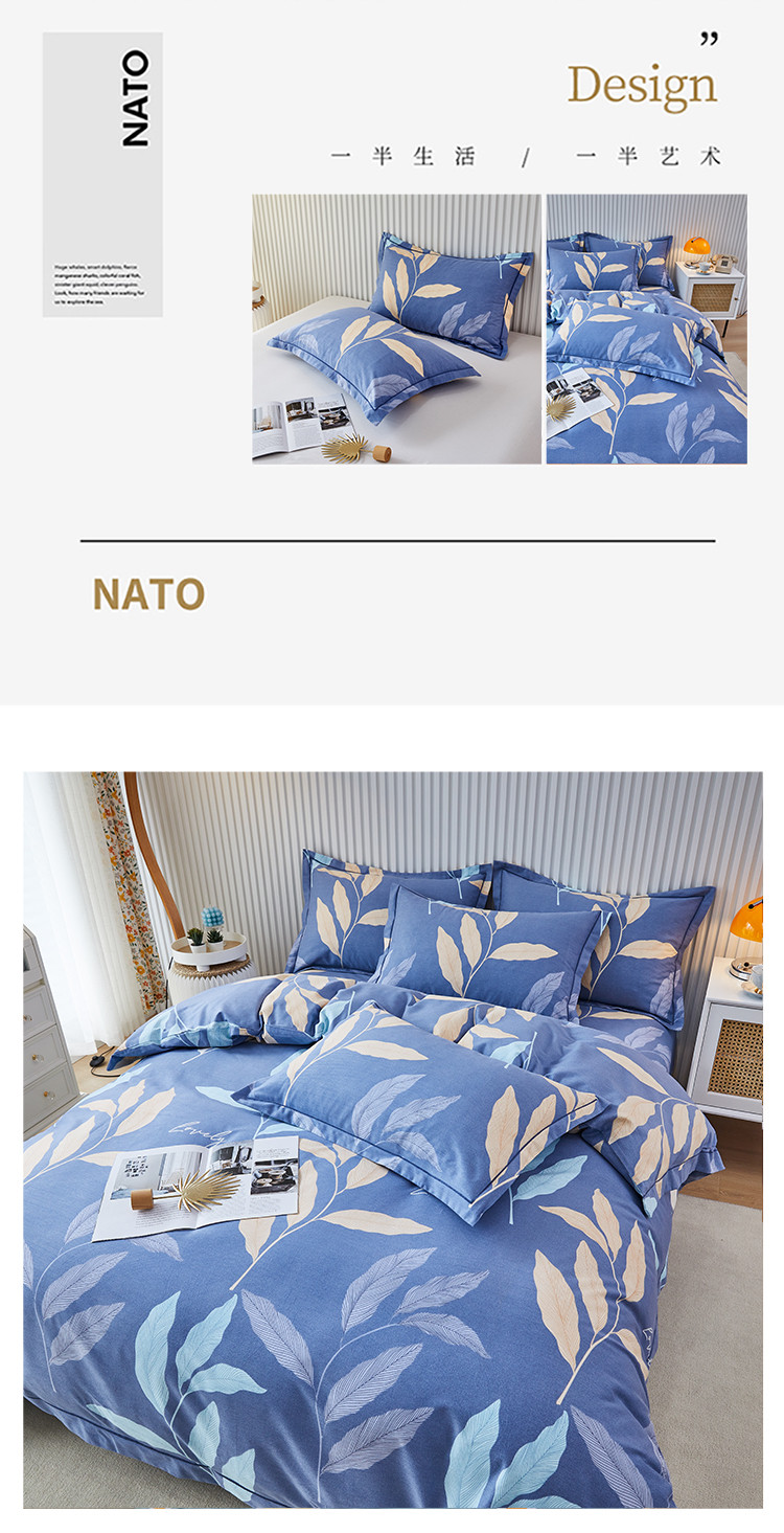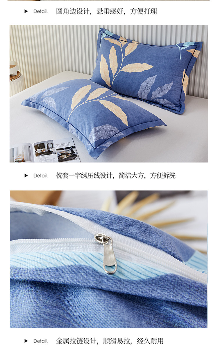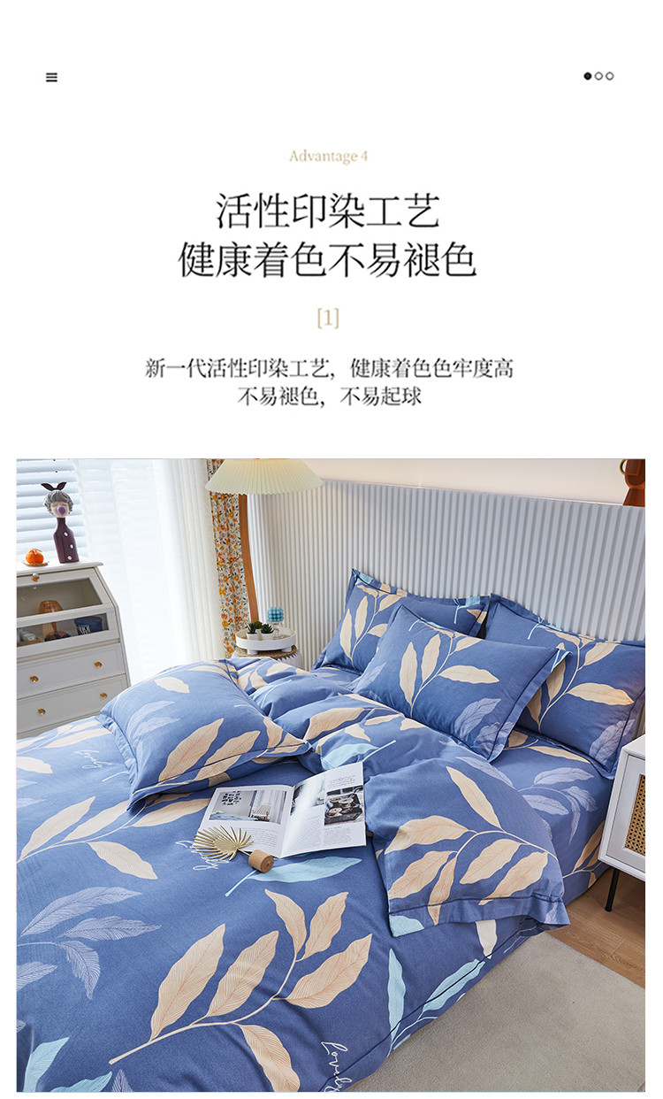 商品名称:杜先生 2023新款全棉加厚磨毛系列四件套 叶叶相随-蓝