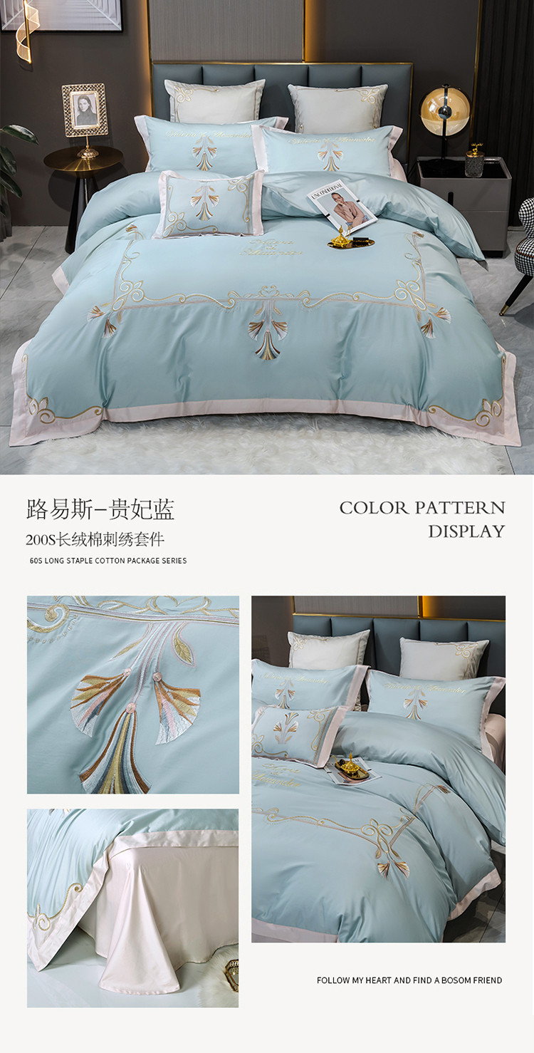 当前位置: 91家纺网 > 商品网购 > 床品套件 > 四件套 > 长绒棉四件套 > (总)家居1号2024新款长绒棉刺绣四件套路易斯风格二